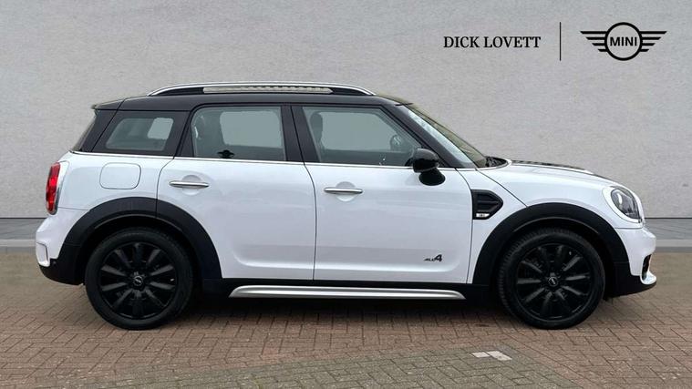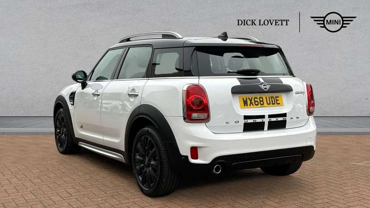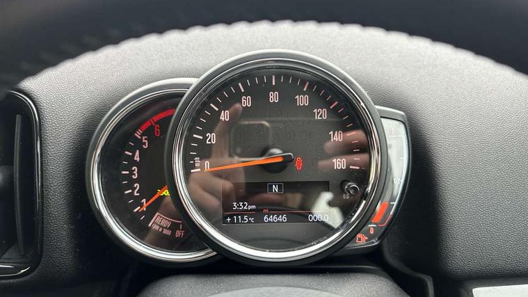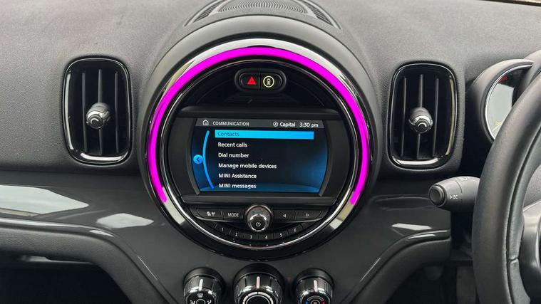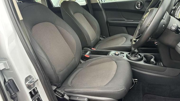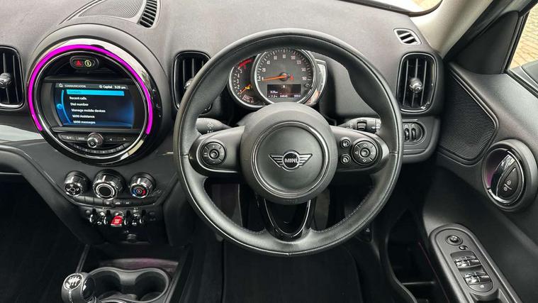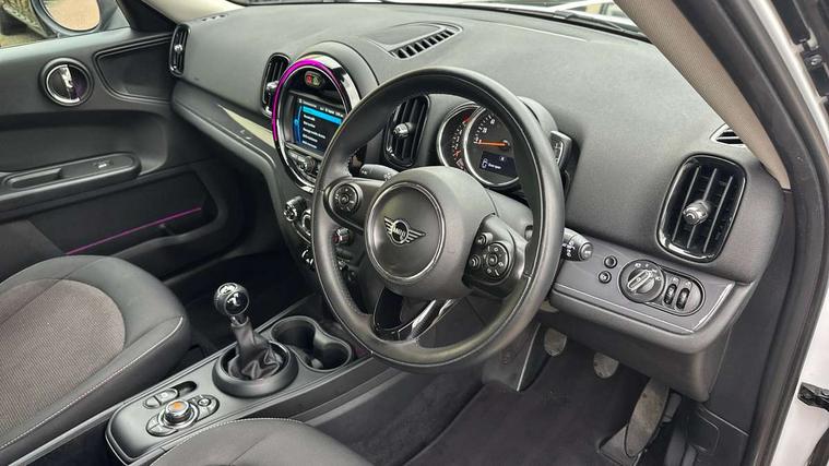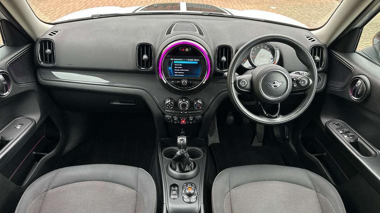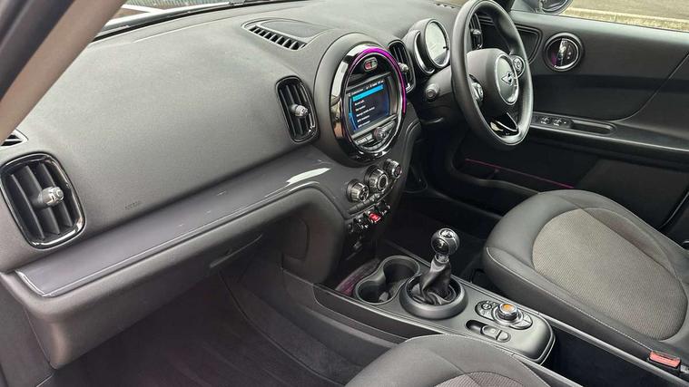 Apple CarPlay preparation, Brake pad wear indicator warning light, Central display with LED ring and 6.5" colour touch screen, Connected driver, DTC - Dynamic traction control, Exterior temperature gauge, Intelligent emergency call, MINI remote services, MINI TeleServices, Navigation system, On board computer, Personal Profile, Real time traffic information, Service interval indicator, Servotronic speed sensitive power steering, Diesel particulate filter, Electronic differential lock, Auxiliary input socket, DAB digital radio module, MP3 compatible radio/single CD player, Radio visual boost, Anti dazzle rear view mirror, Chrome door handles, Chrome exhaust tailpipe, Chrome headlight surround, Chrome plated radiator grille, Chrome window surround, Electric front windows + one touch + anti-pinch, Electrically adjustable door mirrors, Follow me home headlights, Green tinted glass, Heated door mirrors/heated windscreen washers, Heated rear window with automatic switch off, Metal look door sill finishers, Rain sensor including auto headlights activation, Rear wiper, Roof spoiler, White indicator lights, 12V power point front, 2 cupholders in front centre console, 4 lashing points to secure luggage, 40:20:40 split folding rear seats, Centre console storage box, Chrome interior door handles, Driver/passenger sunvisors, Front and rear headrests, Front interior light, Front passenger grab handle, Front seat backrest storage nets, Heater with recirculation function, Height/reach adjust steering wheel, Isofix rear child seat preparation, Luggage compartment lighting, Multifunction steering wheel, Rear grab handles, Sensatec gearshift and handbrake, Storage compartments in doors, Toolkit in luggage compartment, Interior lights pack - Countryman, MINI Excitement Pack - Countryman, 3 point automatic seatbelts, 3 point seatbelts on all rear seats, ABS, CBC - (Cornering brake control), Crash Sensor - activates hazard/interior lighting + unlocks doors, Driver and passenger airbags, Driver and passenger side airbags, DSC - Dynamic Stability Control, Electronic brake force distribution, Electronic parking brake, Front curtain airbags, Front passenger airbag deactivation, Fuel cut off safety device, Hill start assist, Pyrotechnically pre-tensioned front seatbelts, Tyre pressure warning, Automatic door locking, Keyless Start, Locking wheel bolts, RF remote control central locking, Second remote key, Thatcham category 1 alarm + immobiliser,