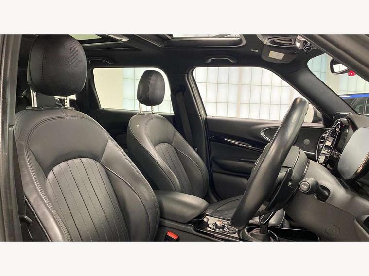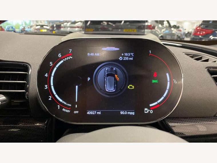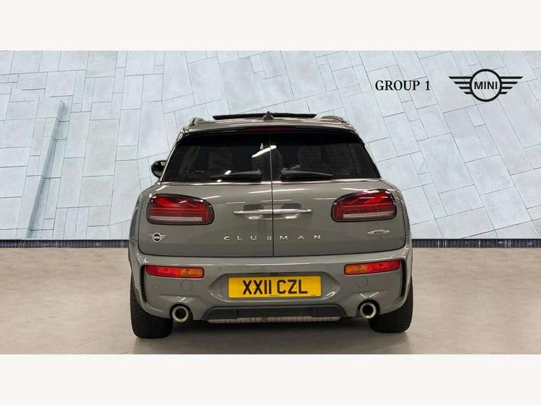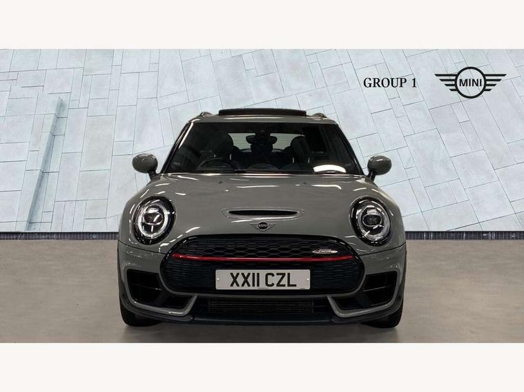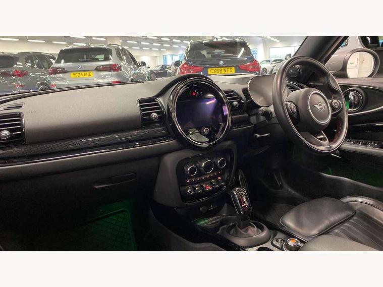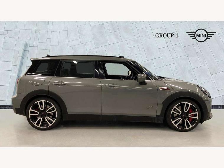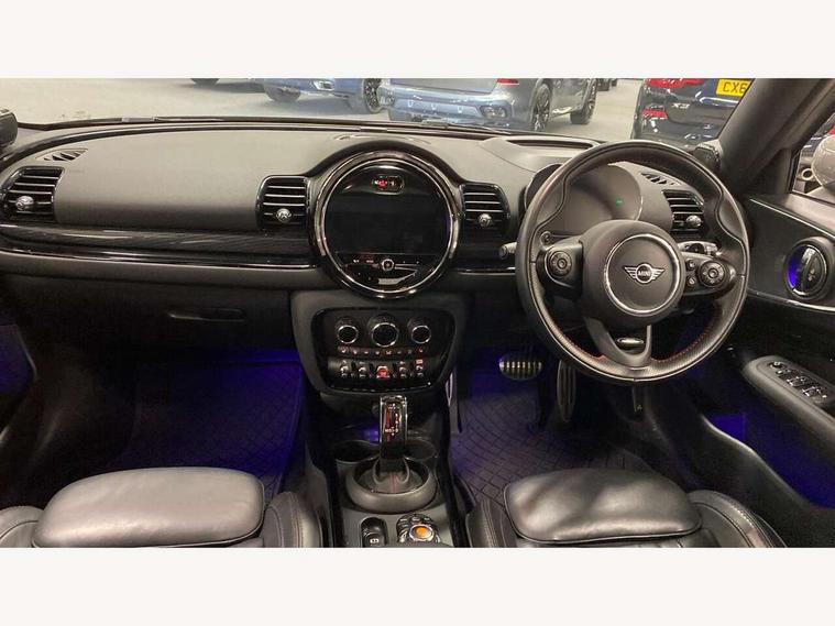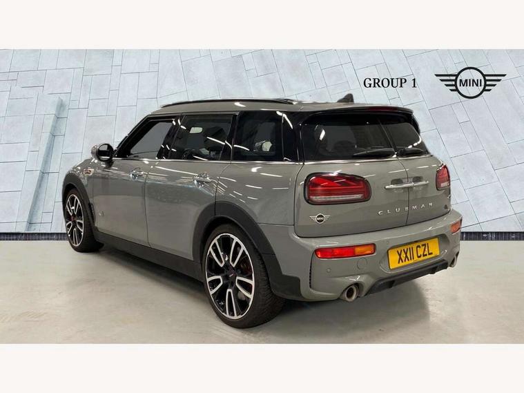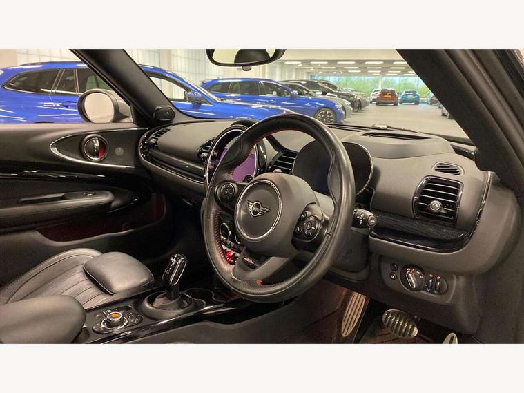 Active Guard incl speed limiting and lane departure functions with auto steering, and front collision warning with brake intervention, Automatic start/stop function with brake energy recuperation, Compatible mobile phone bluetooth with audio streaming, Digital cockpit, Electro-mechanical speed dependant steering assistance, Instrument cluster, Mini E-call, MINI TeleServices, On board computer, 8 Speed steptronic sport transmission including electronic gear shifter and steering wheel paddles, All Wheel Drive (AWD), Double Vanos system, Fully variable valve control, High precision injection, Performance Control, FM tuner and DAB digital radio, Bonnet scoop, Chrome fuel filler cap, Dynamic brake lights, Electric windows, Heated rear window, Heated windscreen washer jets, John Cooper Works - aerodynamic kit (front and rear apron, spoiler), front and rear sport bumpers and part-painted side sills with door sill finishers, John Cooper Works rear spoiler, LED rear light with union jack design, Metal door sill strips with Cooper S imprint, Model logo, Model logo on rear doors, Piano black exterior, Radiator grille piano black border with honeycomb structure in matt black with John Cooper Works logo above an individual grille struct in chilli red, Rain sensor with auto headlights, Rear fog lights, Rear window wiper, Side scuttle with MINI John Cooper Works logo in high gloss black with red border, Split rear doors, Sun/heat protection glass, Twin exhaust tailpipe, White indicator lenses, 12V Accessory socket in centre console, 360L luggage compartment capacity, 4 lashing eyes in luggage compartment, 60/40 split folding rear seat, Anthracite headlining with grab handles and clothes hooks, Chrome interior highlights, Cupholders, English handbook, Glove compartment, Height and length steering column adjustment, Interior lighting with 12 basic colours selectable via toggle switch in roof, Isofix rear child seat preparation, John Cooper Works perforated leather steering wheel with contrast stitching in chilli red and John Cooper Works logo, John Cooper Works sports seat with integrated headrest, adjustable thigh support and John Cooper Works logo, Leather gearshift lever and handbrake gaiters, LED reading lights, vanity mirror lights, front foot well light and spotlight on front seats, Multifunction steering wheel, Rubberised stainless steel pedals, Storage compartments in doors, Sunvisors with vanity mirrors, Toolkit, Comfort plus pack - Mini Clubman, Excitement pack - Clubman, Navigation pack - Clubman, 17" front sport brake with 4 piston fixed calliper, 2 tone horn, 3 point seatbelts on all seats, 6 Airbags - front, side, head and seat belt tensioners, Anti-lock braking system (ABS), DSC - Dynamic Stability Control, Electronic handbrake, Front and rear disc brakes, Red brake callipers with John Cooper Works logo, Torsen mechanical limited slip differential, Tyre pressure monitoring system, Alarm system with tilt sensor, monitoring doors, bonnet interior and tailgate, Auto drive away locking, Comfort access system, Deadlocking function, Electronic vehicle immobiliser, Locking wheel bolts, Start/stop toggle with keyless go,