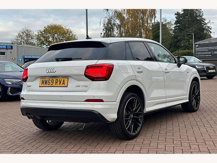 Audi drive select, Audi smartphone interface, Automatic start/stop system with recuperation, Bluetooth interface includes bluetooth audio streaming, Cruise control, MMI - Multi Media Interface control system, MMI SD card integrated nav with 3D map display, dynamic route guidance with TMC, MMI search, natural voice recognition and myAudi special destinations, Power operated tailgate, Progressive steering, Service interval indicator, Dynamic suspension, 2 x SDXC card reader, Audi music interface - apple iPod, apple iPhone, USB storage media, compatible MP3 players, 2 x USB charging points and 1 x Aux-in, CD Drive, DAB digital radio and AM/FM radio, MMI radio plus with 7" colour MMI screen and MMI controller, Black window trims, Bumper in full body colour paint finish, Chrome exhaust tailpipe, Electrically adjustable and heated door mirrors with integrated LED side indicators, Front and rear electric windows, Front underbody guard and rear diffuser trim in selenite silver, Front windscreen with grey tinted sunband, Headlight washers, Interior mirror, LED headlights with LED rear lights + dynamic rear indicators, LED indicator lights, Manual folding door mirrors, Privacy glass - dark tinted rear and rear side windows from B-pillar backwards, Rain and light sensors, Rear wiper, S Line body styling - front and rear bumpers, side skirts, radiator grille, rear diffuser insert and front air intakes, 3 spoke flat bottomed high multi-function leather sport steering wheel with gearshift paddles, 60/40 split folding rear seat bench, Black cloth headlining, Floor mats with contrast stitching, Front centre armrest, Front headrests, Front sport seats with S embossed logo, Height/reach adjust steering wheel, Illuminated door sill trims with S logo, ISOFIX child seat mounting for front passenger with airbag deactivation and outer rear seat including top tether attachment point for outer rear seats, Manual seat adjustment including seat height adjustment for front seats, Stainless steel pedals, Storage compartments - Glovebox, cupholder compartment in centre console, storage compartment in rear centre console, front and rear door pockets, Three rear headrests, Black styling pack - Q2, LED interior lighting pack - Q2, Non smoking pack - Q2, 3x3 point rear seatbelts, 6 airbags - Front, curtain and front side airbags, Electromechanical parking brake, Electronic stabilisation control including ABS, ASR and EDL, Extended and proactive pedestrian protection, Hill hold assist, Multi collision brake assist, Pre-sense front with pedestrian recognition, Seatbelt monitoring, Tyre pressure warning light, Warning triangle and first aid kit, Anti theft alarm, Anti theft wheel bolts, Central locking system with remote control key, Electronically operated child locks, Aluminium interior element, Black inlays - decorative trims in black for centre console and front and rear door pull handles,