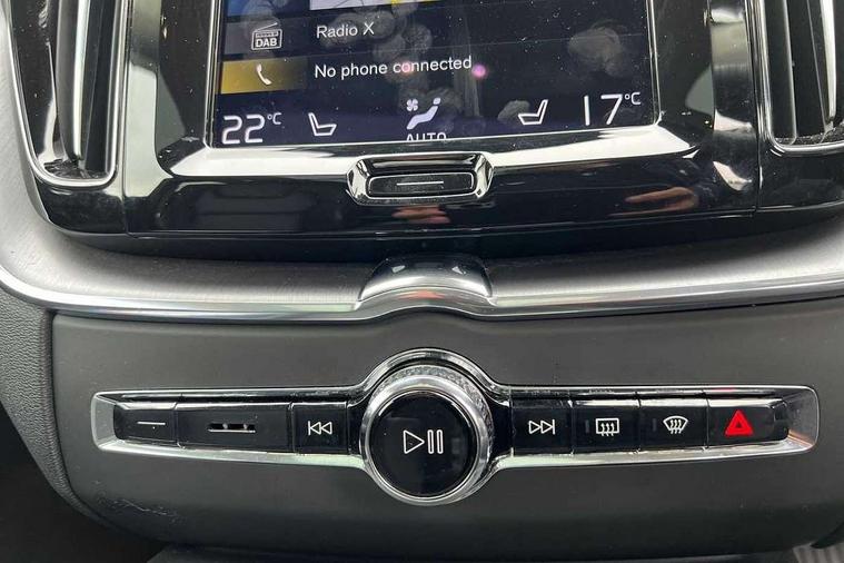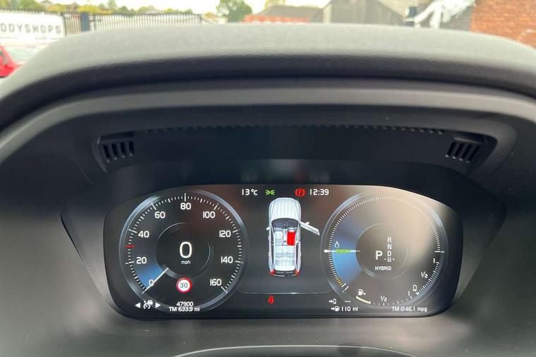 12.3" Active TFT crystal driver's instrument display, 9" Touch screen, Adjustable steering wheel force, Bluetooth handsfree system, Drive mode selector, Driver alert control with lane keeping aid, Oncoming Lane Mitigation, Sensus navigation with European mapping and traffic information, Service interval indicator, Speed limiter, Speed sensitive steering, Trip computer, Voice control system, Volvo on call, 8 speed automatic transmission with start/stop + manual change functions, All wheel drive system, Electric rear axle drive, Recharging port located in nearside front wing, DAB Digital radio, Steering wheel remote infotainment controls, Adaptive brake lights with high level LED brake lights, Auto dimming interior + exterior mirrors, Automatic headlight levelling system, Body colour bumpers, Chrome deco lower front bumper, Chrome lower side moulding trim with Recharge logo, Chrome window surround, Colour coordinated auto folding and heated power door mirrors, Dual integrated exhaust pipes, Electric front+rear windows, High gloss black grille with chrome inserts, Home safe and approach lighting, Illuminated side steps, Integrated silver roof rails, LED Headlights + Active high beam incorporating daytime running lights, Power glass tilt and slide panoramic sunroof with sun curtain, Rain sensor with automatic windscreen wiper activation, Rear wiper, Roof antenna, Roof spoiler, Tinted windscreen, Visible VIN plate, 12V socket in front tunnel console and cargo compartment, 2 zone electronic climate control with Clean zone air quality system and pollen filter, 3 spoke leather steering wheel with chrome trim, Auxiliary fuel fired heater with pre conditioning functions, B Pillar ventilation, Bright metal luggage threshold, Centre armrest storage illumination, Centre console cupholders and storage, Charge cable bag, Floor mats, Front footwell illumination, Front reading lights, Head restraints for all seats, Heated front seats, Height/reach adjustable steering column, Illuminated glovebox, Illuminated luggage compartment, Illuminated vanity mirrors + ticket holder, Leather upholstery, Load cover, Load protection net, Power height adjustable passenger seat with lumbar support, Rear armrest / integral cup holders / storage tray, Rear seat concealed storage, Recharge aluminium tread plates, Theatre lights, Underfloor stowage compartment, Versatile split folding rear seat - 60/40, 5 three point seatbelts, City safety with steering support with Pedestrian + cyclist + large animal detection + front collision warning with full auto brake, Drivers knee airbag, Dual stage driver/passenger airbags, Electronic parking brake with auto hold, First aid kit, Hill descent control, Hill start assist, IC (Inflatable Curtains) - Full Length, Passenger airbag cut-off device, Road sign information display, Run off Road Mitigation, Run off Road Protection, Seatbelt reminder and pretensioners, SIPS (Side Impact Protection System), SIPS airbags, Slippery road and hazard light alert, Stability and Traction Control with Spin control, Engine Drag Control and Corner Traction Control, Tyre pressure monitoring system, Vehicle deceleration control with Anti-lock Brake System, Electronic Brake Distribution and Emergency Brake Assist, Warning triangle, WHIPS whiplash protection system - front, Anti-theft alarm including immobiliser/volume sensor + level sensor, Care key with user defined top speed, Key integrated remote control central locking + fuel flap with deadlocking system and auto open/close power windows, Locking wheel nuts, Private locking for tailgate, Iron ore inlays, Tyre sealant kit + 12v compressor,