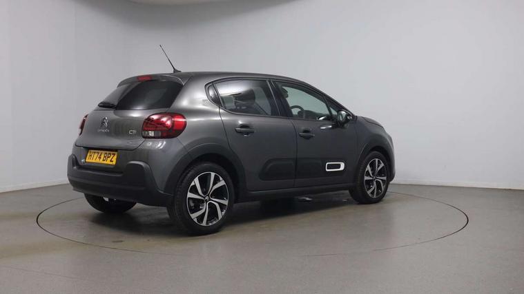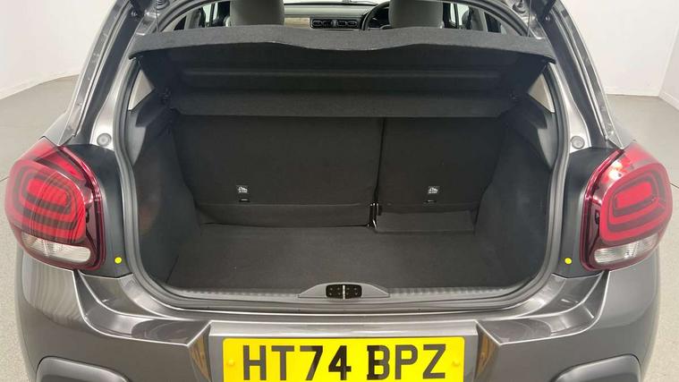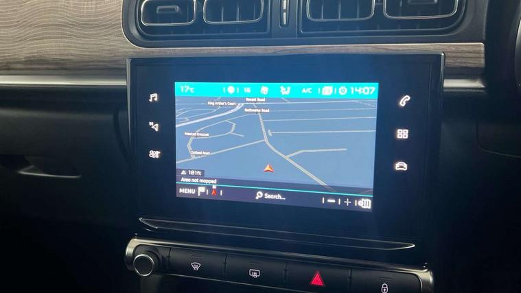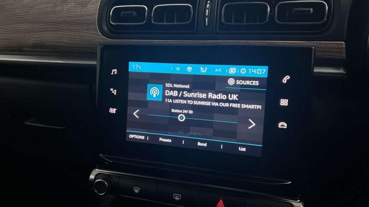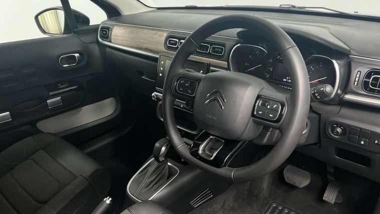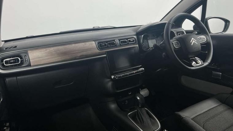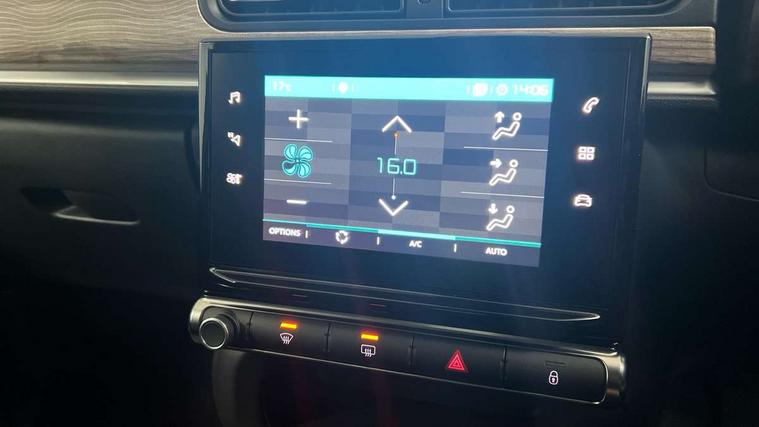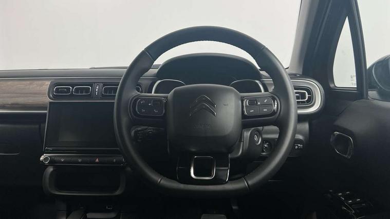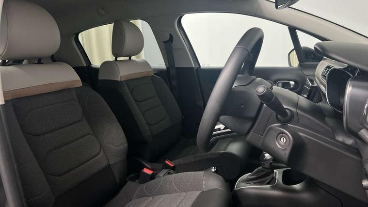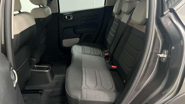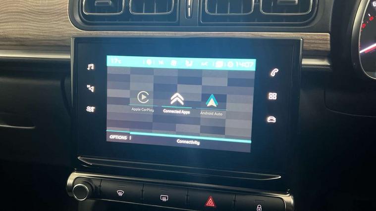 Citroen connect box emergency and assistance system, Citroen connected nav with DAB, 6 speakers, 7" captive touch screen, mirror screen includes apple carplay/android auto and bluetooth, Coffee Break Alert, Cruise control + speed limiter, eCall emergency call system, Exterior temperature display, Lane departure warning system, Multi function trip computer, Rear parking sensors, Reversing camera, Satin chrome surround instrument cluster with white LCD and analogue gauges, Variable assistance power steering, USB connection, 3D rear light signature, Airbump on side door panel, Automatic activation of hazard warning lights, Body colour bumpers, Body colour door handles, Chrome decoration on front face, under chevrons and around daytime running lights, Citroen illuminated signature in LED headlights and LED daytime running lights, Dark tinted tailgate and rear side windows, Electrically adjustable door mirrors, Electrically folding door mirrors, Electrochrome auto dimming interior rear view mirror, Fog lights integrated into front bumper, Front sequential electric windows with one-touch open/close and anti-pinch system, Gloss black finish B pillar, Heated door mirrors, LED Headlights, LED third brake light, Rear sequential electric windows with one-touch open/close and anti-pinch system, Rear side wing doors, Rear windscreen wiper with intermittent mode linked to vehicle speed and automatic activation when reverse gear selected, Roof colour rear view mirror caps, 1/3 to 2/3 split folding rear seat, 12V socket, Automatic air conditioning, Boot light, Cloth/leather effect upholstery, Driver and passenger's sun visor with courtesy mirror, Driver's central armrest, Driver's seat height adjustment, Front lighting panel with map reading lights, Front seats adjustable with forward back slide and adjustable backrest, Height adjustable front head restraints, Height/reach adjust steering wheel, ISOFIX mounting on outer rear seats with top tether and labels indicating fixing points, Leather steering wheel with gloss black + satin chrome elements and audio/telephone controls, Leather trimmed gear lever for automatic gearbox with leather effect gaiter and overstitching lever position indicator, Map pockets in back of driver and front passenger seats, Parcel shelf, Row 2 - Three seats with individually adjustable head rests, Seatbelt unfastened on the move audible and visual alert for front and rear seats, Single front passenger seat, Storage space under touchscreen with rubber mat, Techwood ambience with advanced comfort seats, Three rear headrests, Upholstered armrest in front and rear doors, Safety pack 1 - C3, Safety pack 2 - C3, Visibility pack with automatic lights - C3, ABS with Electronic brakeforce distribution and Emergency braking assistance, Driver and front passenger seatbelts with pyrotechnic pretensioners and force limiters, Driver's airbag, Electric child locks, ESP with anti skid system, Front passenger airbag, Front passenger airbag deactivation, Front side airbags + front/rear curtain airbags, Hill start assist, Manual parking brake with leather handle and chrome finish button, Mono-tone horn, Outer rear seats with pretensioners and force limiters, Three rear 3-point seatbelts, Tyre pressure monitoring system, Anti theft alarm, Automatic door and boot locking when moving off with automatic unlocking in case of impact, Central locking with locked indicator and interior one touch lock button, Immobiliser, Remote control central locking with two plip keys, Technical wood effect dashboard with grey surround, 17" Vector diamond cut alloy wheels, Space saver spare wheel,