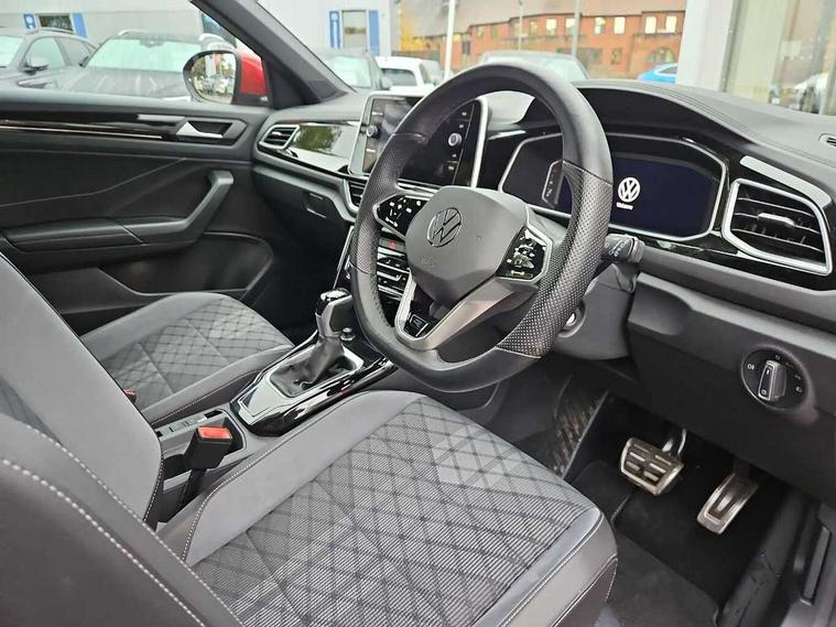 10.25" Digital cockpit pro, Bluetooth mobile phone interface, Driver alert system with fatigue detection, Driver tips and journey analysis, Emergency call service, Lane keeping system Lane Assist, Modified key software - reduce switch off time for key status change to Long no motion, Online services, Park assist including front and rear parking sensors, Service interval indicator, Tailgate/trunk lid release from outside, Think blue trainer driver tips and journey analysis, Warning sound and light for front seatbelts unfastened, Wireless app connect, Battery regeneration during braking, Start/stop function with battery regeneration, Diversity antenna for FM reception, Front and rear 6 speakers, Music playback - MP3, WMA and AAC files, Premium USB cable in choice of either Apple or Android smartphone compatibility, SD card slot, Simultaneous pairing of 2 compatible mobile devices, Title and cover art display, We Connect and We Connect Plus functionality, 3rd brake light, Auto dimming interior rear view mirror, Automatic hazard lights activation under emergency braking, Automatic headlight control with LED separate daytime running lights with coming/leaving home function, Extended roof spoiler, Exterior mirrors aspherical on driver side, convex on front passenger side, External USB type C socket and charging sockets, Front windscreen wiper with intermittent wipe and 4 position delay, Heated rear window, LED Plus headlamps, LED rear combination lamps, LED rear number plate lights, LED tail lamp rear comination lamps, Power windows with comfort operation and circuit breaker, R-Line design body coloured bumpers, Rain sensor, Rear exhaust tailpipe, Rear fog light on one side and reversing lights on both sides, Rear side wing doors, Rear wash/wipe with intermittent wipe setting, Remote electrically foldable door mirrors, puddle lights and reverse activated passenger's door mirror, 12V power socket in centre console, 3 rear head restraints, 3 seat bench in 2nd row, 4 load lashing points in luggage compartment, Air care climatronic air conditoning system with active combination filter and 2-zone temperature control, Black roof lining, Chrome plated radiator grille inserts, air vent surrounds and light switch surrounds, Door and side trim panel with leatherette insert, Drawer under drivers seat, Front + rear carpet mats, Front centre armrest, Front cupholders x 2, Front footwell illumination, Front reading light, Front scuff plates with R logo, Instrument lighting, white adjustable panel illumination, Interior ambient lighting and surround lighting, Interior light delay, Isofix child seat preparation, Leather gearshift handle, Load-through provision with cup holder when folded down ('Unsplit rear seat bench, split folding backrest, with centre armrest), Luggage compartment lighting, Single front passenger seat, Stainless steel pedals, Storage compartment in left and right luggage area, Storage compartment in rear doors, Storage compartments in driver and front passenger doors, Sunvisors with illuminated vanity mirrors, Variable boot floor, height adjustable and removable, Driver assistance pack without proactive passenger protection - T-Roc, 3 point height adj front seatbelts + pretensioners, 3 point seatbelts in outer rear with ECE label, ABS, Child locks on rear doors, Driver and front passenger airbag with front passenger airbag deactivation, Driver and front passenger safety-optimised head restraints, Drivers seatbelt reminder, Electronic parking brake, Electronic Stability Control (ESC) inc EDL (Electronic Differential Lock) and ASR (Traction Control), Front and rear passengers curtain airbag system including front side airbags, Front assist with city emergency braking and pedestrian monitoring, Front seat side impact airbags, Hill start assist, Predictive pedestrian protection, Rear disc brakes, Single tone horn, Tyre pressure loss indicator, Volkswagen roadside assistance, Alarm with interior protection, Anti-theft alarm system with interior monitoring, backup horn, and towing protection, Remote central locking with SAFELOCK, radio remote control with 2 remote control folding keys, Trims for alloy wheels,