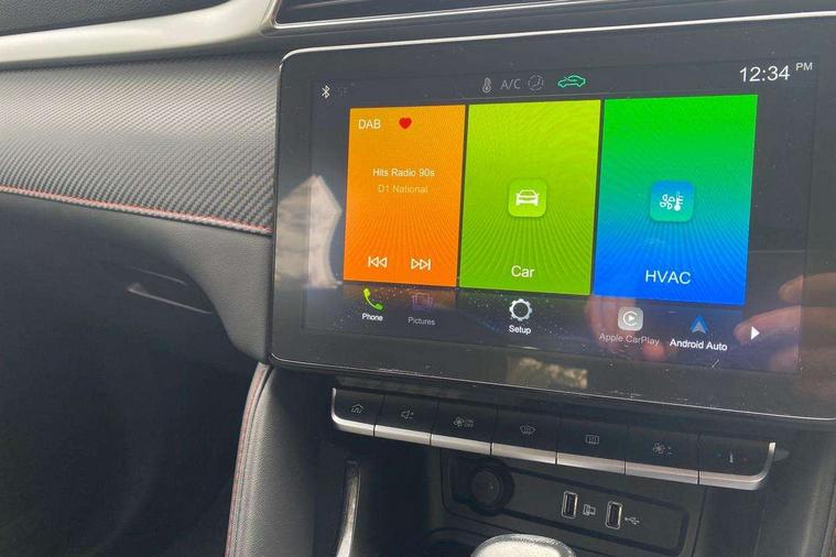'Lights On' Reminder warning buzzer, 10.1" colour touchscreen, Android Auto, Apple CarPlay, Bluetooth connectivity, Cruise control with speed limiter, PAS, Rear parking sensors, Trip computer, USB mobile phone charging function, 4 speaker audio system, DAB audio, Radio/MP3 player, USB/aux input socket, Auto headlights, Body colour bumpers, Body colour door handles, Body colour electric adjustable folding heated door mirrors, Chrome side window trim, Follow me home headlights, Front and rear aero wiper, Front and rear electric windows with driver's one-touch up/down, LED Bi-Function headlights, LED centre brake light, LED daytime running lights, Rain sensor, Rear spoiler, Silver roof rails, 12V power sockets, 2nd row 60/40 split/fold, 3 rear headrests, 4 way manually adjustable passenger seat, 6-way manually adjustable driver's seat, Air conditioning, Boot light, Driver's footrest, Front cupholders x 2, Front grab handles, Front headrests, Front reading lights, Front seat back map pockets, Glovebox, Houndstooth fabric upholstery, Illuminated switches and controls, Internal chrome door handles, ISOFIX restraints on outer rear seats x2, Leather steering wheel, Rake/reach adjustable steering wheel, Rear grab handle, 3x3 point rear seatbelts, ABS/EBD, Anti rolling protection, Automatic unlocking of doors in case of impact, Child locks on rear doors, Dual front airbags, EBA, Electric parking brake with auto hold function, ESP, Front passenger airbag deactivation switch, Front seatbelts (3-point + pretensioner + load limiter), Front side airbags, Fuel cut off safety device, Hill launch assist, Rear passenger seatbelt alert, Seatbelt reminder for driver and front passenger, Side curtain airbags, Tyre pressure monitoring system, Alarm system and engine immobiliser, Automatic latching door, Keyless entry and push button start system, Remote central locking, Second remote key, Speed sensing door locks, Superlocking, 17" Typhoon diamond cut alloy wheels, Tyre repair kit,