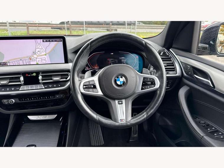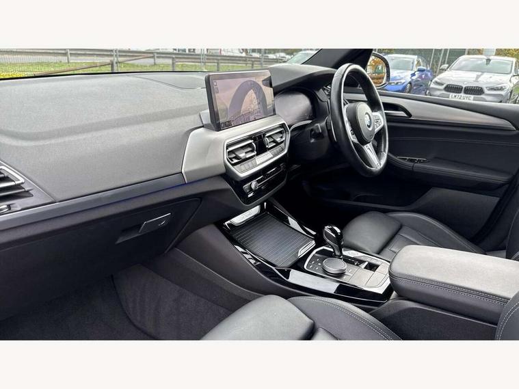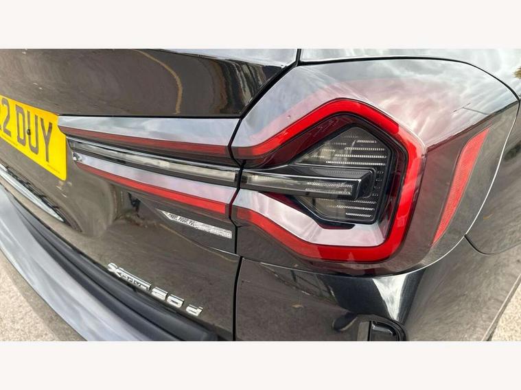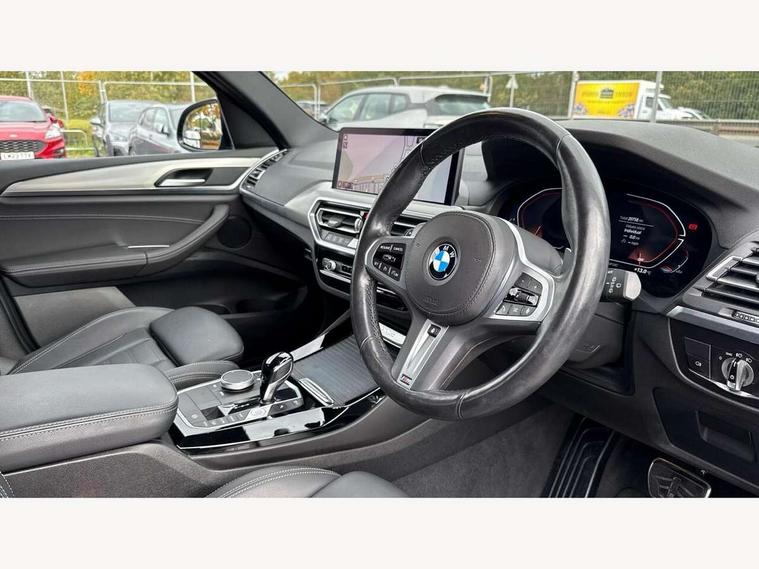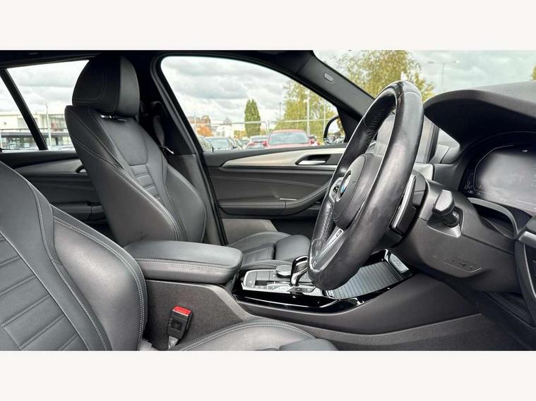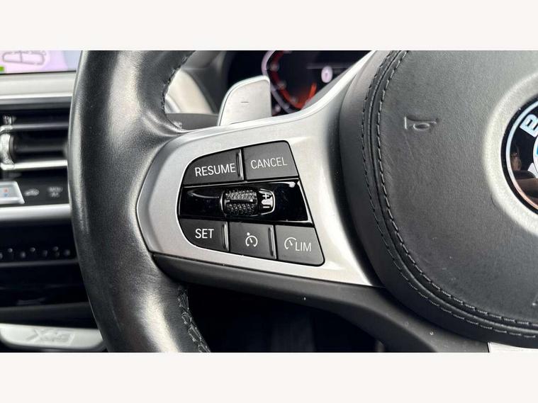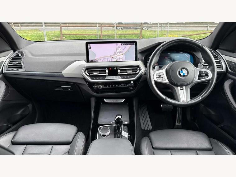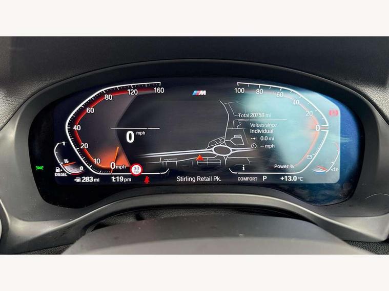 Active Guard, Attentiveness assist, BMW Live Cockpit Professional nav system including 12.3" instrument display + 12.3 high resolution control display, BMW Online services, BMW Teleservices, Brake pad wear indicator in front and rear, Check Control warning system for monitoring of lights and door/luggage compartment open warning, Condition based service - BMW service history, electronic service booklet, integrated owner's handbook, Connected drive services, Cruise control with brake function + speed limiter, Electric boot lid, Front/rear Parking distance control, iDrive Controller with 8 favourite buttons, Instrument cluster with speedometer with mph readout, tachometer, fuel gauge and oil temperature gauge, Lights on warning by audio warning signal when ignition is switched off, Oil sensor for level and grade, warning by check control system, On board computer - average speed+fuel consumption, service interval, clock/date, odometer/trip meter, outside temperature display and ice warning, Optimum shift indicator, Personal Profile - automatic lock when driving away selectable, Stop/start system, Variable sports power steering, Diesel particulate filter, Drive performance control with ECO PRO comfort + sport mode, Incorrect fuelling protection, Larger capacity fuel tank, M sport suspension, Multi-link rear suspension, Performance Control, Sport automatic transmission with gearshift paddles, BMW professional radio/CD/MP3, DAB tuner, Acoustic glazing, Automatic windscreen wipers and automatic headlight, Black finish on B pillars, Body colour door handles, Body colour electric adjust heated aspherical door mirrors, Body colour roof mouldings, Body coloured bumpers, Direction indicator, side repeaters, integrated in exterior mirrors, Dynamic brake lights, Exhaust tailpipes - dual, round, split left and right with chrome finisher, Fingertip control / anti-trap function on electric window, Folding wing mirrors with auto dimming, Follow me home headlights, Front and rear bumper system with replaceable deformation elements, Front and rear electric windows, Gloss chrome tailpipes finishers, Green tinted heat insulating glass, Heated windscreen washer jets, High beam assistant, High gloss black shadow line roof rails, High gloss shadowline exterior trim in decorative moulding side frame/recess cover/guide rail/B, C pillars/mirror frame and triangle with mirror base, High level 3rd brake light incorporating LED Technology, Interior rear view electrochromatic mirror with automatic anti dazzle function, LED tail lights, Lightweight engineering, M aerodynamic bodystyling, Model designation, Rear side wing doors, Rear wing door, Rear wiper, Shark fin antenna, Side exterior M designation badges, Visible VIN plate, Welcome lighting, Windscreen wipers with adjustable interval, 12V power socket in front centre console, 3 rear headrests, 3 zone automatic air conditioning, 4 lashing points to secure luggage, 40:20:40 split folding rear seat with loading system, 5 seats, Ambient lighting, Anthracite headlining, Automatic interior light when door is opened/ignition switched off or via remote key, Foldable storage floor with compartment, Four grab handles integrated in roof lining, Front and rear bottle holders integrated into door trim storage compartments, Front and rear side armrests integrated into door trim, Front centre armrest with storage compartment, Front footwell lights, Front head restraints, Front sports seats, Front/rear courtesy lights with soft on/off dimming, Front/rear reading lights, Heated front seats, Isofix rear child seat preparation, Leather gear knob, Luggage area underfloor compartment, Luggage compartment lighting, M sport leather steering wheel, Multifunction steering wheel, Parcel shelf removeable and storable under boot floor, Reach and rake adjustable steering column, Rear centre armrest with 2 cupholders, Removable / retractable luggage cover, Seat backrest width adjustment, Slope adjustable rear seats, Storage compartment in rear centre console and front/rear door trims, Sun visors with vanity mirrors and ticket pocket, Toolkit located in luggage compartment, Two front cupholders with removable oddments tray/lid, Vernasca leather upholstery, Connected pro pack - X3, Driving assistant pack - X3, ADB - Automatic Differential Brake, Anti-lock braking system (ABS) with brake assist, Automatic Stability Control (ASC), Battery safety cut-off, BMW emergency call, Brake drying, Brake energy regeneration, Braking pre-tensioning, Child locks on rear doors, Cornering brake control (CBC), Crash Sensor - activation of central locking release, hazard warning light and interior lighting, Deactivation of fuel pump in the event of a crash, Driver and front passenger front and side airbags with passenger deactivation and ITS front and rear head airbags, DSC+, Dynamic brake control, Dynamic Traction Control - DTC, Electromechanical parking brake, Hill descent control, Hill start assist, Seatbelt security check for front seats, Side impact protection, Three point seatbelts to all seats with front and outer rear pyrotechnic belt tensioners and seat belt force limiters, Two tone horn, Tyre pressure sensor, Ventilated front and rear disc brakes, Warning triangle and first aid kit, Central locking switch for all doors, fuel filler cap and luggage compartment, Electronic engine immobiliser, Locking wheel nuts, Remote control including two integrated key - one button for open/close all lockable content, windows and separate button for open luggage compartment, Remote control Thatcham category 1 alarm, Start/stop button with Comfort Go keyless engine start and auto Start/stop deactivation button, Low rolling resistance tyres,