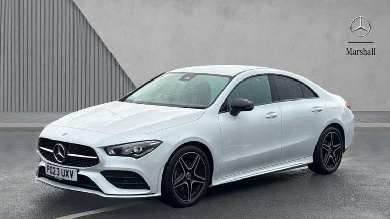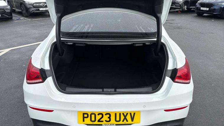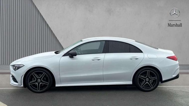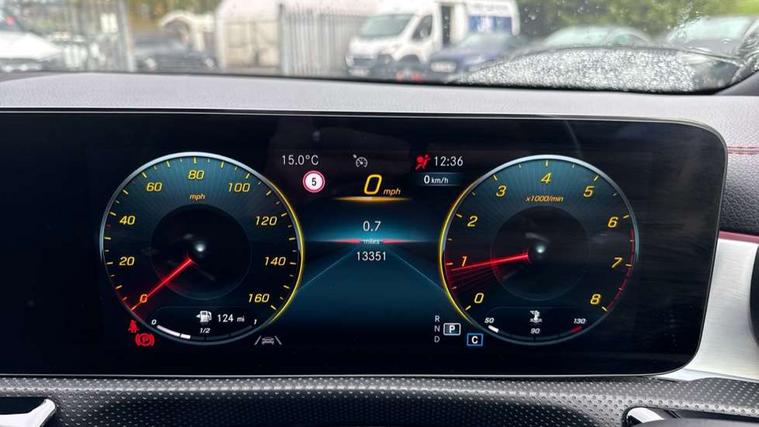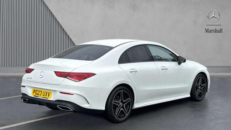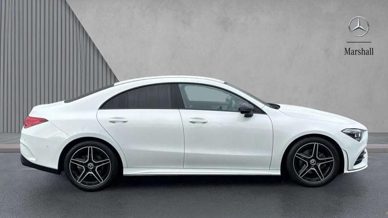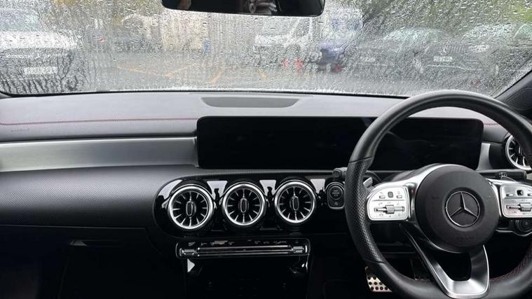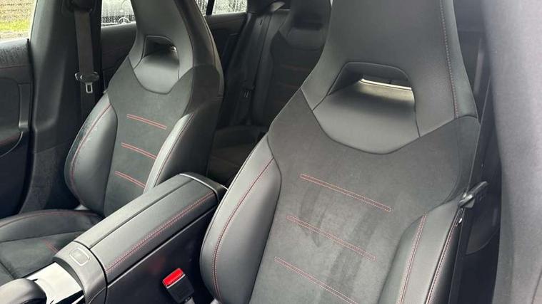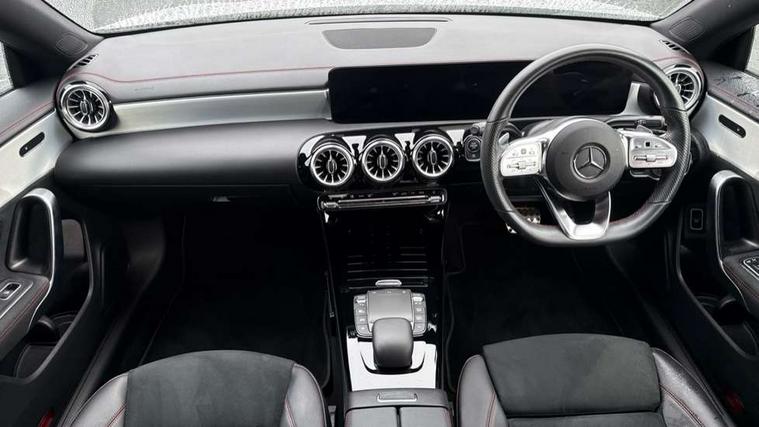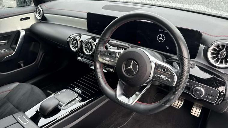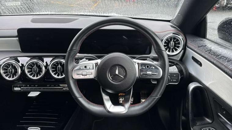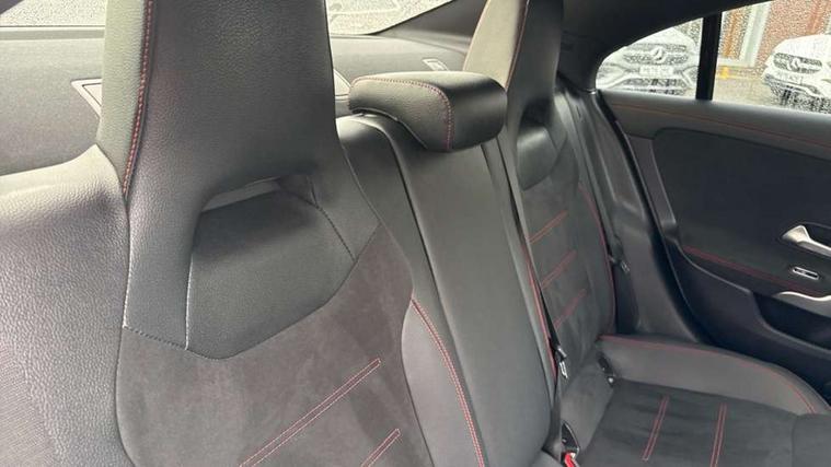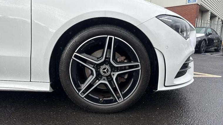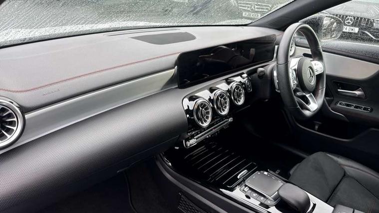 10.25 inch Instrument display with digital cockpit, 10.25 inch touchscreen central media display, Active lane keeping assist, Attention assist - Monitors steering behaviour and long journey fatigue, Bluetooth connection, Car wash mode, Cruise control with limiter, Direct steer system with speed sensitive power steering, DYNAMIC SELECT with a choice of driving modes (ECO, Comfort, Sport and Individual), ECO start/stop function, Fluid level warning indicator for fuel, oil, coolant and washer fluid, Hard-disk navigation, Hey Mercedes Voice activation, Lamp failure indicator, Mercedes me connect including emergency call system, accident recovery, breakdown and maintenance management, Mercedes me remote services, Outside temperature gauge, Owners manual and service booklet in English, Pre-installation of private car share, Preinstallation for Mercedes Benz link, Radio aerial integrated into front and rear windshields, Service indicator (ASSYST), Smartphone integration with Apple CarPlay and Android auto, Speed limit assist, Trip computer in multifunction display with current consumption indicator, Lowered comfort suspension, Rear axle multi-link, DAB digital radio tuner, MBUX multimedia system, Mercedes Benz sound system (100 W) with 6 speakers, USB (type C) ports (2) in stowage compartment and 1 in front of centre console, Adaptive brake lights, AMG body styling with AMG front apron and rear apron and visible exhaust tailpipe in chrome trim elements, AMG bodystyling side skirts, Body colour bumpers, Body colour door handles, Chrome beltline strips, Diamond radiator grille pins in chrome, Electric windows, Electrically adjustable and heated door mirrors with integrated LED indicators, Exhaust system with 2 Visible tailpipe trim elements and rear apron with trim in chrome, Headlamp assist automatic headlamp activation, Heated glass rear windscreen + timer control, High level LED third brake light, Interior mirror with black reading lamps and frameless, LED high performance headlamps with integrated LED daytime running lights, LED tail lamp, Privacy glass with dark tinting on rear side windows and rear window, Rain sensing windscreen wipers with two sensitivity settings, Rear boot, Rear fog lamp, Rear side wing doors, Variable front intermittent wipers, Window line trim strip in chrome, 3 seat bench in 2nd row, 3 spoke flattened bottom nappa leather multifunction steering wheel with perforated leather in grip area, 40:20:40 split folding rear seat backrests, Air conditioning - Two zone thermotronic luxury automatic climate control with display, Air vents with surround in silver chrome, Artico man-made leather upholstery, Automatic child seat recognition sensor, Black roof lining, Brushed stainless steel sports pedals with rubber studs, Floor mats with stitched AMG lettering, Front centre armrest with stowage, Front door sills with Mercedes Benz lettering, Galvanished gear shift paddles on steering wheel, Heated front seats, Illuminated glove compartment stowage, Interior lighting - 64 colour Ambient lighting, Luggage net on driver/front passenger seat backrest, Manually adjustable front seats, Manually height and reach adjustable steering column, Rear head restraints, Single front passenger seat, Sport seats with fixed head restraints, Stowage compartment in centre console with retractable cover, Sunvisors with illuminated vanity mirrors, Touchpad on center console, Twin front cupholders, Two outer rear seat isofix and top tether child seat fixing points, Light and sight pack - CLA, Mirror pack - CLA, Night package - CLA, Parking package - CLA, Seat comfort pack - CLA, Active bonnet pedestrain safety measure which detects an impact and raises bonnet by 65mm, Active brake assist includes forward collision warning system with autonomous braking, Adaptive brake assist with hold function and hill start assist, Anti lock braking system (ABS) with brake assist, Black seat belts, Bonnet with power domes, Brake pad wear warning indicator, Childproof locks manually operated for rear doors and electrically operated for rear power windows, Crash responsive emergency lighting, Driver and front passenger head and sidebags, Driver and front passenger windowbags, Drivers knee airbag, Dual stage driver and front passenger airbags, Electric parking brake, Electronic stability programme with acceleration skid control, ESP curve dynamic assist, Front and rear seatbelt reminder, Front passenger seat occupancy sensor, Three point rear seat belts, Tyre pressure monitoring system, Warning triangle and first aid kit, Guard 360 degree guard vehicle protection system with immobiliser and interior protection, Keyless Go starting function, Remote central locking and crash sensor with emergency opening function, Light aluminium with longitudinal grain interior trim, 18" AMG 5 twin spoke light alloy wheels painted in black with high sheen finish, Summer tyres, Tirefit tyre sealant kit,