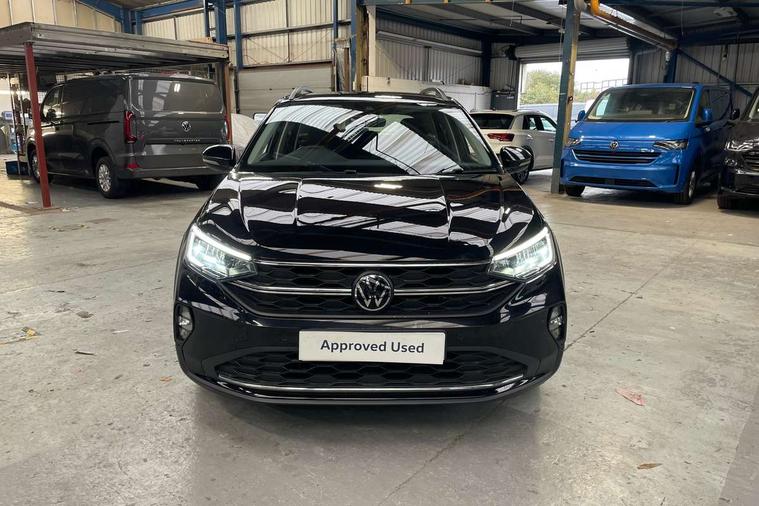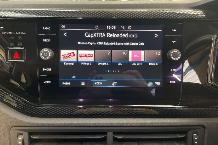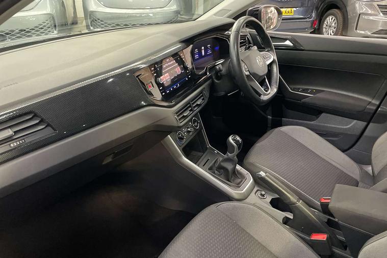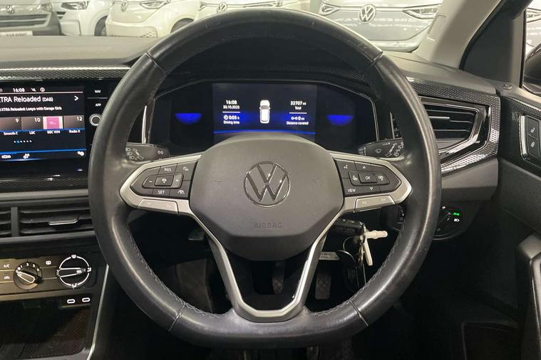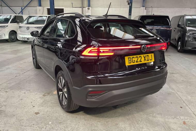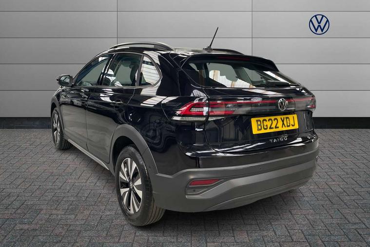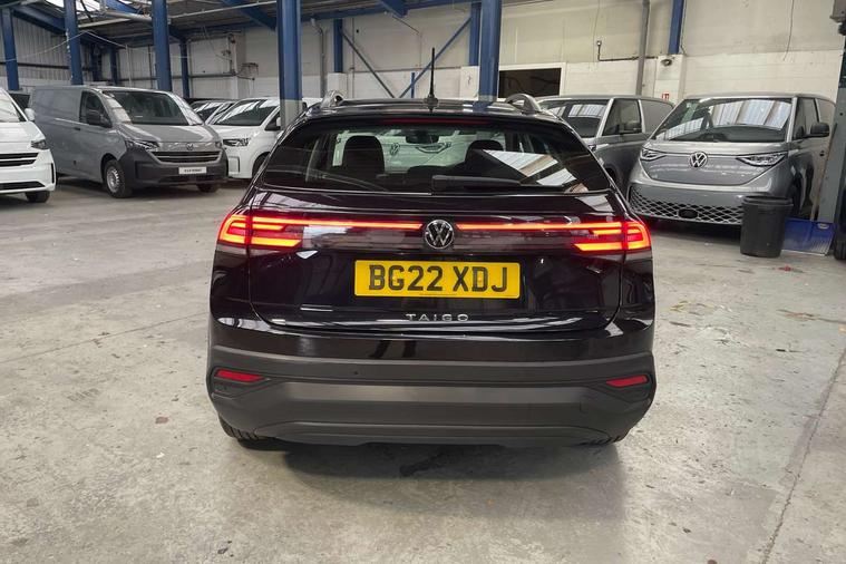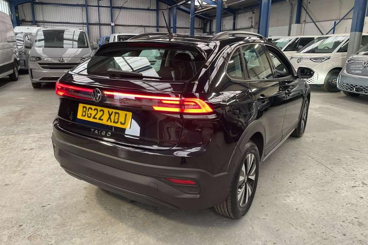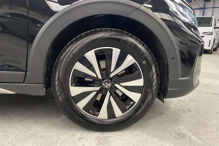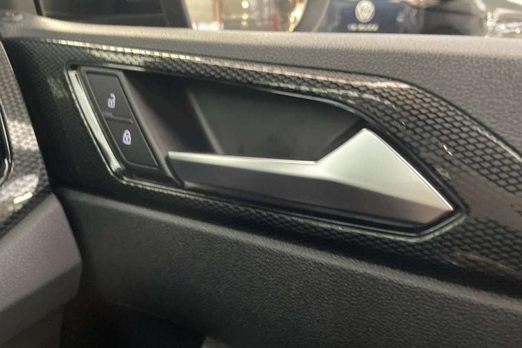 App-Connect including App-Connect Wireless, Driver alert system, e-Call (emergency call), Power Steering, Travel assist including emergency assist, Washer fluid level indicator, Wireless Charging including Bluetooth, Start-stop system with battery regeneration (recuperation - energy recovery during braking), Digital radio reception (DAB+), Diversity antenna for FM reception, WeConnect plus, Ambient lighting with logo projection, Aspherical driver's exterior mirror, Auto headlights, Body coloured bumpers, Body coloured exterior mirror housings and door handles, Electric windows, External USB type C socket and charging sockets, Front fog lamps with cornering function, Headlight range control, Heat insulating glass windscreen, LED headlamps, LED rear combination lamp, LED third brake light, Left convex exterior mirror, Power folding adjustable/heated exterior mirrors and front passenger exterior mirror lowering function, Rear fog light on one side, reversing light on both sides, Rear side wing doors, Rear wash/wipe with intermittent wipe setting, 'Slash/ Austin' Cloth upholstery, 12V socket in centre console, 2 front reading lights, 3 rear head restraints, 3 seat bench in 2nd row, Black carpets, Child seat anchor for child seat system i-Size, 2x top tether and child seat anchor in front on front passenger side, Door and side trim panels in titan black, Driver and front passenger seat height adjustment, Front centre armrest, Handbrake lever handle in leather, Height and reach adjustable steering wheel, Leather trimmed gear knob, Leather wrapped multifunction steering wheel, Luggage compartment floor, Luggage compartment light, Lumbar support for driver's and front passengers seat, Seat covers in titanium black, Single front passenger seat, Split folding backrest with centre armrest and unsplit rear seat bench, Storage compartment under front seats, Sun visors with illuminated vanity mirrors, Chrome Package - Taigo, Drivers assistance pack - Taigo, Light and Sight pack including High beam assist - Taigo, 2 x 3-point seatbelts/outer rear seats with ECE label, 3-point seat belts in front with pretensioner and height adjustment, 3-point seatbelt for centre rear seat, Driver and front passenger airbags with front passenger airbag de-activation, front side and curtain airbags, Driver and front passenger safety-optimised head restraints, Electronic stability control, Extended and predictive pedestrian/ cyclist protection, Front and rear disc brakes, Front curtain and side airbags with center airbag, Hill start assist, Manual rear child locks, Single tone horn, Tyre pressure loss indicator, Anti-theft alarm system with interior monitoring, backup horn, and towing protection, Anti-theft wheel bolts, Lava stone black gloss/matt decorative inserts in dash and front door panels, Low rolling resistance tyres,