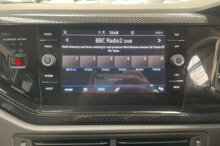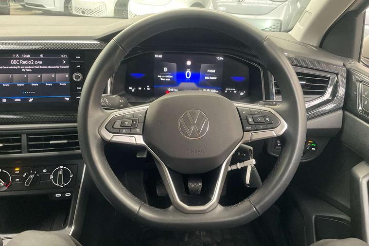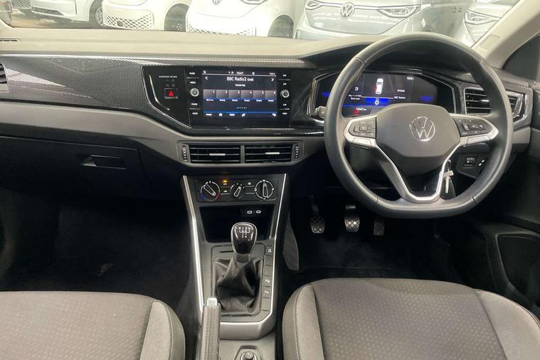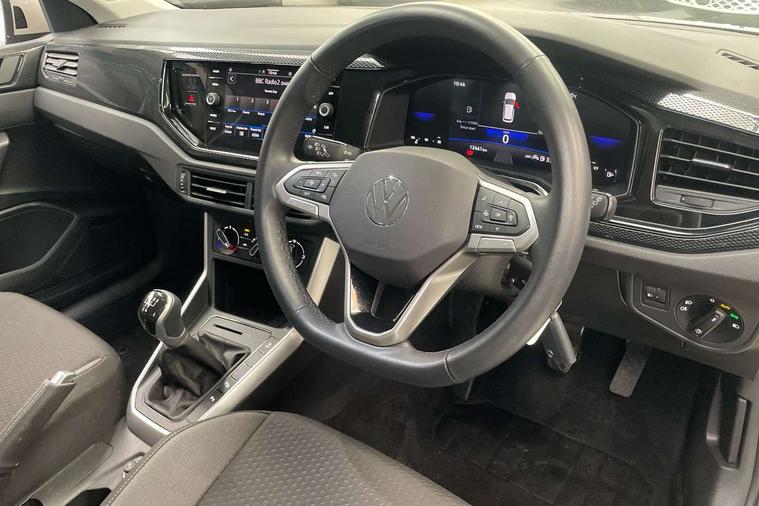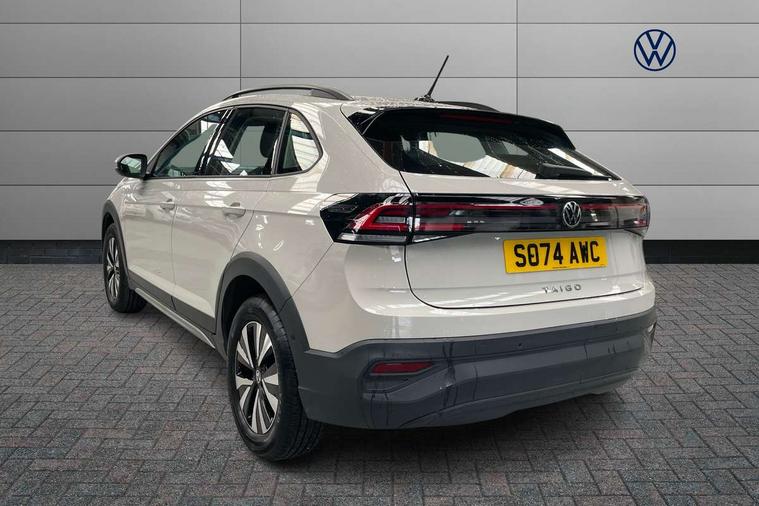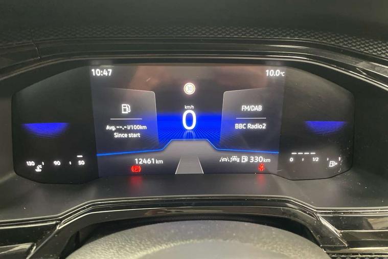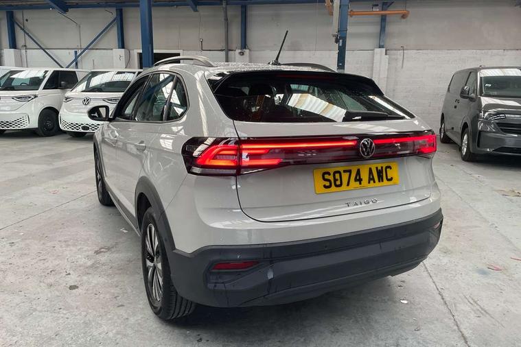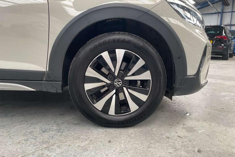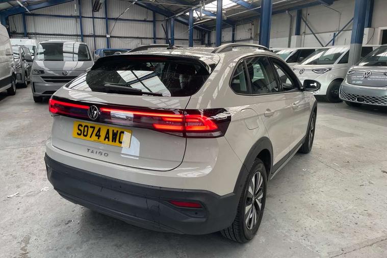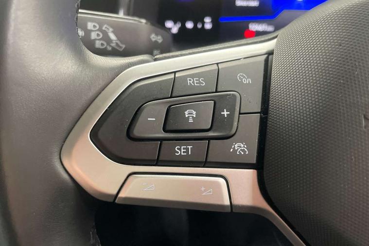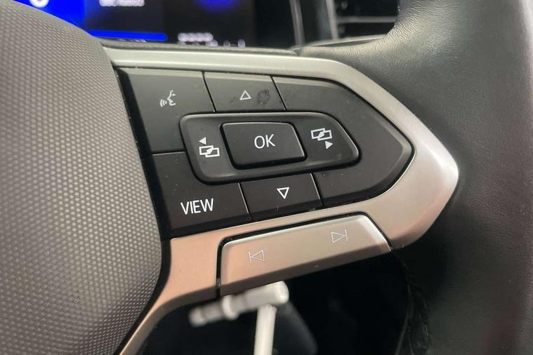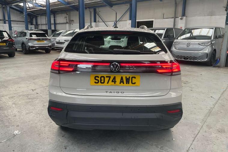 Advanced driver attention and drowsiness monitor, Dynamic road sign display, e-Call (emergency call), Power Steering, Predictive adaptive cruise control, Travel assist including emergency assist, Washer fluid level indicator, Wireless Charging including Bluetooth, Start-stop system with battery regeneration (recuperation - energy recovery during braking), WeConnect plus, Ambient lighting with logo projection, Aspherical driver's exterior mirror, Auto headlights, Body coloured bumpers, Body coloured exterior mirror housings and door handles, Electric windows, External USB type C socket and charging sockets, Heat insulating glass windscreen, LED rear combination lamp, LED third brake light, Left convex exterior mirror, Power folding adjustable/heated exterior mirrors and front passenger exterior mirror lowering function, Rear fog light on one side, reversing light on both sides, Rear side wing doors, Rear wash/wipe with intermittent wipe setting, 'Slash/ Austin' Cloth upholstery, 12V socket in centre console, 2 front reading lights, 3 rear head restraints, 3 seat bench in 2nd row, Black carpets, Child seat anchor for child seat system i-Size, 2x top tether and child seat anchor in front on front passenger side, Door and side trim panels in titan black, Driver and front passenger seat height adjustment, Front centre armrest, Handbrake lever handle in leather, Height and reach adjustable steering wheel, Leather trimmed gear knob, Leather wrapped multifunction steering wheel, Luggage compartment floor, Luggage compartment light, Lumbar support for driver's and front passengers seat, Seat covers in titanium black, Single front passenger seat, Split folding backrest with centre armrest and unsplit rear seat bench, Storage compartment under front seats, Sun visors with illuminated vanity mirrors, Chrome Package - Taigo, Drivers assistance pack - Taigo, Light and Sight pack including High beam assist - Taigo, 2 x 3-point seatbelts/outer rear seats with ECE label, 3-point seat belts in front with pretensioner and height adjustment, 3-point seatbelt for centre rear seat, Adaptive driver and front passenger airbags with passenger airbag deactivation function, Driver and front passenger airbags with front passenger airbag de-activation, front side and curtain airbags, Driver and front passenger safety-optimised head restraints, Electronic stability control, Extended and predictive pedestrian/ cyclist protection, Front and rear disc brakes, Front curtain and side airbags with center airbag, Hill start assist, Manual rear child locks, Single tone horn, Tyre pressure loss indicator, Anti-theft alarm system with interior monitoring, backup horn, and towing protection, Lava stone black gloss/matt decorative inserts in dash and front door panels, Low rolling resistance tyres,