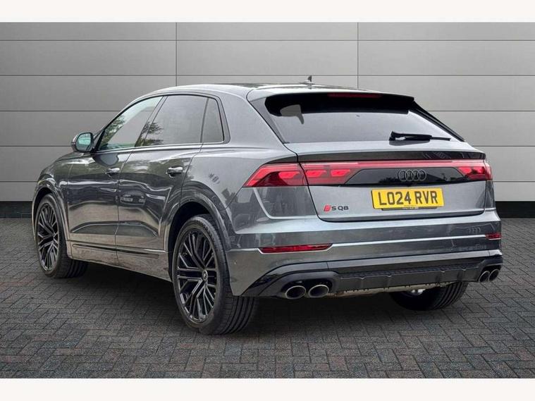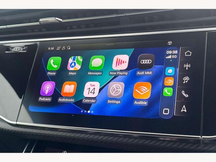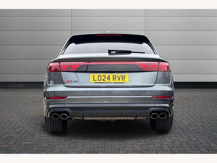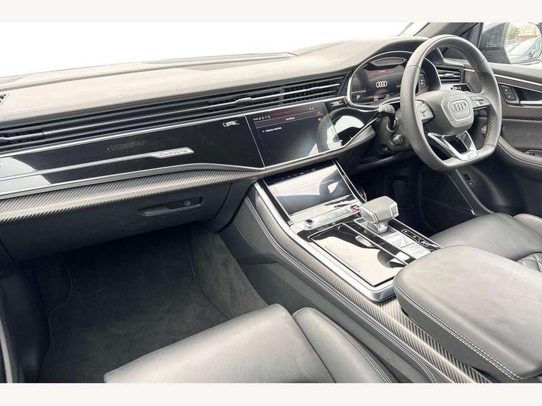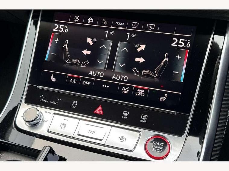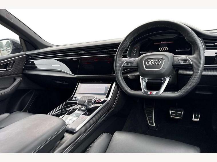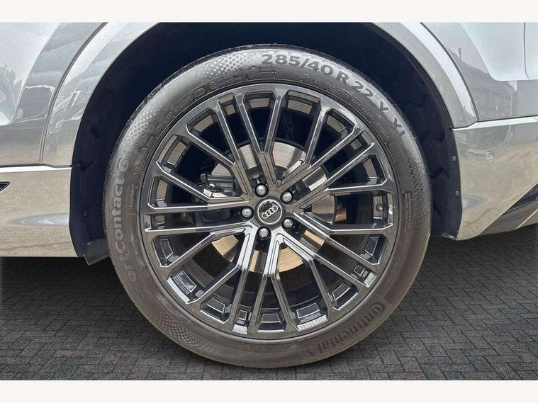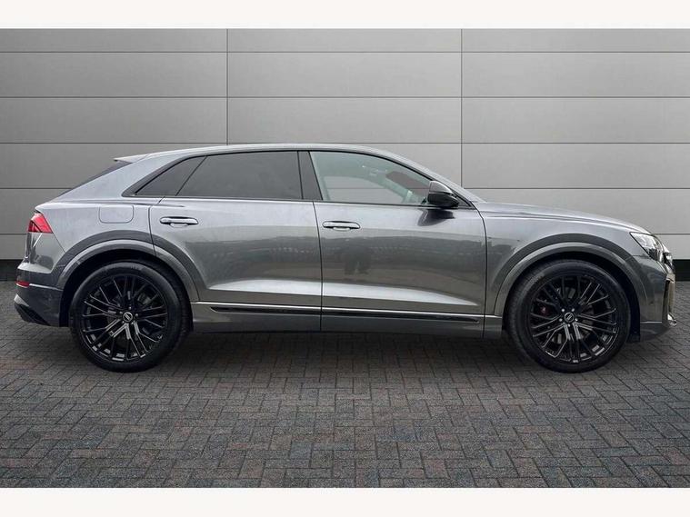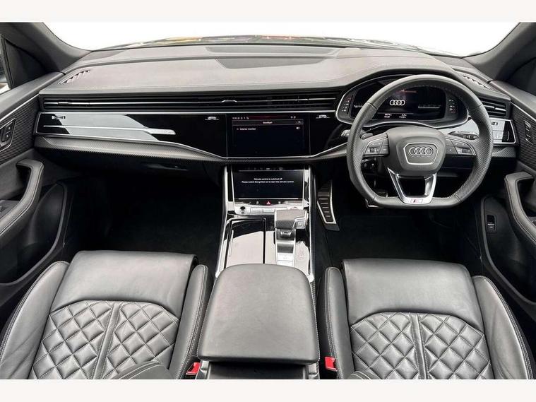 10.1" and 8.6" Dual colour touchscreens, 360 degree camera with top view, All wheel steering, Audi application store, Audi connect safety and service (e-call), Audi connect with Amazon Alexa Integration, Audi drive select, Audi phone box light with wireless charging, Audi virtual cockpit plus, Automatic start/stop system, Bluetooth, Electro-mechanical PAS, Head up Display, Low washer fluid indicator, MMI navigation plus with MMI touch, Natural voice recognition, On board computer, Operating buttons in black, glass look with haptic feedback, Power door closure, Power operated tailgate, Remote park assist plus, Service interval indicator, Smartphone interface includes wireless Apple carplay/Android Auto, 48V Mild hybrid technology, 85 litre fuel tank, Quattro all wheel drive with self locking centre differential, S specific Adaptive air suspension, Audi music interface with 2 USB ports with charge and data functions, Aux-in socket, Bang + Olufsen sound system, DAB Digital radio, 3rd brake light, Anthracite black door mirrors, Audi beam, Auto dimming frameless rear view mirror, Coming/leaving home lighting function, Digital OLED rear combination lamps, Electric front+rear windows, Electrically folding auto dimming/adjustable/heated door mirrors with memory function, LED side indicators and kerb view function for passenger side, HD Matrix LED headlights with Audi laser light, Headlight washers, Heat insulating glass in windshield, LED rear lights, LED signature daytime running lights, Platinum grey front spoiler lip and diffuser insert with honeycomb grille in black, Privacy glass - dark tinted rear and rear side windows from B-pillar backwards, Rain and light sensors, Rear side wing doors, Rear wiper, S specific dual brach chrome tailpipes on both the left and right, S specific front and rear bumpers, Singleframe grille surround in matte platinum grey, 3 bench rear seats in 2nd row, 3 spoke flat bottomed high multi-function leather sport steering wheel with gearshift paddles, 4 zone deluxe automatic climate control, 4-way lumbar support for front seats, 40:20:40 split folding rear bench seat, Black cloth headlining, Black leather instrument panel and centre console band with rock grey contrast stitching, artificial leather door armrest with contrast stitching, Comfort front centre armrest, Driver seat memory function, Electrically adjustable front seats, Front head restraints, Front/rear floor mats, Heated front and outer rear seats, ISOFIX child seat mounting for front passenger seat and 2 outer rear seats with top tether child seat mounting for all 3 rear seats, Luggage compartment sill protection in stainless steel, Power adjustable steering wheel, Rear centre armrest with 2 cupholders, Rear headrests, Seat cushion displaceable by 100mm in the ratio 60:40, Single front passenger seat, Stainless steel pedals, Sunvisors with illuminated vanity mirrors, Valcona leather upholstery + front super sport seats with S embossed logo, Ambient lighting package plus - Q8, Black styling pack plus - SQ8, City assist pack - Q8, 3 point seatbelts on all seats, Audi pre sense front, Driver and front passenger, front side and curtain airbags, Electromechanical parking brake, Electronic Stability Control (ESC) including ABS, ASR and EDL, Front passenger airbag deactivation, Hill descent control, Hill hold assist, Predictive pedestrian protection, Seatbelt monitoring, Traction control, Tyre pressure loss indicator, Warning triangle and first aid kit, Anti theft alarm with tow away protection, Anti-theft wheel bolts and wheel loosening detection, Electronically operated child lock, Immobiliser, Keyless go with remote central locking, Matte carbon twill inlays, 22" x 10.0J 10 spoke Y style black metallic audi sport alloy wheels, Tool kit, Tyre repair kit,