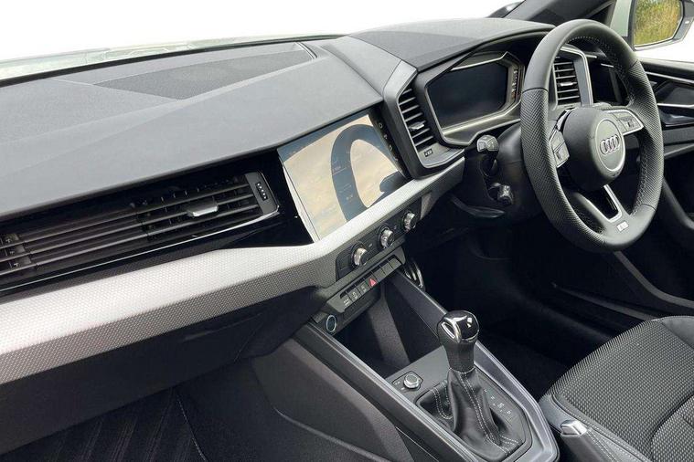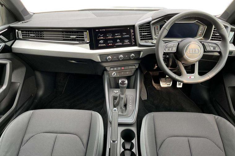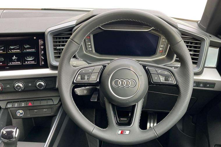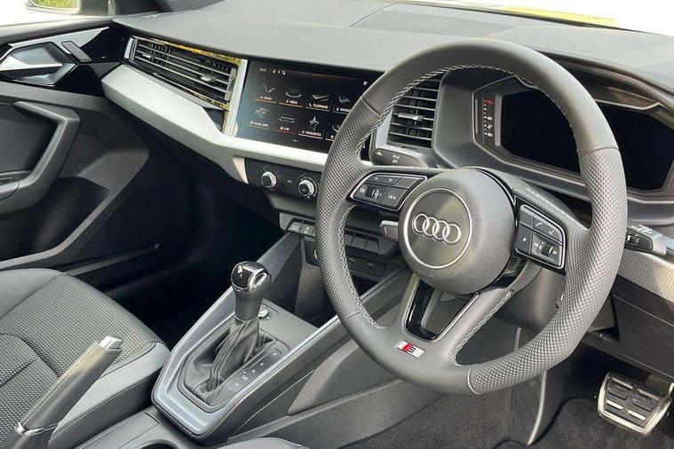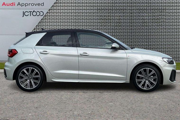 10.25" Digital instrument cluster display classis style instrument dials + speed, odometer, time, outside temperature, telephone menu + fuel level warning, Advanced driver attention and drowsiness monitor, Audi connect emergency call and service, Audi drive select, Audi remote connect and control, Audi smartphone interface, Bluetooth interface, Camera based traffic sign recognition, Cruise control, Driver's information system, Electromechanical power steering, Lane departure warning system, Rear parking sensor, Service interval indicator, Speed limiter, Start stop system with recuperation, Voice control system, Washer fluid level indicator, Sports suspension, 2 x USB type C connection points, 6 loudspeakers, DAB Digital radio, MMI radio plus with 10.1" colour MMI display screen and MMI touch, Auto dimming rear view mirror, Body coloured door mirrors, Door sill trims with aluminium inlays and S line logo in front, Electric front and rear windows, Electrically adjustable, heated, folding door mirrors with integrated LED side indicator, Front side air inlets in grained matt black and C frame in anthracite black, Headlight cleaning system, Heat insulating glass windscreen and side windows, Heated rear windscreen, High level LED brake light, LED daytime running lights, LED headlights with range control LED rear lights + dynamic rear indicators, Light and rain sensors, Privacy glass, Radiator grille and rear diffuser in matt anthracite black, Radiator protective grille frame in matt aluminium silver, Rear fog lights, Rear side wing doors, Rear wiper, S line badges on front wings, Side front spoiler lips in grained matt black, 12V socket in centre console with two cup holders, 3 rear seats with headrests, 3 seat bench in 2nd row, 3 spoke leather multi-function plus steering wheel features S badging and grips in perforated leather with contrast stitching, 40:60 Split folding rear seat or fully collapsed, Black cloth headlining, Front and rear velour black floor mats with contrast stitching in fine silver, Front head restraints, Front passenger seat, Height and reach adjustable steering wheel, Interior lighting includes roof module, front and rear reading lights and right luggage compartment lighting, ISOFIX child seat mounting for front passenger and outer rear seats including top tether attachment point of outer rear seats, Leather gear knob with aluminium trim, Leather handbrake grip, Manual air conditioning, Manual height adjustable for driver and front passenger seat, Manually adjustable lumbar support in front seats, Stainless steel pedals, Ambient lighting package - A1, Luggage compartment pack - A1, S line exterior styling pack - A1 Sportback, 3x3 point rear seatbelts, Audi pre-sense front with pedestrain and cyclist recognition, Brake assist function, Driver and front passenger airbag with front side and head airbags, Electronic Stability Control including ABS, EBD, ASR and EDL, Front passenger airbag deactivation switch, Hill hold assist, Manual rear child locks, Seatbelt height adjustment for front seats, Seatbelt monitoring, Tyre pressure loss indicator, Warning triangle and first aid kit, Anti theft alarm, Anti theft wheel bolts, Immobiliser, Remote control key with safelock, Aluminium trim for control switches, air vents and digital instrument cluster, Black dashboard, Silver grey inlays polygon structure in diamond paint finish, Structured grey accent surfaces insert of air vents, interior door handle recesses and centre console in quartz paint finish,