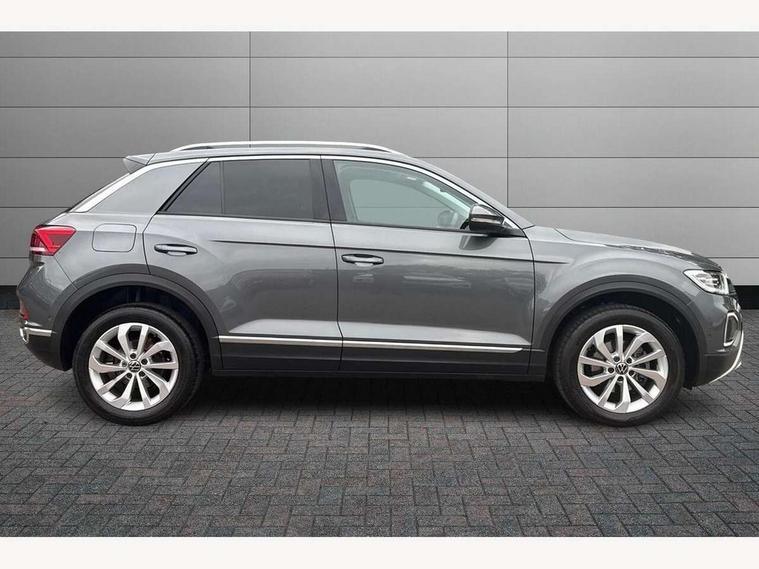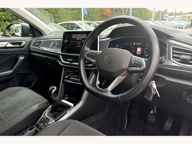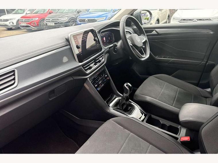 10.25" Digital cockpit pro, Bluetooth mobile phone interface, Driver alert system with fatigue detection, Driver tips and journey analysis, Dynamic road sign display, Emergency call service, Lane keeping system Lane Assist, Modified key software - reduce switch off time for key status change to Long no motion, Online services, Park assist including front and rear parking sensors, Power assisted speed sensitive steering, Service interval indicator, Tailgate/trunk lid release from outside, Think blue trainer driver tips and journey analysis, Warning sound and light for front seatbelts unfastened, Wireless app connect, Battery regeneration during braking, Front shock absorption, Rear shock absorption chassis with increased ride height, Start/stop function with battery regeneration, Diversity antenna for FM reception, Music playback - MP3, WMA and AAC files, Premium USB cable in choice of either Apple or Android smartphone compatibility, SD card slot, Simultaneous pairing of 2 compatible mobile devices, Title and cover art display, We Connect and We Connect Plus functionality, 3rd brake light, Auto dimming interior rear view mirror, Automatic hazard lights activation under emergency braking, Automatic headlight control with LED separate daytime running lights with coming/leaving home function, Body colour sports bumpers with silver metallic underbody fascia, Dynamic headlight range control with self adjusting whilst driving, Extended roof spoiler, Exterior mirrors aspherical on driver side, convex on front passenger side, External USB type C socket and charging sockets, Front windscreen wiper with intermittent wipe and 4 position delay, Heated rear window, LED rear combination lamps, LED rear number plate lights, LED tail lamp rear comination lamps, Light mode for poor weather, rain, fog or snow, Power windows with comfort operation and circuit breaker, Rain sensor, Rear exhaust tailpipe, Rear fog light on one side and reversing lights on both sides, Rear side wing doors, Rear wash/wipe with intermittent wipe setting, Remote electrically foldable door mirrors, puddle lights and reverse activated passenger's door mirror, 12V power socket in centre console, 3 rear head restraints, 3 seat bench in 2nd row, 4 load lashing points in luggage compartment, Air care climatronic air conditoning system with active combination filter and 2-zone temperature control, Chrome plated radiator grille inserts, air vent surrounds and light switch surrounds, Door and side trim panel with leatherette insert, Drawer under drivers seat, Front + rear carpet mats, Front centre armrest, Front comfort sports seats, Front cupholders x 2, Front footwell illumination, Instrument lighting, white adjustable panel illumination, Interior ambient lighting and surround lighting, Interior light delay, Isofix child seat preparation, Leather gearshift handle, LED interior light with switch off delay/dimmer and 2 front/rear LED reading lights, Load-through provision with cup holder when folded down ('Unsplit rear seat bench, split folding backrest, with centre armrest), Luggage compartment lighting, Non-folding front passenger seat backrest, Single front passenger seat, Storage compartment in left and right luggage area, Storage compartment in rear doors, Storage compartments in driver and front passenger doors, Sunvisors with illuminated vanity mirrors, Variable boot floor, height adjustable and removable, Driver assistance pack without proactive passenger protection - T-Roc, 3 point height adj front seatbelts + pretensioners, 3 point seatbelts in outer rear with ECE label, ABS, Child locks on rear doors, Driver and front passenger airbag with front passenger airbag deactivation, Driver and front passenger safety-optimised head restraints, Drivers seatbelt reminder, Electronic parking brake, Electronic Stability Control (ESC) inc EDL (Electronic Differential Lock) and ASR (Traction Control), Front and rear passengers curtain airbag system including front side airbags, Front assist with city emergency braking and pedestrian monitoring, Front disc brakes, Front seat side impact airbags, Predictive pedestrian protection, Rear disc brakes, Single tone horn, Tyre pressure loss indicator, Volkswagen roadside assistance, Anti-theft alarm system with interior monitoring, backup horn, and towing protection, Remote central locking with SAFELOCK, radio remote control with 2 remote control folding keys, Trims for alloy wheels,