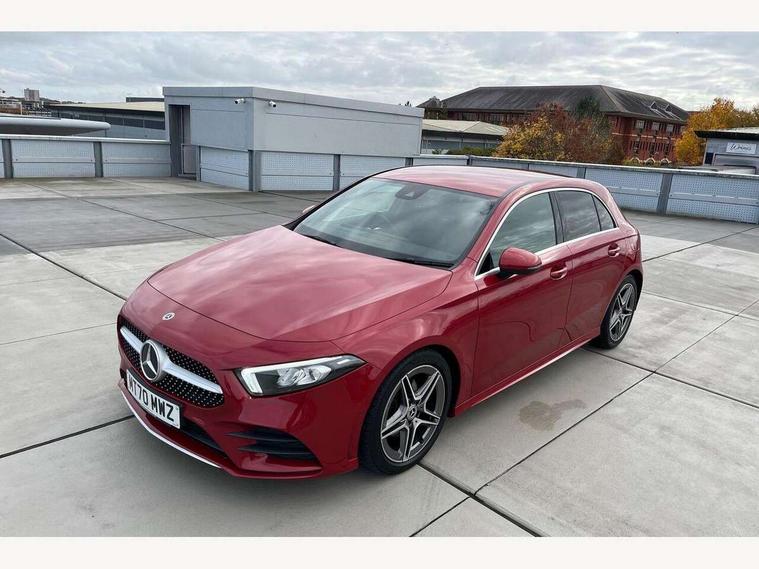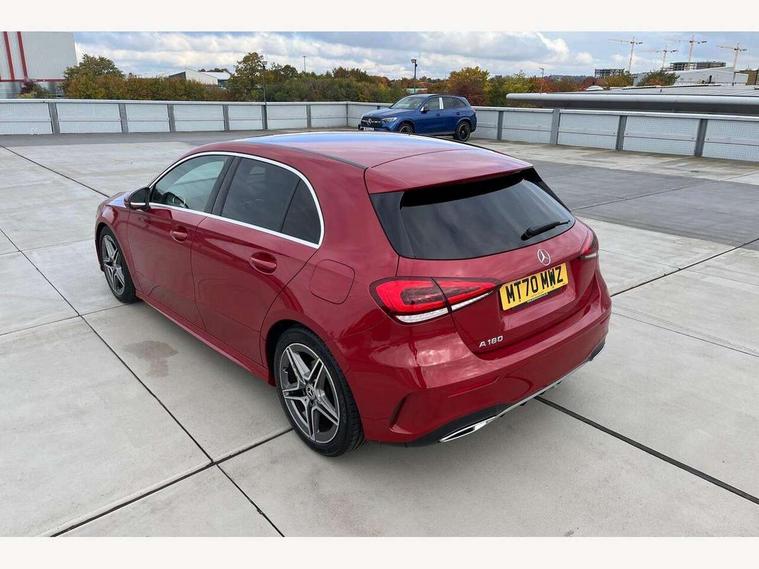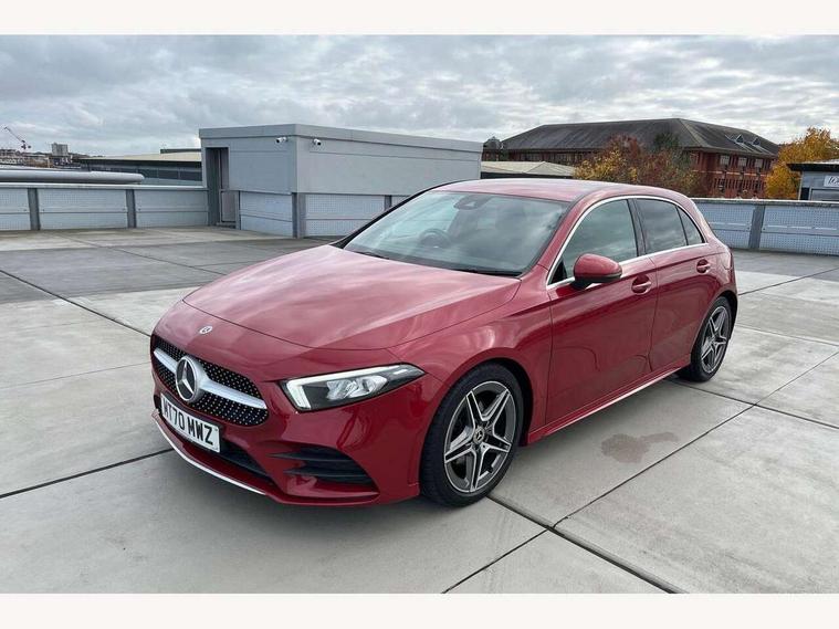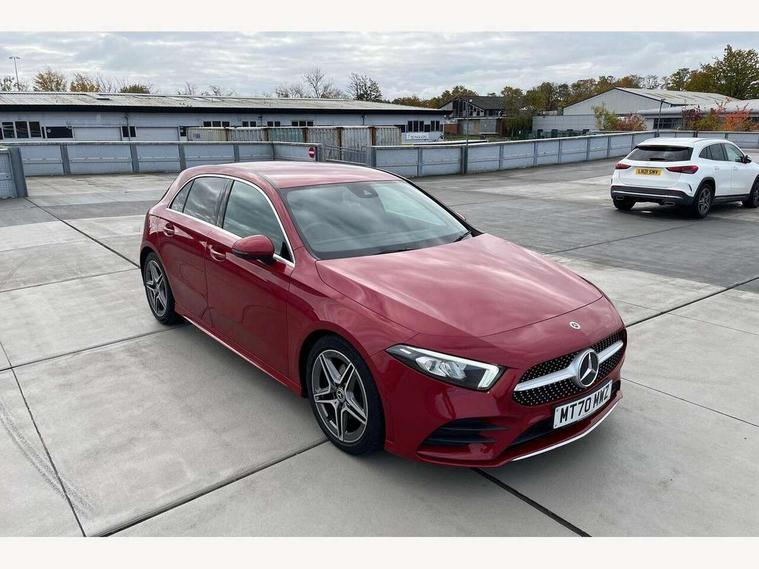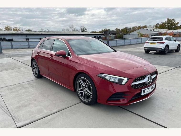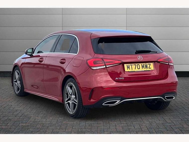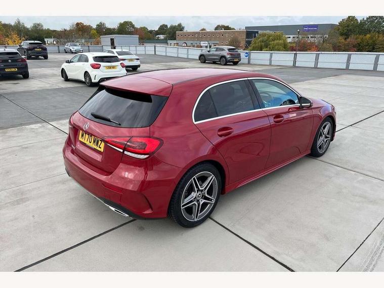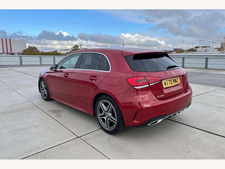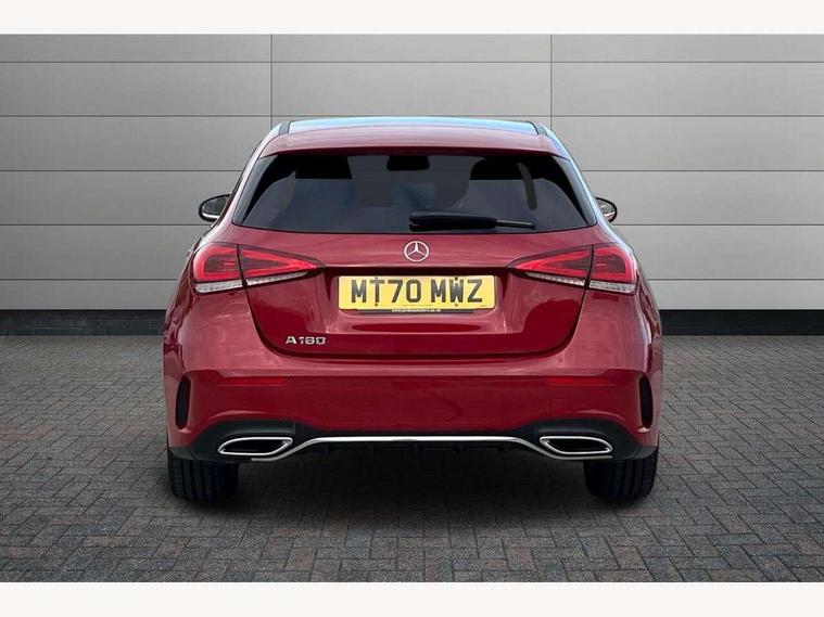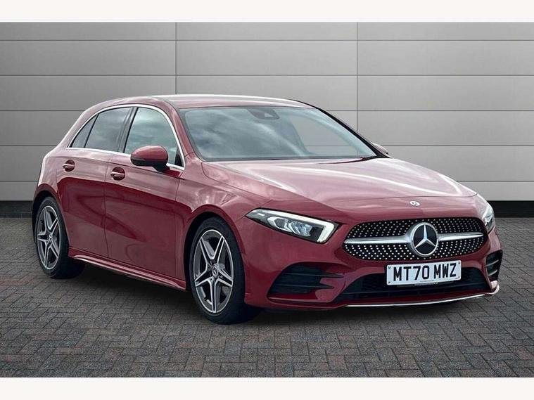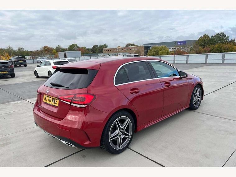 180 degree rear view camera with parking guidelines, 7" colour screen in instrument panel, 7" touchscreen media display, Active lane keep assist, Attention assist, Brake pad wear indicator warning light, Car wash mode, Cruise control + speed limiter, Direct steering, Dual bluetooth interfaces, DYNAMIC SELECT with a choice of driving modes (ECO, Comfort, Sport and Individual), ECO start/stop function, Fluid level warning indicator for fuel, oil, coolant and washer fluid, Hard-disk navigation, Hey Mercedes Voice activation, Lamp failure indicator, Mercedes me connect including emergency call system, accident recovery, breakdown and maintenance management, Outside temperature gauge, Owners manual in English, Pre-installation for private car sharing, Pre-installation for Vehicle Monitoring, Pre-installation for Vehicle Setup, Preinstallation for Mercedes Benz link, Service indicator (ASSYST), Speed sensitive power steering, Trip computer, Lowered comfort suspension, Rear axle torsion beam, 2 USB ports (type C) in rear stowage compartment and one in front of center console, 6 speakers, DAB Digital radio, MBUX multimedia system with DAB digital radio and touchpad including satellite navigation, Mercedes-Benz sound system - 100W, 4 Electric Front and Rear windows, Adaptive brake lights, AMG bodystyling - Front apron with splitter in chrome, rear apron with chrome trim and chrome visible trim elements in tailpipe, Black weather strip, Body colour bumpers, Body colour door handles, Body colour side skirt, Body coloured door mirrors, Chrome beltline trim, Diamond radiator grille with chrome pins and silver louvre + chrome insert, Electric adjustable and heated door mirrors with integrated LED side indicators, Exhaust system - Twin visible tailpipes in polished stainless steel, Headlamp assist automatic headlamp activation, Heated glass rear windscreen + timer control, LED high performance headlamps with integrated LED daytime running lights, LED tail lamp, LED third brake light, Privacy glass, Radio aerial, Rain sensing windscreen wipers with two sensitivity settings, Rear fog lights, Rear wiper, Window line trim strip in chrome, 3 Spoke flat bottom leather multi function steering wheel with perforated leather in grip area, 40:20:40 split folding rear seats, Artico man-made leather/Microfibre Dinamica upholstery with red contrast stitching, Auto Mercedes-Benz child seat recognition sensor, Black air vents with surround in silver chrome, Black roof lining, Brushed stainless steel sports pedals with rubber studs, Controller on centre console with chrome surround, Floor mats with stitched edging and AMG lettering, Front centre armrest with storage compartment, Front door sills with Mercedes Benz lettering, Front seat backs luggage nets, Front seat cushion length adjustment, Heated front seats, Height/reach adjustable steering column, Interior mirror with reading lamps in black and frameless, Manual height adjustable front seats, Rear head restraints, Seat occupancy sensor for front passenger seat, Sports seats with integrated headrests, Sunvisors with illuminated vanity mirrors, Touchpad on center console, Twin front cupholders, Two zone thermotronic luxury automatic climate control, Light and sight pack - A Class, Seat comfort pack - A Class, 3 rear 3 point seatbelts, ABS with Brake Assist, Active bonnet, Active brake assist includes forward collision warning system with autonomous braking, Adaptive brake assist with hold function and hill start assist, Black seatbelts, Childproof locks manually operated for rear doors and electrically operated for rear power windows, Crash responsive emergency lighting, Driver and passenger head and side airbags, Drivers knee airbag, Dual stage driver/passenger airbags, Electronic parking brake, ESP curve dynamic assist, ESP with ASR, Front and rear seatbelt reminder, Front brake callipers with Mercedes Benz lettering, ISOFIX and top tether child seat fixing points in two outer rear seats, Tyre pressure monitoring system, Warning triangle and first aid kit, Window airbags, Alarm system/interior protection/immobiliser, Keyless Go, Remote central locking and crash sensor with emergency opening function, Urban guard vehicle protection system with immobiliser and interior protection, Dinamica microfibre trim in black, 18" AMG 5 twin spoke light alloy wheels in titanium grey with highsheen finish, Summer tyres, Tirefit sealant kit,