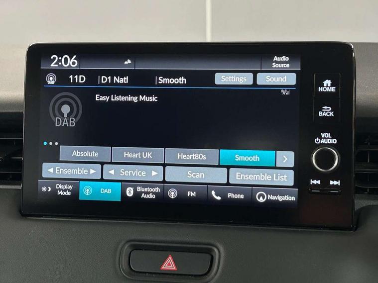 7" TFT instrument cluster, Adaptive cruise control, Adjustable speed limiter, Agile handling assist, Bluetooth hands free telephone connection, Drive modes select (Eco, normal and sport), eCall emergency system, Electric power steering, Emergency stop signalling system, Forward collision warning, Front parking sensors, Honda CONNECT with navigation, 9" touchscreen, AM/FM/DAB/Apple Carplay and android auto, Idle stop, Intelligent speed limiter, Lane departure warning, Lane keep assist, Low speed following, Multi info display, Power meter, Rear parking sensors and rear view camera, Road departure mitigation, Tachometer, Tailgate, Traffic sign recognition, WiFi connectivity, Vehicle stability assist, 'Shark fin' mobile antenna, 2x USB Front socket (1 data & 1 charge), 4 speakers, Steering wheel mounted remote controls, Auto folding door mirrors, Auto high beam, Automatic coming home lighting, Automatic headlights, Automatic rain sensing wipers, Body colour bumpers, Body colour tailgate spoiler, Body coloured door handles, Body coloured door mirrors, Body coloured front grille, Electric front and rear windows, Electrically adjustable and heated door mirrors, Exclusive styling in lower bumper non painting black, Fog garnish non paint gloss black, lower door garnish bumper skid garnish non paint silver, Front sequential turn, Headlight washers, Heated front windscreen, Heated rear window, High level third brake light, LED daytime running lights, LED headlamps, Low gloss window garnish, Manual headlight levelling, Rear side wing doors, Rear wiper, Red and clean lens LED rear lights, Variable front intermittent wipers, Windscreen shadeband, 3 rear headrests, 3 seat bench in 2nd row, 60/40 split folding rear seat, Ambient interior lighting, Automatic air conditioning, Cargo net hooks, Courtesy lights, Driver's seat height adjustment, Driver/passenger sunvisors with illuminated vanity mirrors, Front and rear map reading lights, Front head restraints, Front seat armrests, Heated front seats, Isofix points, Luggage area under floor storage box, Magic seat flexibility system, Manual height/reach adjust steering wheel, Meter illumination light, Paddle shift controls, Passenger seat back pocket, Rear centre armrest, Rear ventilation, Silver interior door handles, Single front passenger seat, Tonneau cover, Trunk light, 3x3 point rear seatbelts, ABS+EBD+Brake assist, Anti-whiplash front headrests, Auto hold function, Collision mitigation braking system, Collision mitigation throttle control, Deflation detection system, Dual front SRS airbags, Electric child locks, Electronic parking brake, Front and rear curtain airbags, Front and rear safety belts with Emergency Locking Retractor, Front side airbags, Hill descent control, Hill start assist, Low speed safety system, Paddle deceleration control, Passenger SRS airbag cut-off device, Regenerative braking system, Door deadlocks, Honda super locks, Immobiliser, Keyless smart entry with push button start, Remote central locking with 2 remote folding keys, Security alarm, Windows key fob operation, 18" Black cut alloy wheels, Tyre repair kit,