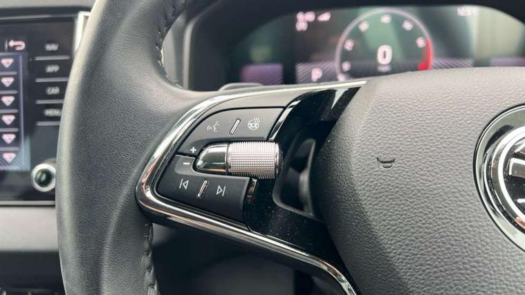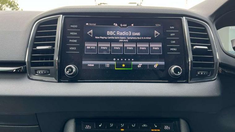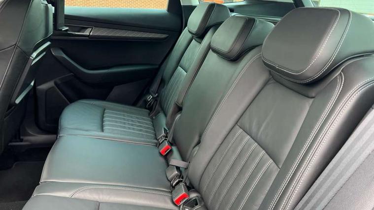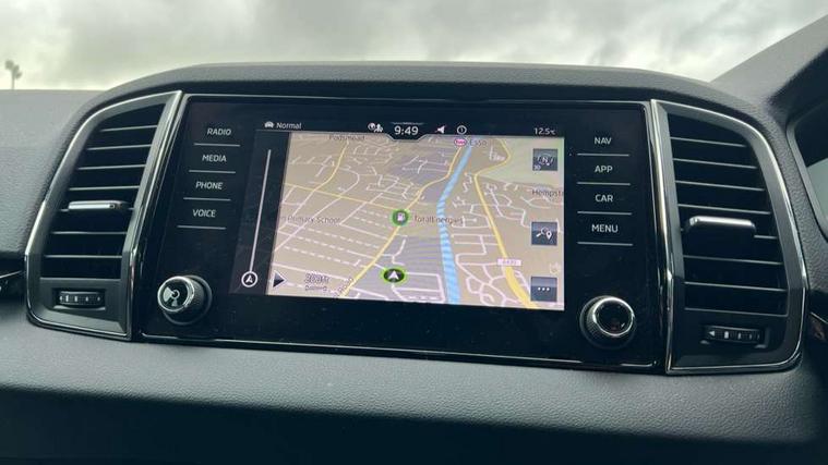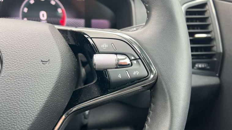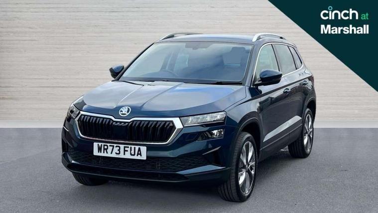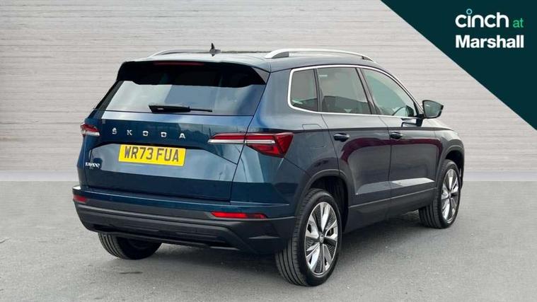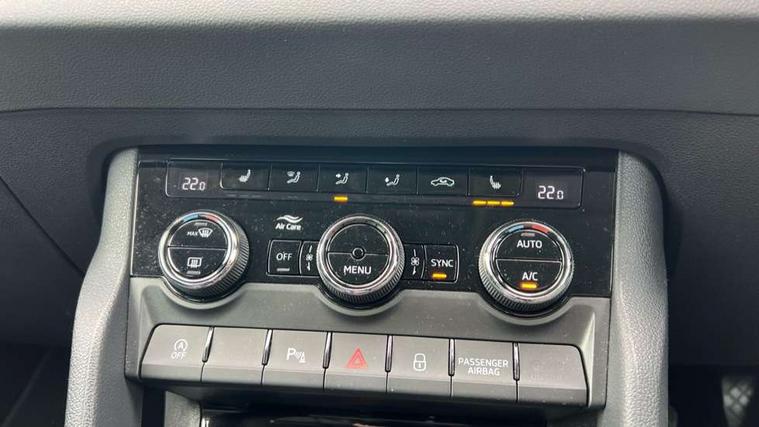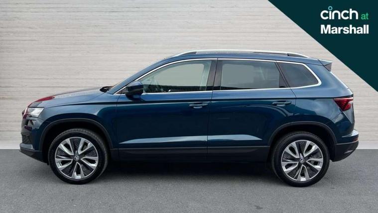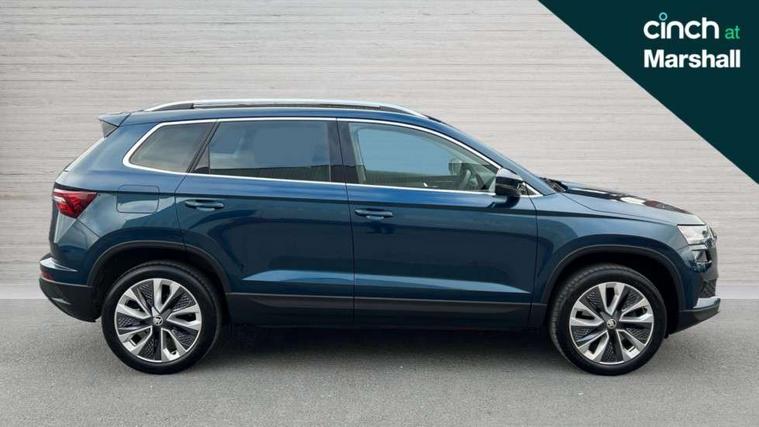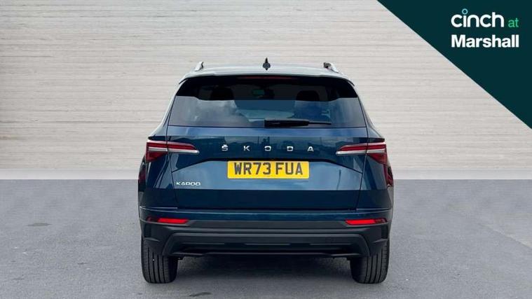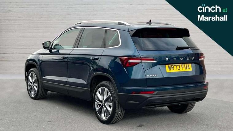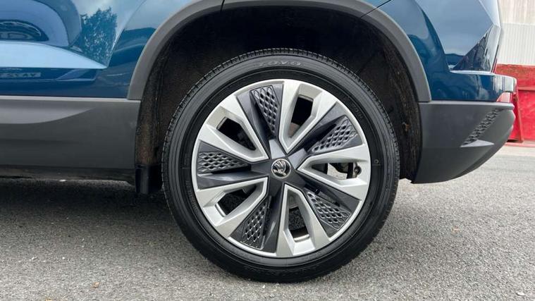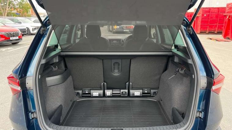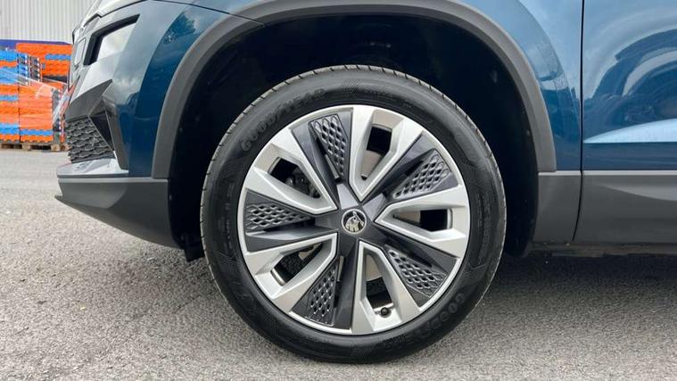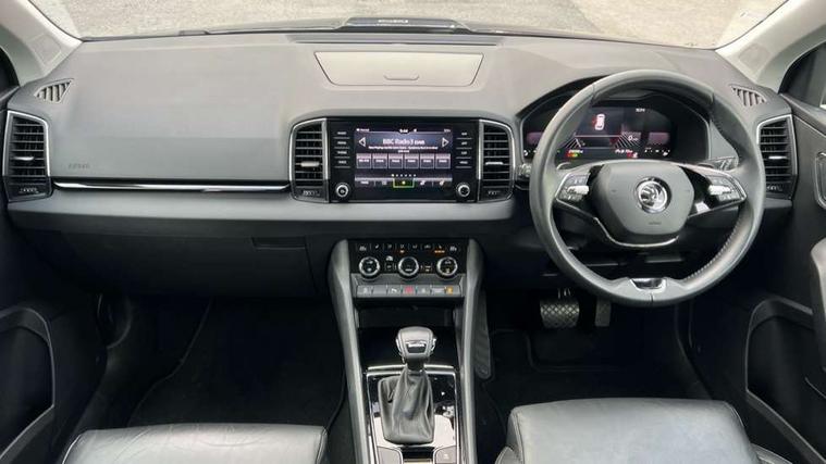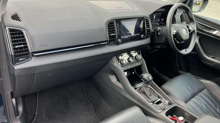 8" Digital display, Care connect, Driver fatigue sensor, Emergency services call system, Outside temperature gauge, Service interval indicator, SmartLink wireless for Apple and wired for Android, Start/stop system with regenerative braking, USB C Port x 2 in front centre console, 8 Speakers, DAB radio with Bluetooth, USB connection, Acoustic glass, Aero front windscreen wipers with intermittent function, Auto dimming rear view mirror with light and rain sensors, Black electric window control buttons, Body colour door mirrors and handles, Dynamic headlight range control with cornering light function, Electric front and rear windows with child proof lock, Heated rear windscreen, LED daytime running lights, LED rear lights with high functionality welcome effect and dynamic indicators, Light assistant (coming/leaving home/tunnel light), Plastic scuff plates, Privacy glass, Rear side wing doors, Rear spoiler, Rear window wiper with washer system and intermittent control, Safety reflectors on front doors, 1.5 litre bottle holders in driver and front passenger door panels, 12V socket in boot, 12v socket in front centre armrest with storage compartment and rear air vents, 2 spoke leather heated multifunction steering wheel with DSG paddles, 2 x Tablet holder, 3 rear height adjustable headrests, 3 seat bench in 2nd row, 4 foldable roof handles with rear coat hooks, Black floor carpet, Chrome inner door handles, Double sided boot floor, Foldable hooks in the boot, Front head restraints, Height adjustable front three point seats belts with tensioners, Height/reach adjust steering wheel, Ice scraper, Illuminated glovebox, Illuminated luggage compartment, Isofix child seat preparation for front passenger seat, Isofix child seat preparation outer rear, Manual lumbar support for front seats, Pen holder, Pollen filter, Rear boot cover, Rear reading lights, Rubbish bin door, Safety vest holder, Single front passenger seat, Storage box in upper central dashboard closed, Sunvisors with illuminated vanity mirrors, Textile floor mats, Ticket holder, VarioFlex seats with standard rear seat release, Boot pack - Karoq, Design Pack - Karoq, Parking pack - Karoq, Automatic door unlocking in case of crash, Automatic fuel cut off in case of crash, Child locks on rear doors, Driver airbag, Electronic parking brake with auto hold function, Emergency rear braking signal, ESC including ABS, MSR, ASR, EDS, HBA, DSR, RBS, MKB and traction control, Front side airbags, Hill hold control, Knee airbags, Passenger airbag with switch-off function, Pedestrian monitor, Seatbelt reminder signalisation and pretensioner for all seats, Three point seatbelts rear, Two tone horn, Tyre pressure display, Tyre pressure monitor, Alarm with interior monitoring, back up horn and tilt sensor with safe function, Electronic engine immobiliser, Keyless entry and start/stop, Remote central locking with 2 remote folding keys, Chrome framed air vents, 18" Miran alloy wheels in black, Anti-theft wheel bolts protection, Tool kit,