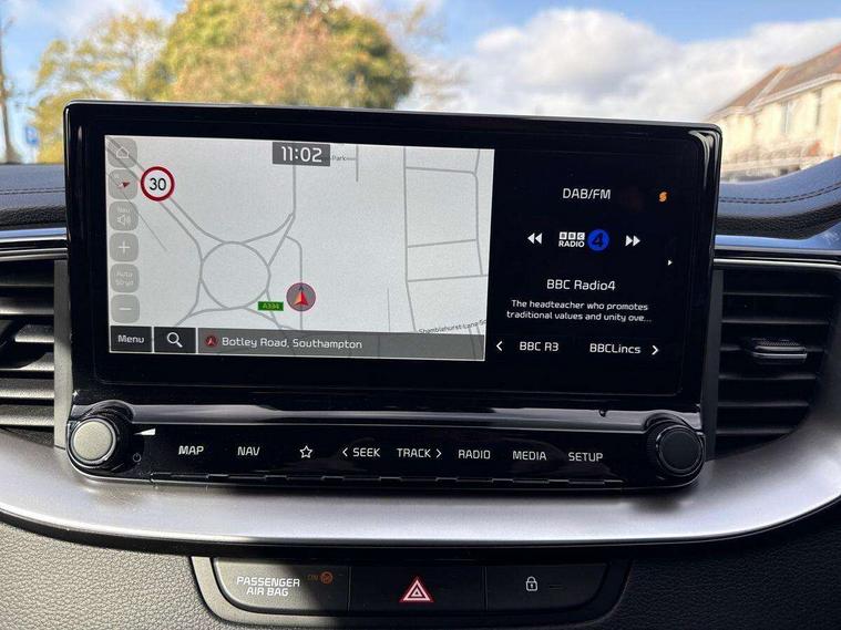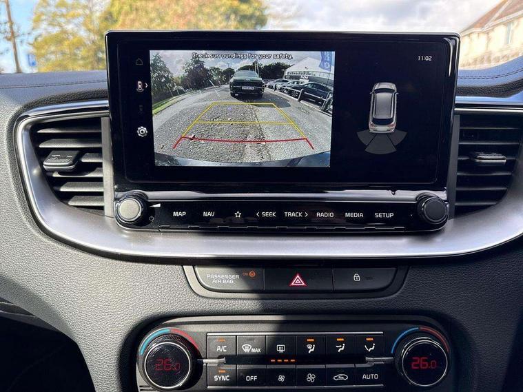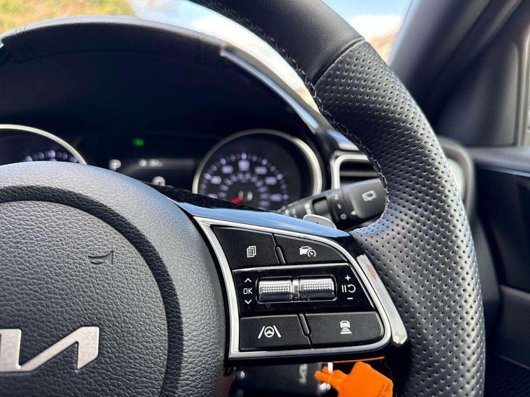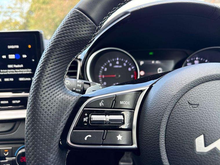 10.25" touchscreen satellite navigation, 4.2" supervision colour cluster display, Apple car play/Android Auto with voice control, Bluetooth with Voice Recognition & Music Streaming, Drive mode select (Normal and Sport), Driver attention warning + (DAW) with leading vehicle departure warning, Emergency call service, Emergency stop signalling system, Forward Collision-Avoidance Assist (FCA) - City/Pedestrian/Cyclist, Kia connect UVO, Lane Following Assist (LFA), Lane keep assist, Manual speed limit assist, Motor driven power steering, Rear parking sensor, Reversing camera system with dynamic guidelines (Integrated into centre fascia screen), Smart cruise control with stop/go functionality, Trip computer, Intelligent Stop and Go, 6 speaker audio system, DAB Radio with MP3, Illuminated USB ports, Steering wheel mounted controls, USB Fast Charger in Front Centre Console, USB type A port, All-round Electric Windows with Front Auto Up & Down Function, Auto dimming rear view mirror, Automatic defog system, Automatic headlights control, Body colour bumpers, Body colour exterior door handles, Body coloured and dark chrome rear skid plate, Body coloured side sill mouldings, Dark chrome window surround, Electric adjustable/heated/folding door mirrors with LED Indicators, Heated rear window with timer, High beam assist, High gloss black and dark chrome radiator grille, High gloss black door mirrors, High Gloss Black rear spoiler - roof, LED daytime running lights, LED front fog lights, LED Headlights, LED High-mounted Brake Light, LED honeycomb rear light, LED rear combination lights, LED rear fog light, Privacy glass (rear side windows and tailgate), Rain sensing front wipers, Rear side wing doors, Rear wash/wipe, Satin chrome dual exhaust trim, Tinted glass, Wide view drivers door mirror, Windscreen Washer Level Warning, 1 x Front 12V socket, 12V power socket in luggage compartment, 3 seat bench in 2nd row, 3 x passenger assist grips, 60/40 split folding rear seat, All-round height adjustable headrests, Aluminium pedals, Black headlining, Centre console storage box/armrest, Cloth/faux leather upholstery, Cupholders in centre console, Cupholders in rear armrest, Dash illumination dimmer switch, Door courtesy lamps, Driver & Front Passenger Sunvisors with Vanity Mirror Illumination & Ticket Holder, Driver + front passenger electric lumbar support, Driver's seat height adjuster, Dual Height Luggage Area Floor, Dual zone automatic air conditioning, Faux leather door centre trim, Front and rear door storage, Front cabin map light with sunglasses case, Front Passenger Seat Height Adjuster, Front seat back pockets, Heated front seats, Heated steering wheel, Interior door lock/unlock function, ISOFIX Child seat top tethers and anchor fixings, Leather D-Cut steering wheel, Leather handbrake, Luggage area light, Luggage area parcel shelf, Luggage hooks, Rear centre armrest, Rear coat hooks, Single front passenger seat, Tilt/telescopic adjustable steering wheel, All round 3-point seatbelts, Anti-lock braking system (ABS), Brake assist system, Dual front side airbags, Dual horn, EBD - Electronic brakeforce distribution, Electronic parking brake, Electronic stability control (ESC) and vehicle stability management (VSM), Front passenger airbag cut-off switch, Height adjustable front seatbelts, Hill start assist control (HAC), Impact sensing auto door unlocking, Rear door child safety locks, Seatbelt reminder warning, Twin curtain airbags, Twin front airbags, Tyre pressure monitoring system, Alarm system, Engine Immobiliser & Deadlocks, Locking wheel nuts, Remote central door locking with fold away key, Speed sensitive auto door locking, Satin Chrome Fascia Trim, 17" GT-Line alloy wheels, Tyre mobility kit,