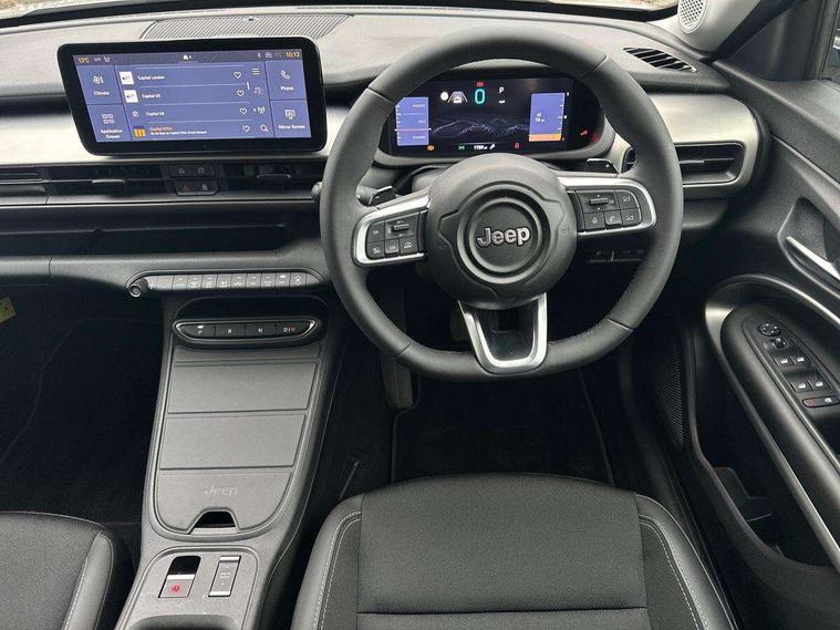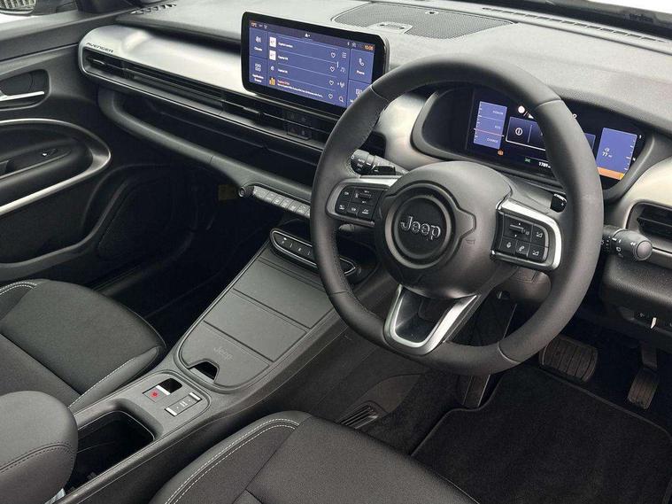 (AEB) Autonomous Emergency Braking with pedestrian and cyclist recognition, 10.25" Full TFT reconfigurable colour cluster, Adaptive cruise control, All-Terrain Mode Selector, Apple Carplay/Android Auto with wireless mirroring, BSRF connectivity box, Connectivity services, Drowsy driver detection system, eCall emergency call system, Front, rear and side parking sensors, Hands free power liftgate, Keyless Start/Engine On Button, Lane Centering, Lane keep assist, Odometer, PAS, Quick Guide English, Rear view camera with dynamic grid lines, Traffic jam assist, Traffic sign recognition, Urban blind spot monitor, Warranty Booklet - UK, Wireless charging, Battery default, High efficiency alternator, Idle coasting, Rear USB port with type-C charging, 3rd brake light, 7 Slots grille in gloss black, All power windows express Up/Down, Automatic headlights, Automatic high/low beam, Body colour exterior door handles, Day time running light, Foldable/Heated/Power door mirrors with Auto folding function and puddle light, Frameless auto dimming interior rear view mirror, Gloss black mirror caps, LED Fog lamps with cornering function, LED projector headlamps, LED rear lights, Privacy glass, Rain sensor, Rear side wing doors, Rear wiper, Silver skid plates, Welcome/leaving lighting, 3 rear headrests, 3 seat bench in 2nd row, Automatic A/C (1 Zone), Cargo Flex Kit - Flat floor on trunk area, height adjustable cargo floor, double face carpet/scratch resistant and washable, Central console dividers x2, Driver and front passenger sunvisor with vanity mirror, Foldable second row seats 40/60 - Fix and Fold, Front and rear velour floor mats, Front central armrest with storage, Front head restraints, Front passenger grab handle, Front passenger isofix child seat attachment, Front seat backrest pocket, I am Jeep label, Paddle shifter, Predisposal for tunnel pad cover, Single front passenger seat, Synthetic leather steering wheel, Tunnel pad cover and Interior rubber mats in Manovra, Anti-lock braking system (ABS), Child locks on rear doors, Electric parking brake with auto hold function, ESC - Electronic Stability Control + traction control, Hill descent control, Kit fix and go predisposition/housing only, Rear seat ISOFIX, Three 3 point rear seatbelts, Vulnerable road user recognition - Pedestrian/Cyclist incl. AEB, Passive entry, Volumetric anti theft alarm, 18" Diamond cut alloy wheels painted in matt black with summer not chainable, Fix and go puncture repair kit,
