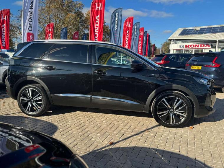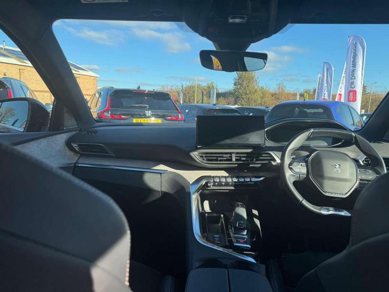 10" High Definition Capacitive Touchscreen, 3D connected navigation + voice control, Bluetooth telephone connection, Drive mode selector (Eco, Normal and Power), Driving timer alert system, Extended traffic sign recognition, Exterior temperature indicator with ice warning, Lane departure warning system, Mirror screen with Apple CarPlay and Android auto, Motorised Electric Tailgate (key plip and foot operated), Multi function trip computer, Passive blind spot monitoring without Steering correction, Peugeot i-cockpit with configurable 12.3" headup digital instrumental panel and compact sports steering wheel, PEUGEOT SOS and assistance, Rear passenger USB charging sockets (x2) (type A), Speed limit recognition and recommendation, Sports button, Dynamic stability control and electronic anti-skid system, Bi Tuner radio including DAB, Focal premium HiFi sound system, USB socket, Auto self levelling headlights, Automatic activation of hazard warning lights, Black diamond roof and nera black door mirror shells, Body colour door handles, Body coloured rear spoiler, Body protectors in black, Chrome side window trim, Dark tinted rear side and tailgate windows, Door mirrors with auto dipping function in reverse gear, Dynamic frameless design in front radiator grille, Electric folding door mirrors with exterior courtesy LED lighting, Electrically heated door mirrors, FOCAL tweeter speaker grilles in 'belem bronze metal effect finish, Frameless electrochrome rear view mirror, Front windscreen wiper with magic wash cleaning system, Full LED headlights with fog mode, Gloss black B and C pillar and aerodynamic deflector trim, Gloss black rear cluster connecting strip, GT emblem (front wings and tailgate), Headlights left on audible warning, Heated rear windscreen with integrated antenna, LED daytime running lights in fang style, LED front indicator, LED rear lights including reversing lights, scrolling indicators and PEUGEOT '3Claw Effect' light signature (with daylight function), LED rear number plate lighting, LED side indicator lights integrated into door mirrors, One touch electric front/rear windows with pinch protection, Rear windscreen wiper with auto activation when reversing, Silver front lower bumper, Twin exhaust effect trim, 2 cupholders in front centre console, 3 x 12V power sockets, 4 Grab handles retractable and damped, Aikinite stitching in armrest, gear lever and dashboard facia, Aluminium pedals, Automatic and dual zone diffusion air conditioning system, Blue ambient lighting for connecting zone, Blue ambient lighting to front door panels, central storage and cupholders, Blue ambient lighting to head up instrument panel, Brumeo fabric trimmed door armrests, Central front armrest with butterfly wing opening, Tramontane double stitching and illuminated storage compartment, Electric power steering with reach and rake adjustable steering column, Flocked front door pocket interior with blue ambient lighting, Flocked glovebox interior, Fold flat front passenger seat with picnic table, Footwell lighting, Front ambient lighting, Front interior light with reading spotlights (x2), row 2 interior light with reading spotlights (x2), Front passenger seat manual adjustment (longitudinal and back rest angle), Gear shift indicator, Height adjustable driver seat, Height adjustable passenger seat, Illuminated glovebox, Illuminated vanity mirror, Isofix child seat fittings x 3 in the second row, LED interior lighting, Map pocket on front seat backs, Mistral floor mats with Aikinite contrast stitching, Mistral full grain perforated leather steering wheel with aikinite stitch detail and satin chrome 'GT' emblem, Rear ventilation system, Retractable parcel shelf, Roof lining and windscreen pillars in Mistral black, Satin chrome digital instrument panel and touchscreen trim, Satin chrome front door panel recess trim, Satin chrome interior door handles, Satin chrome scorpion's tail and toggle switch trim, Seatbelt not fastened audible and visual alert for front seats, Seatbelt unfastened on the move audible and visual alert for front and rear seats, Third row seats (can be stored under bootfloor or removed completely), Twin rear coat hooks, Children's pack - 5008, Drive Assist Plus Pack - 5008, Driver sport pack - 5008, Visibility pack - 5008, Visio Park 2 pack - 5008, ABS + EBD + EBA, Adaptive driver and front passenger airbags including passenger airbag deactivation function, Electronic parking brake, ESP and ASR traction control with deactivation switch, Five 3 point rear safety belts, Front and rear curtain airbags, Front optimised safety headrests and rear retractable headrests (x3), height adjustable, Front side airbags, Front three point retractable seatbelts height adjustable with pre tensioners and force limiters, Front ventilated disc brakes, Hill start assist, Rear disc brakes, Rear three-point retractable seatbelts (x3) with pre-tensioners and force limiters in the outer rear seats, Two tone horn, Automatic door locking when moving off, Child lock control of rear doors and windows, Electronic code immobiliser, key operated exterior door lock from the left hand door, Keyless Start, Perimetric and volumetric alarm with lift and tilt sensor, Peugeot Open and Go System, Remote control central locking with two plip keys, Satin chrome dash trim, Puncture repair kit including compressor, sealant cartridge and towing eye,