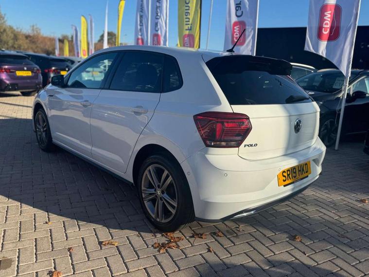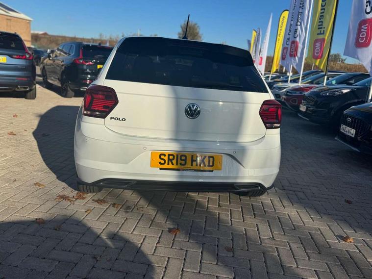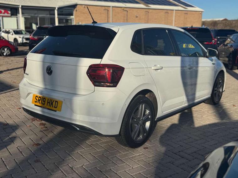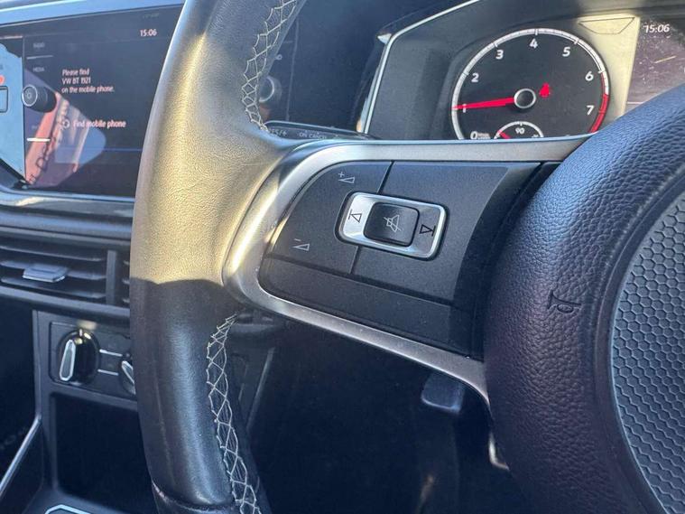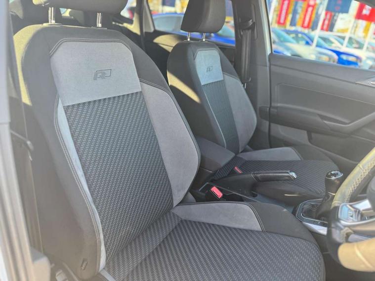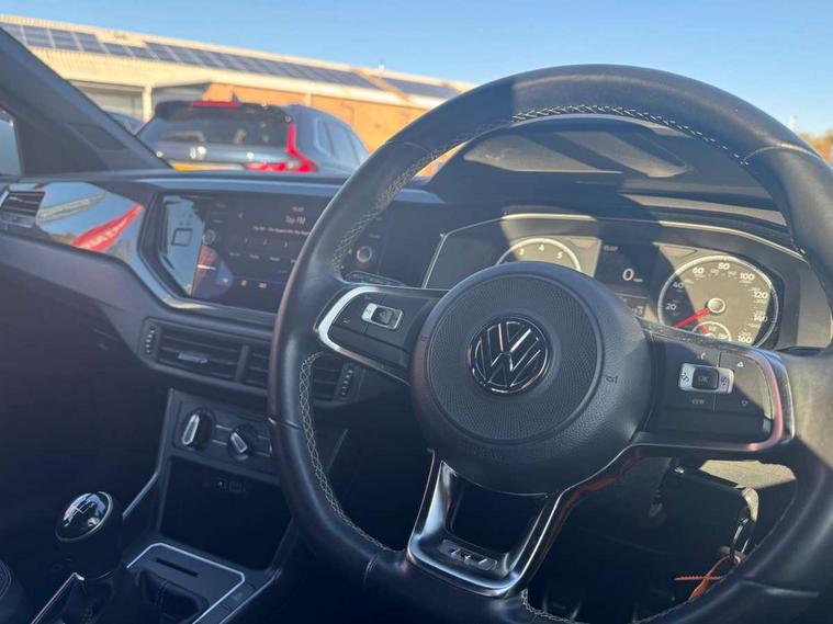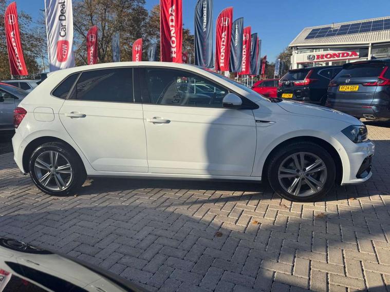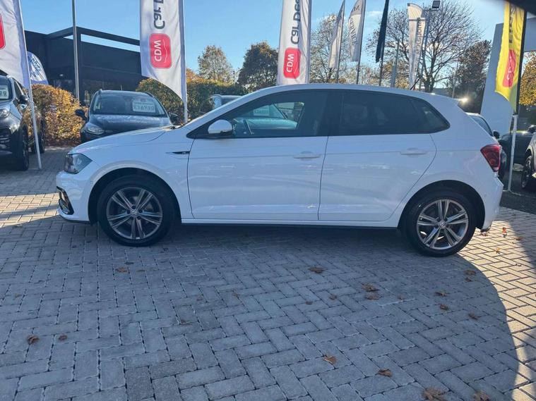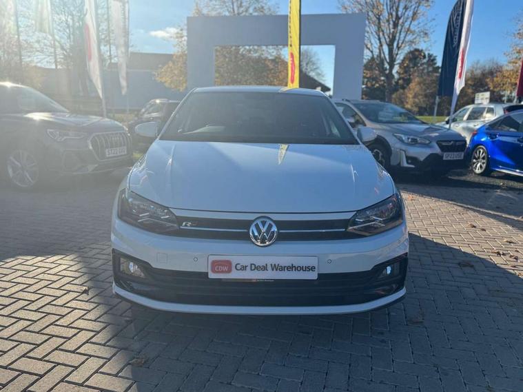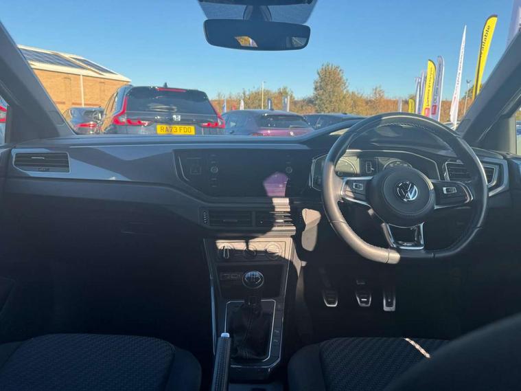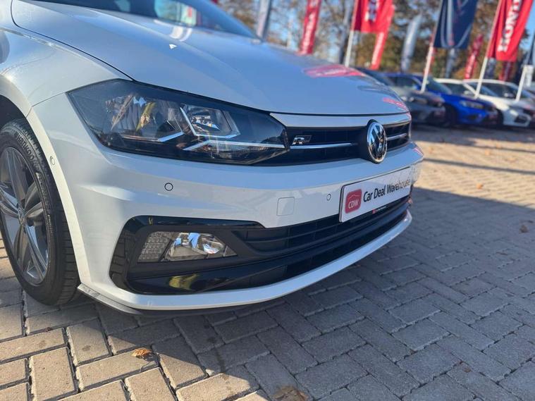 App-Connect, Bluetooth Telephone preparation, Driver alert system, Multifunction colour display, PAS - speed related, Service interval indicator, Start/stop system, Trip computer, Warning buzzer and light for front seatbelts unfastened, Battery regeneration during braking, 6 speakers, Composition media system with radio, glovebox mounted CD, colour touch screen, SD card, aux-in, USB, multimedia interface, DAB Digital radio, Automatic dimming interior rear view mirror with rain sensor, Automatic headlamp activation, Black grille with chrome surround, Black radiator grille with chrome insert, Body colour bumpers, Body colour door handles, Body colour rear spoiler, Body coloured side sills, Chrome insert to lower bumper, Chrome trimmed front air intake surrounds, Electric folding door mirrors, Electric front windows, Electric operated/heated door mirrors, Front fog lights including static cornering, Front wash/wipe with interval delay, Fully galvanised body, Heated rear window with auto timer, High level 3rd brake light, LED darkened rear light clusters, LED daytime running lights, LED rear number plate lights, Manual coming/automatic leaving home lighting function, R Line body kit, Rear diffuser, Rear electric windows, Rear windscreen washer and wiper with interval delay, Stainless steel door sill protection, Twin chrome exhaust tailpipes, 12V power socket in centre console, 2 bag hooks in luggage compartment, 2 cupholders, 3 rear head restraints, 3 spoke steering wheel, 60/40 split folding rear seat, Ambient lighting, Carbon flag cloth upholstery, Chrome-plated electric window button surround, Driver/front passenger seat height adjustment + underseat drawers, Driver/passenger sunvisors with illuminated vanity mirrors, Dust/pollen filter, Front + rear carpet mats, Front centre armrest with storage compartment, Front seat backrest storage nets, Front sport seats, Front/rear reading lights, Glovebox, Handbrake grip button in chrome effect, Height/reach adjustable steering column, Instrument lighting, white adjustable panel illumination, Interior light with delay, Isofix Preparation 2 Rear child seats, Jack and tool kit, Leather multifunction steering wheel, LED footwell lights, Luggage compartment cover, removable, Luggage compartment lighting, Matt chrome gear lever gaiter surround, R Line badge, Stainless steel pedals, Storage compartment in front doors, Storage compartment in rear doors, Storage compartment under front seats, Titanium black headlining, Titanium black roof lining, Variable boot floor, Variable Luggage compartment, Light and sight pack - Polo, R Line styling pack - Polo, 3 point height adj front seatbelts + pretensioners, 3x3 point rear seatbelts, ABS, Automatic post collision braking, Driver/front passenger airbag, Driver/Passenger whiplash optimised head restraints, ESP with EDL + ASR, Front and rear passengers curtain airbag system including front side airbags, Front passenger airbag deactivation, Front/rear disc brakes, HBA (Hydraulic Brake Assist), Hill hold control, Two tone horn, Tyre pressure monitoring system, Alarm with remote central locking and interior protection, Electronic engine immobiliser, Chrome plated electric mirror adjustment light switch surround, Cortina silver air vent surround, Matt chrome interior trim, Snow shadow steel dashboard pads, Steering wheel aluminium inserts, Space saver spare wheel,