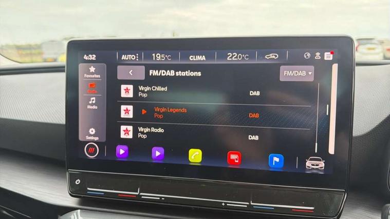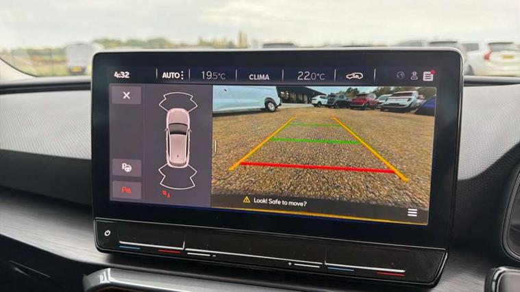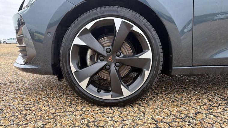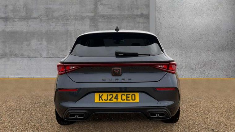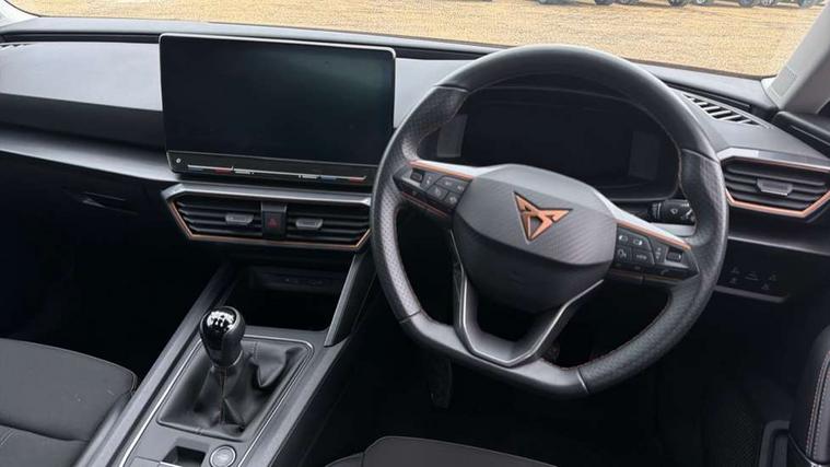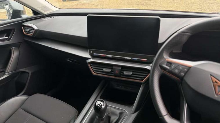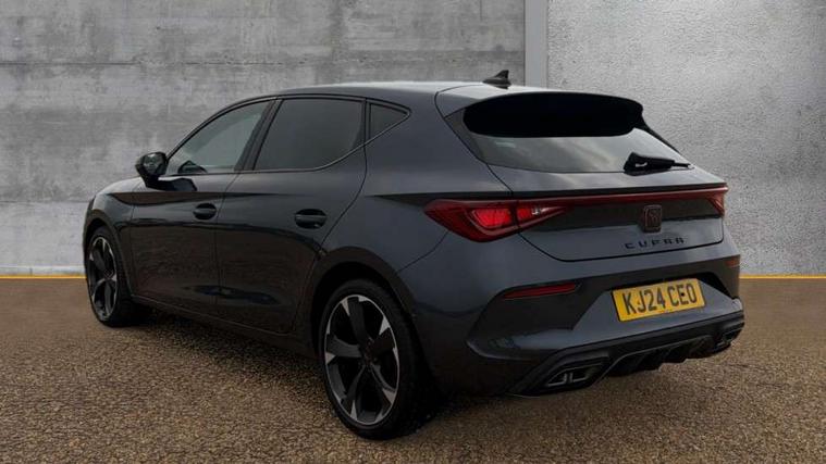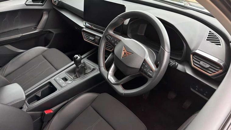CUPRA drive profile selection with (Comfort/Sport/Individual), throttle response and gearshift mode, Digital cockpit, E-call, Electro mechanical speed sensitive power steering, Four x USB Type C ports (2 in front and 2 in rear), Front assist with forward collision warning braking reaction to vehicles, pedestrians and cyclists, Full link smartphone integration with Mirror Link, wireless Apple CarPlay and wired Google Android Auto, Lane assist, Lockable tailgate, Park assist (inc front/rear parking sensors), Rear view camera, RPM, trip computer, outside temp gauge, instrument light brightness, low fuel warning light, lights on reminder, gearshift indicator, Service interval indicator, Start/stop system with regenerative braking, Wireless phone charger, Sports suspension, Auxiliary input socket, Auto dimming rear view mirror, Body colour door handles, Body coloured bumpers, Cupra sports bumpers, Dark tinted rear windows, Electric front/rear windows, Electrically adjustable, heated and folding door mirrors, LED front fog lamps with cornering function, LED headlights with dynamic turn signals, tail lights, rear fog lights with rear coast to coast lighting, Rain sensing wipers, Rear diffuser with twin exhaust pipe on each side, Rear side wing doors, Rear wash/wipe, Separate daytime running light with automatic headlight control and coming home feature, Third brake light, 12v power supply in centre console, 3 seat bench in 2nd row, 5 headrests, 60/40 split rear bench seat with armrest, Ambient lighting with glovebox, footwell and single monocolour, Cupra Leather flat bottomed, perforated steering wheel, Driver/passenger manual seat height adjustment, Folding boot cover, Front and rear reading lights X 4, Front centre armrest, Front seats manual lumbar adjustment, Grey headlining, Height/reach adjust steering wheel, Illuminated interior front door sills, ISOFIX points in outer rear seats with top tether anchorage points, Jack and tool kit, PVC/Cloth upholstery with copper stitching, Single front passenger seat, Sports seats, Sunvisors with illuminated mirror, Three zone climate control, Media system plus with navigation pack - Leon Cupra, Safety and driving pack (M) - Cupra leon, 3 point seatbelts on all rear seats, ABS, Brake control system - ESC and brake booster, Child proof door locks, Cupra black brake calipers, Driver and front passenger airbags with front passenger airbag de-activation, front side and curtain airbags, Electronic parking brake, Extended safety system - seat belt tensioner, window closure and hazard lights, Hill hold control, Rear disc brakes, Seat belt reminder for front and rear seats, Tiredness recognition system, Tyre pressure monitoring system, Anti theft alarm system with interior monitoring in cab, backup horn and towing protection, KESSY Advanced - Keyless start, keyless entry, Locking wheel bolts, Chrome and copper interior detailing, 18" Machined sport black and silver alloy wheels with 92Y tyres,