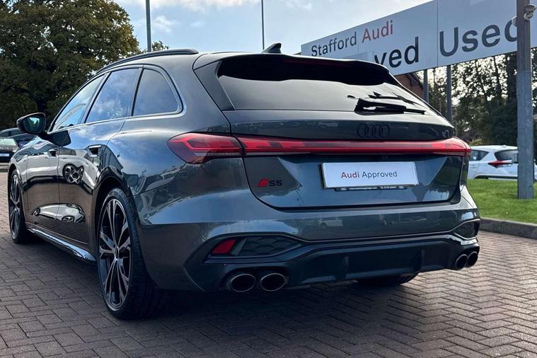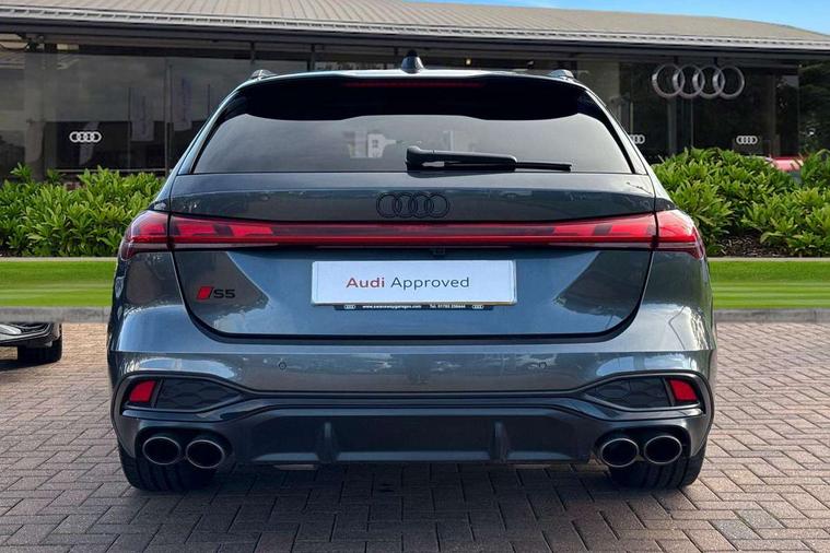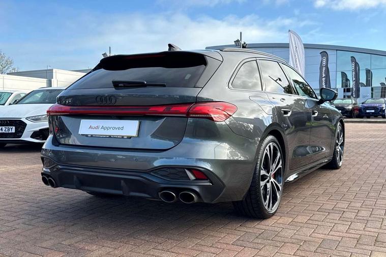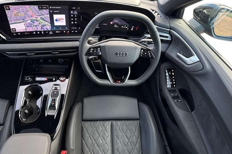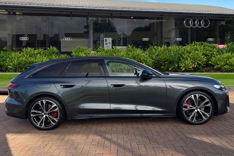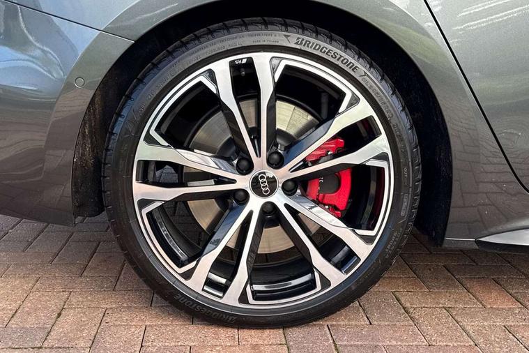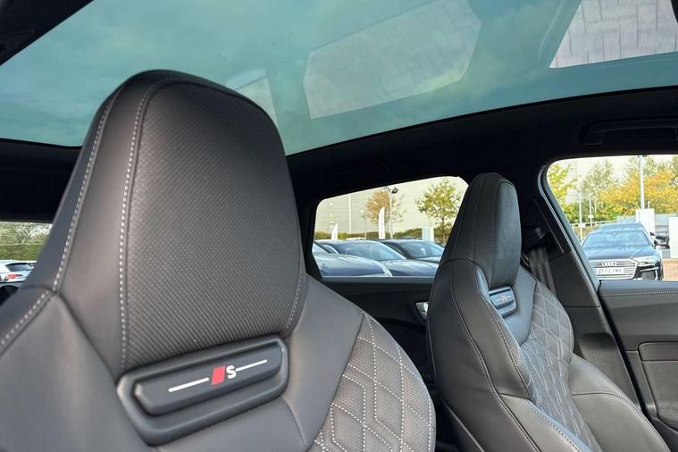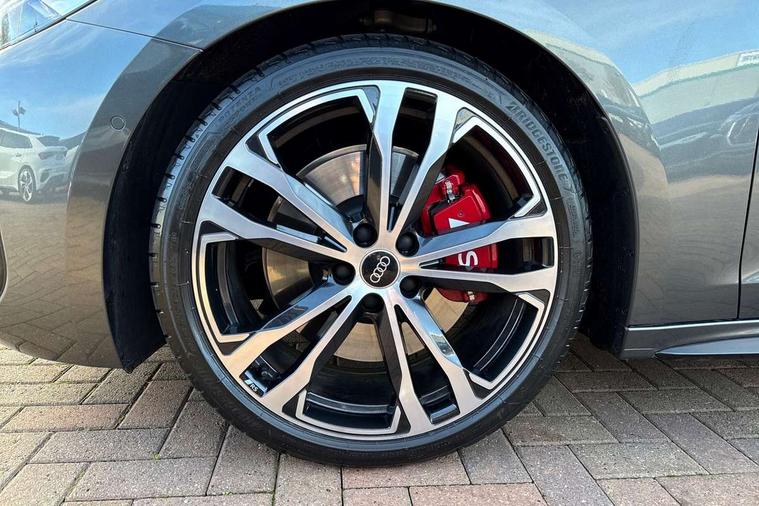 Adaptive cruise assist plus with steering intervention, Advanced driver attention and fatigue montior, Audi application store, Audi assistant, Audi connect emergency call and service, Audi drive select, Audi smartphone interface, Audi virtual cockpit plus with 11.9" OLED colour display, Automatic start/stop system with coasting functionality, Camera based traffic sign recognition, Garage door opener, Intersection assist, Lane change assistant with exit warning system, rear cross traffic alert and rear turn assist, Lane departure warning with emergency assist, MMI 10.9" front passenger touch display, MMI navigation plus with high resolution 14.5" OLED touchscreen colour display, Park assist plus, Parking system plus with 360 display, Progressive steering with servotronic, Swerve assist and turn assist, Top view camera, Traffic sign based speed limiter, Quattro with sport differential, S sports suspension with damper control lowered by 20mm, 2 USB-C ports in both the front and rear, DAB digital radio reception, Smartphone compartment with wireless charging, Aluminium window trims, Auto dimming rear view mirror, Black door handles, Black roof rails, Dark chrome-plated tailpipe trims, Digital OLED tail lights including communication light, Door mirrors - electrically adjustable, heated, folding and auto dimming on both sides, Front and rear electric windows, Front door sill trims with aluminium inlays, illuminated with 'S' logo, Headlight cleaning system, High beam assist, LED daytime running lights, LED third brake light, Matrix LED headlights with eight light signatures selectable via the MMI or the myAudi app, Panoramic glass roof with switchable transparency, Privacy glass, Rear and side windows with heat insulating glass, Rear side wing doors, Rear wash/wipe, Red S rhombus badging with S lettering on rear, S bumpers, radiator grille and diffuser in titanium matt black and diffuser insert in matt silver, White rhombus logo projection light in exterior mirrors, Windscreen with acoustic glazing, 3 rear headrests, 3 seat rear bench, 3 spoke leather steering wheel with multi-function buttons with touch control, flattened on top and bottom, with S badging and contrast stitching, 3-zone automatic climate control, 40:20:40 split folding rear seat bench with centre armrest and cup holders, Comfort front centre armrest, Electric steering wheel adjustment, Electrically adjustable front seats, Front and rear floor mats, Front sport seats plus with integrated headrest and S embossed logo, Headlining in black cloth, Heated front and outer rear seats, Heated steering wheel, i-Size child seat mounting on the front passenger side and outer rear seats, i-Size and top tether on the outer rear seats, Luggage compartment lid, electrically opening and closing, Memory function for driver seat, Pearl Nappa leather upholstery, Pneumatically adjustable lumbar support, Single front passenger seat, Stainless steel pedals and footrest, Steering wheel grips in perforated leather and shift paddles, Ventilation seat and massage function for the driver and front passenger, Black styling package plus - A5, Sound and vision pack - A5, 3x3 point rear seat belts, Acoustic vehicle alerting system, Convenience key with safelock, Driver airbag, Electric child safety locks, First aid kit with warning triangle and vests, Front emergency brake assist, Front passenger airbag, Front passenger airbag deactivation, Hill hold assist, Occupant detection in rear seat area, Proactive passenger protection system for front, sides and rear, Red brake calipers, Seat belt monitoring with rear seat occupant reminder, Side airbags in front and rear with head airbag system and front interaction airbag, Tyre pressure loss indicator, Anti theft alarm, Anti-theft wheel bolts, Keyless Go, Accent surfaces and control buttons in gloss black, Black dashboard with contrast stitching, Softwrap in Dinamica with contrast stitching, Upper and lower interior elements in dinamica microfiber, 20" 5 twin spoke design Audi Sport alloy wheels in metallic black and gloss turned finish, Tyre repair kit,