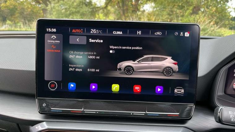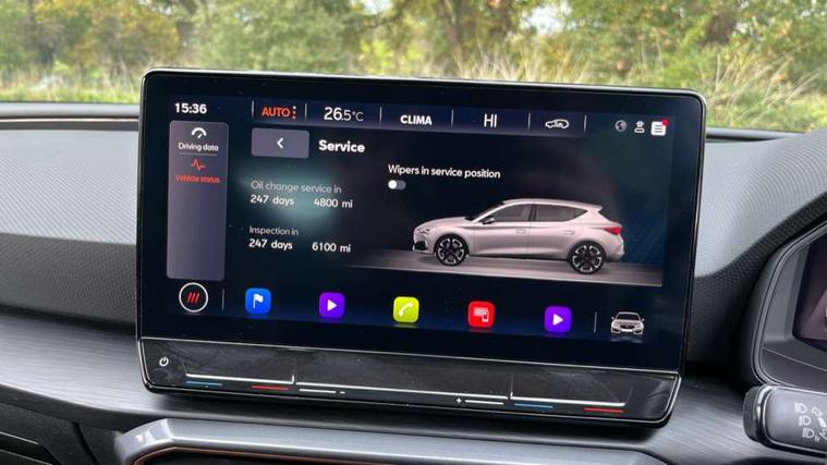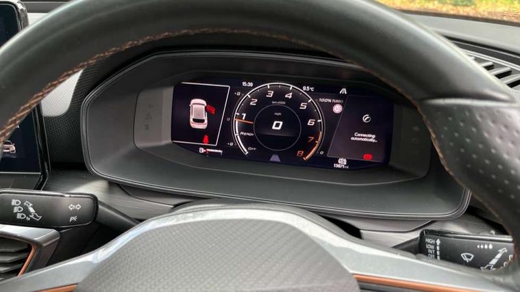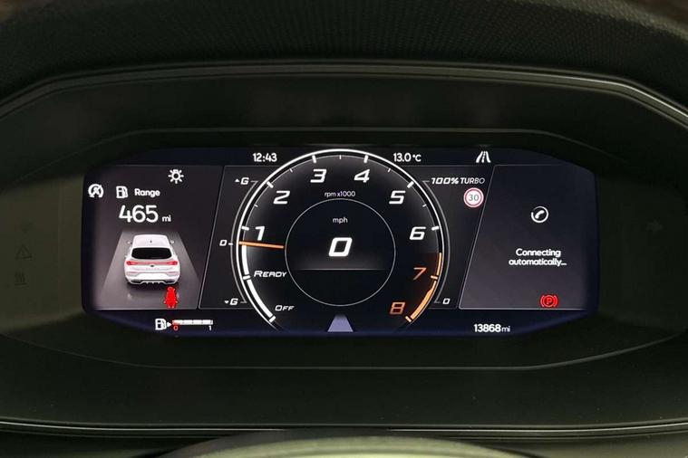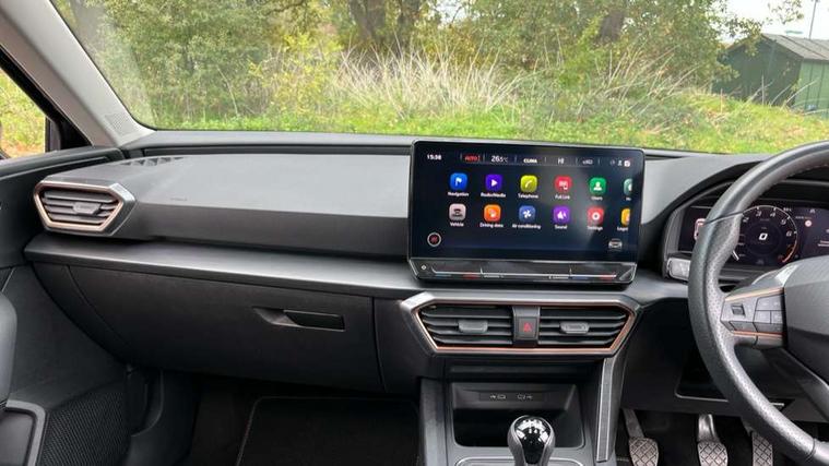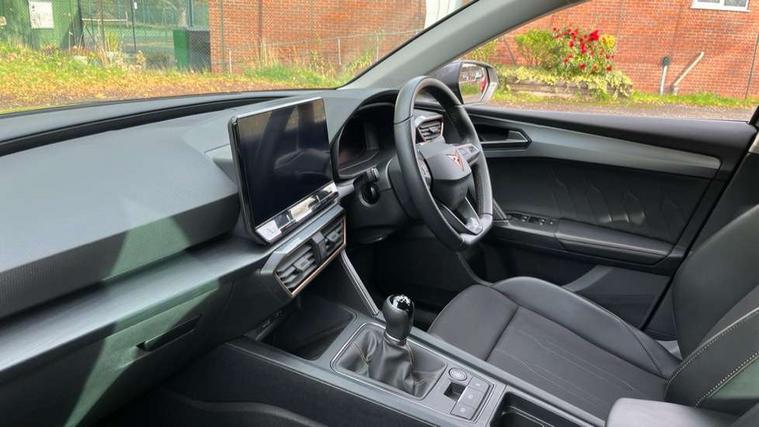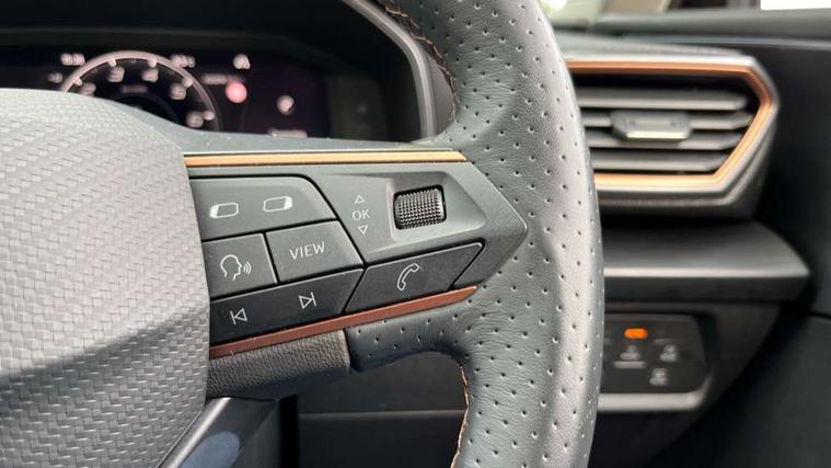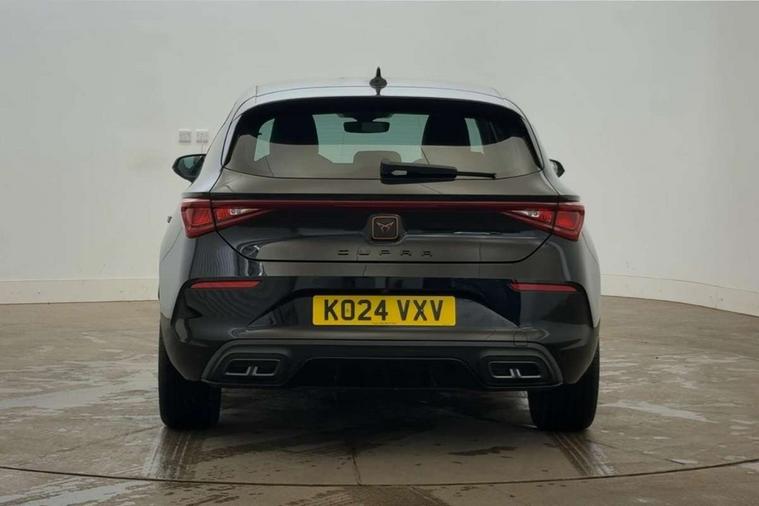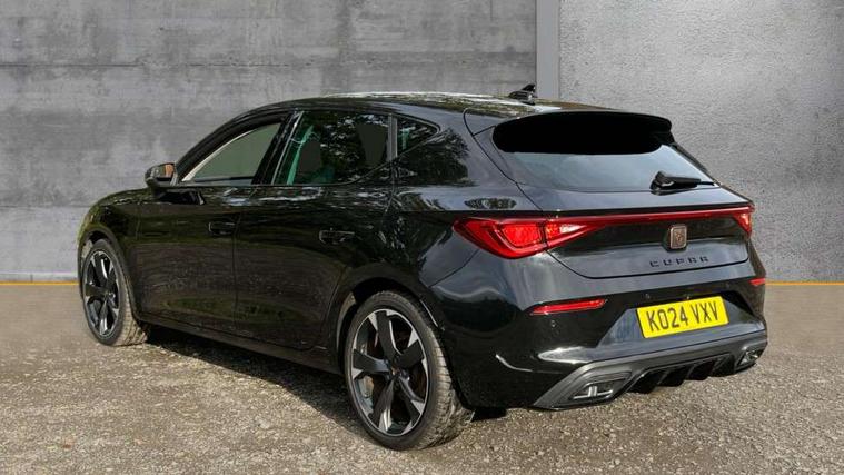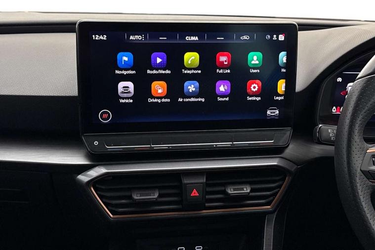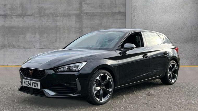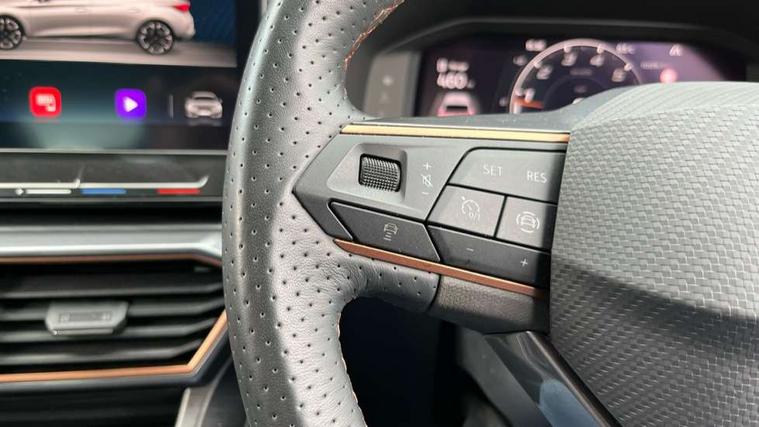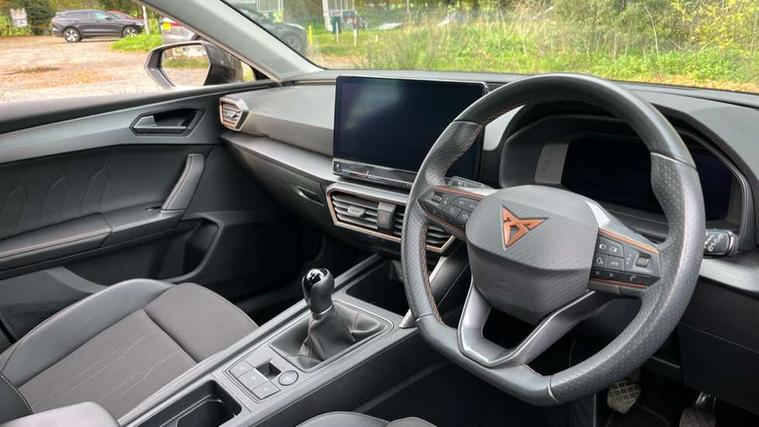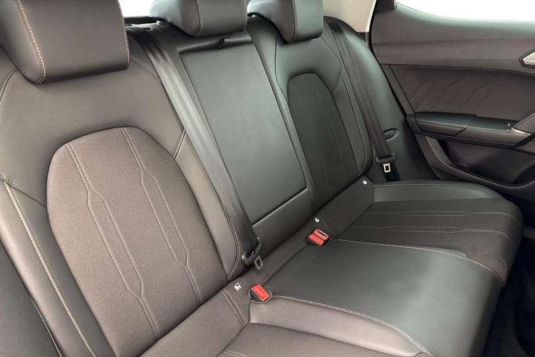 CUPRA drive profile selection with (Comfort/Sport/Individual), throttle response and gearshift mode, Digital cockpit, E-call, Electro mechanical speed sensitive power steering, Four x USB Type C ports (2 in front and 2 in rear), Front assist with forward collision warning braking reaction to vehicles, pedestrians and cyclists, Full link smartphone integration with Mirror Link, wireless Apple CarPlay and wired Google Android Auto, Lane assist, Lockable tailgate, Park assist (inc front/rear parking sensors), Rear view camera, RPM, trip computer, outside temp gauge, instrument light brightness, low fuel warning light, lights on reminder, gearshift indicator, Service interval indicator, Start/stop system with regenerative braking, Wireless phone charger, Sports suspension, Auxiliary input socket, Auto dimming rear view mirror, Body colour door handles, Body coloured bumpers, Cupra sports bumpers, Dark tinted rear windows, Electric front/rear windows, Electrically adjustable, heated and folding door mirrors, LED front fog lamps with cornering function, LED headlights with dynamic turn signals, tail lights, rear fog lights with rear coast to coast lighting, Rain sensing wipers, Rear diffuser with twin exhaust pipe on each side, Rear side wing doors, Rear wash/wipe, Separate daytime running light with automatic headlight control and coming home feature, Third brake light, 12v power supply in centre console, 3 seat bench in 2nd row, 5 headrests, 60/40 split rear bench seat with armrest, Ambient lighting with glovebox, footwell and single monocolour, Cupra Leather flat bottomed, perforated steering wheel, Driver/passenger manual seat height adjustment, Folding boot cover, Front and rear reading lights X 4, Front centre armrest, Front seats manual lumbar adjustment, Grey headlining, Height/reach adjust steering wheel, Illuminated interior front door sills, ISOFIX points in outer rear seats with top tether anchorage points, Jack and tool kit, PVC/Cloth upholstery with copper stitching, Single front passenger seat, Sports seats, Sunvisors with illuminated mirror, Three zone climate control, Media system plus with navigation pack - Leon Cupra, Safety and driving pack (M) - Cupra leon, 3 point seatbelts on all rear seats, ABS, Brake control system - ESC and brake booster, Child proof door locks, Cupra black brake calipers, Driver and front passenger airbags with front passenger airbag de-activation, front side and curtain airbags, Electronic parking brake, Extended safety system - seat belt tensioner, window closure and hazard lights, Hill hold control, Rear disc brakes, Seat belt reminder for front and rear seats, Tiredness recognition system, Tyre pressure monitoring system, Anti theft alarm system with interior monitoring in cab, backup horn and towing protection, KESSY Advanced - Keyless start, keyless entry, Locking wheel bolts, Chrome and copper interior detailing, 18" Machined sport black and silver alloy wheels with 92Y tyres,