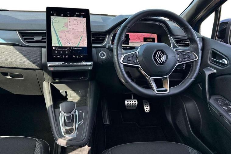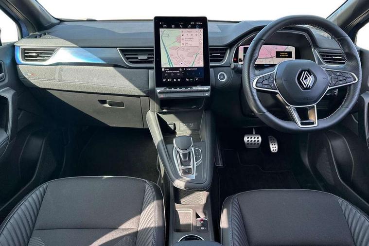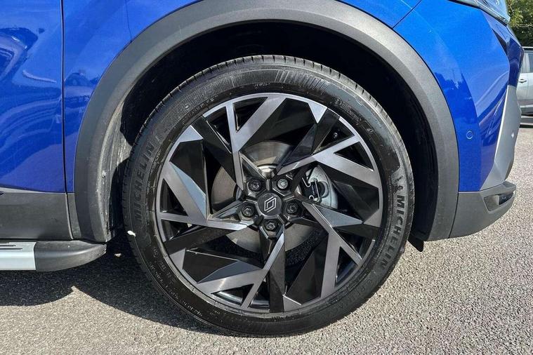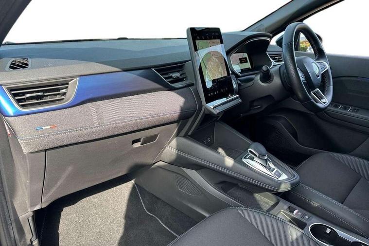 10.25" digital driver display, 10.4" OpenR link touchscreen with with built in Google Automotive Services and navigation, 2 front USB-C ports, 2 rear USB-C ports, Adaptive cruise control with speed limiter, Driver attention alert system, Driver drowsiness alert system, Eco mode, Emergency lane keep assist including solid line, oncoming traffic and road edge detection, Front and rear parking distance sensors, Gear change indicator, Lane departure warning system, Multisense with 3 driving modes + 8 ambient lighting colours, Rear view camera, Renault automatic emergency assist, Side parking sensors, Traffic sign recognition with over speed prevention, Trip computer, Variable assistance power steering, Wifi smartphone integration compatible with Apple CarPlay and Android Auto, Wireless phone charger, DAB radio with Bluetooth, Auto dimming rear view mirror with light and rain sensor - frameless, Automatic front wipers with rain sensors, Automatic headlights, Automatic high/low beam, Body colour door handles, Body coloured bumpers, Body coloured door mirrors, Chrome around front air deflectors, on front wing deco element and window lining, Dark tinted glass in rear windows and tailgate, Day time running light, Diamond black contrasting roof, Drivers one touch window with anti-pinch feature, Electrically folding door mirrors, Front and rear electric windows, Full LED front and rear lights, Gloss black window frame, Heated door mirrors, Heated rear windscreen, LED high level brake lights, LED turn indicators on door mirrors, Longitudinal roof bars, Rear fog lights, Rear side wing doors, Rear wiper, Shark fin antenna, 12V Accessory socket, 2 front roof LED lights and central rear roof light with 3 reading LED lights, 3 bench rear seats in 2nd row, Aluminium sports pedals, Automatic climate control with one touch demist function and air quality regulator, Driver and front passenger seat with electric height adjustment, esprit Alpine enveloping synthetic leather/cloth upholstery, Esprit alpine interior styling, Flying console for auto transmission, Front head restraints, Glovebox, Heated front seats, Heated steering wheel, Heating system with pollen filter, Height/reach adjust steering wheel, ISOFIX child seat fixing points on rear outermost seats, Middle console with armrest and storage, Modular boot floor, Rear air vents, Rear head restraints, Rear seats - 1/3:2/3 foldable sliding bench, Single front passenger seat, Sunvisor with mirror and light, Synthetic leather steering wheel, 3 rear seatbelts, ABS+EBA, AEBS - active emergency braking system, Approaching vehicle sound for pedestrians, Distance warning alert, Driver and front passenger and 3 rear passengers seatbelt reminder, Driver and front passenger, side, head and curtain airbags, Driver height adjustable seat belt, Electric parking brake with auto hold function, Electronic stability control, Front dash warning indicator in case of heavy braking, Front driver and passenger side airbag deactivation, Hill start assist, Passenger airbag deactivation system, Rear door and window child locking function for rear door, Tyre pressure warning light, Anti drill door locks and locking fuel cap, Central door locking, Deadlocking system, Hands free keycard with push button and start/stop function, RAID (Renault Anti-Intruder Device) automatic door locking, Black soft touch dashboard, 19" esprit Alpine Elixir alloy wheels,