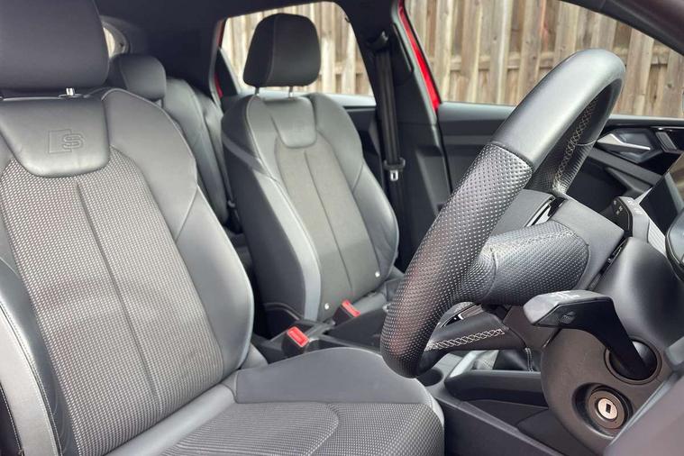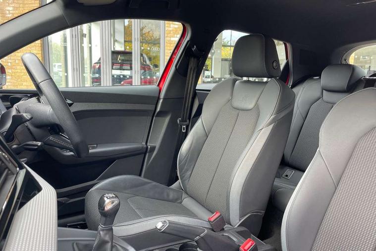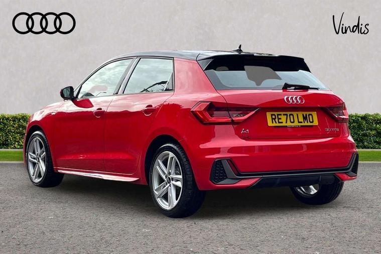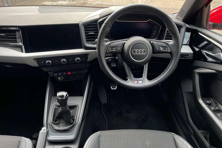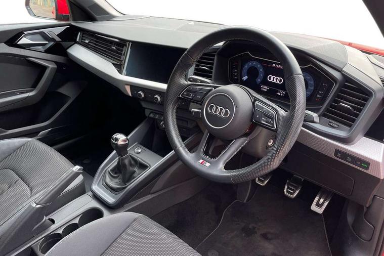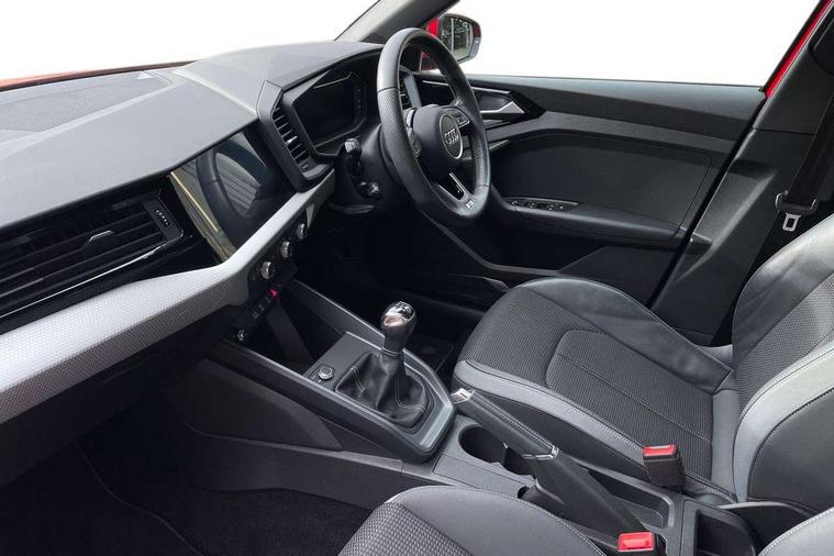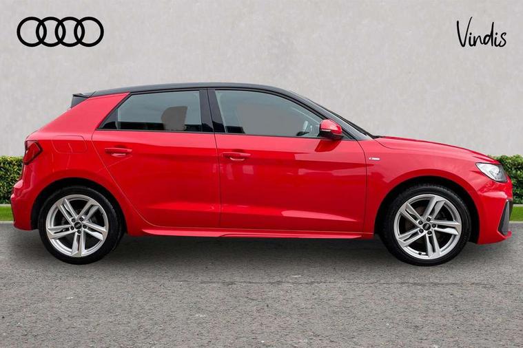 10.25" Digital instrument cluster display classis style instrument dials + speed, odometer, time, outside temperature, telephone menu + fuel level warning, Audi connect safety emergency and service including E-call, Audi drive select - power steering assistance + engine, Audi smartphone interface with connect compatible smartphone via USB directly MMI display + Nav, music, third party apps controlled via MMI controller, Automatic start/stop system, Bluetooth interface, Cruise control, Driver's information system, Electromechanical power steering, Lane departure warning system, Service interval indicator, Speed limiter, Voice control system, Washer fluid level indicator, Sports suspension, 1 x SDXC card reader, 2 x USB type C connection points, DAB Digital radio, MMI radio plus with 8.8" colour MMI display screen and MMI touch, Auto dimming rear view mirror, Body coloured door mirrors, Door sills with aluminium inlays and S Line logo, Electric front and rear windows, Electrically adjustable, heated, folding door mirrors with integrated LED side indicator, Front side air inlets in grained matt black and C frame in titanium black, Heat insulating glass windscreen and side windows, Heated rear windscreen, LED headlights with LED rear lights + dynamic rear indicators + headlight adjustment and high beam, turning light + LED daytime running lights, Radiator grille and rear diffuser in matt titanium black, Radiator protective grille frame in matt aluminium silver, Rain and light sensors, Rear fog lights, Rear wiper, S line badges on front wings, Side front spoiler lips in grained matt black, 12V socket in centre console with two cup holders, 3 rear seats with headrests, 40:60 Split folding rear seat or folded fully, Black cloth headlining, Driver and passenger seat with manual height adjust with forward and backwards adjustment, Front and rear black floor mats with contrast stitching in fine silver, Front head restraints, Height and reach adjustable steering wheel, ISOFIX child seat mounting for front passenger and outer rear seats including top tether attachment point of outer rear seats, Leather gear knob with aluminium trim, Luggage compartment light with front and rear reading lights, Manually adjustable lumbar support in front seats, Stainless steel pedals, LED interior lighting pack - A1, Luggage compartment pack - A1, S line exterior styling pack - A1 Sportback, 3x3 point rear seatbelts, Audi pre-sense front with pedestrain and cyclist recognition, Brake assist function, Driver and front passenger airbag with front side and head airbags, Electronic Stability Control including ABS, EBD, ASR and EDL, Front and rear seatbelt reminder, Front passenger airbag deactivation switch, Hill hold assist, Seatbelt height adjustment for front seats, Seatbelt monitoring, Tyre pressure warning light, Warning triangle and first aid kit, Anti theft alarm, Anti theft wheel bolts and loose wheel warning, Immobiliser, Remote central locking with 2 foldaway keys, Aluminium trim for control switches, air vents and digital instrument cluster, Silver grey inlays polygon structure in diamond paint finish, Structured grey accent areas including air vents, door handle recesses and centre console in quartz paint finish,
