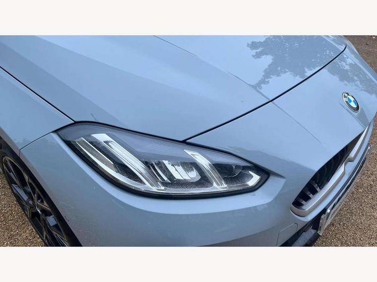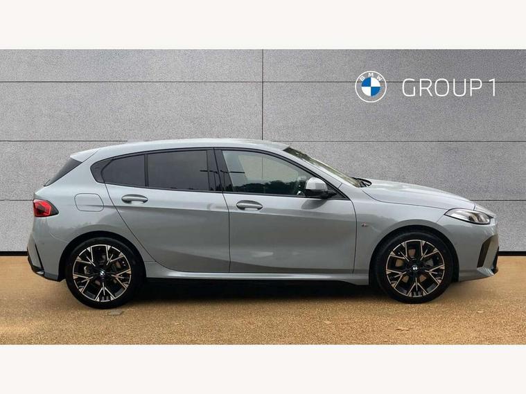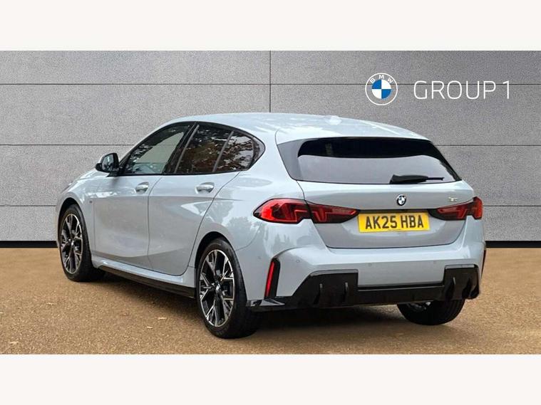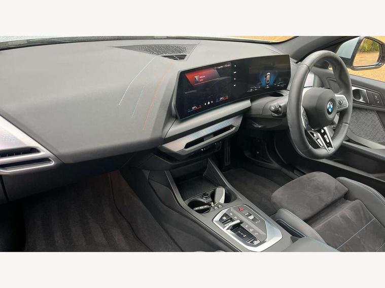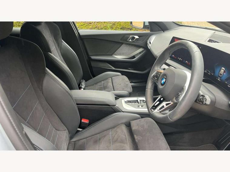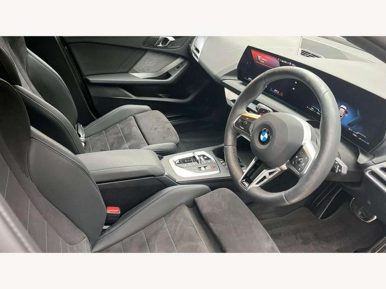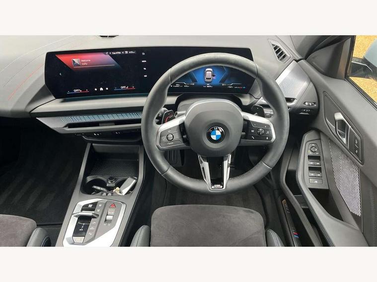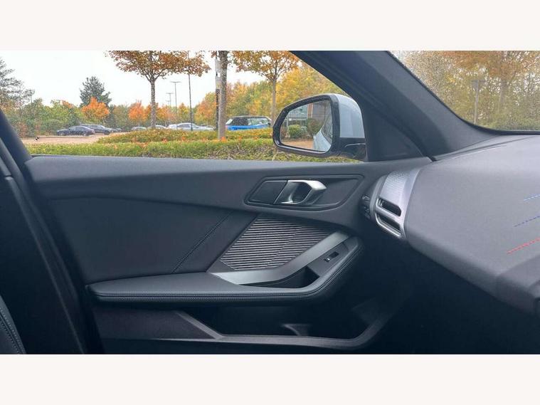 Active guard plus, Attentiveness assist, Bluetooth / WiFi interface for wireless connection of mobile terminal devices and audio streaming, BMW ConnectedDrive online services, BMW Live cockpit plus, BMW Teleservices, Check Control warning system for monitoring of lights and door/luggage compartment open warning, Eco pro mode, Electric power steering with Servotronic steering optimised at all speed ranges, Evasion assistant, Flat airvents in instrument panel with adjustable slats, Front and rear parking sensors, Front axle single joint with specific axle kinematics to minimise drive influences on steering + provide increased rigidity agile driving behaviour, Gearshift time display in manual mode, Integrated owners handbook, Left turn warning with brake function, My modes (Personal / Efficient / Sport), Oil sensor for level and grade, On board computer, Optimum shift indicator, Park assist including reversing assistant, lateral parking aid and reversing assist camera, Personal e-SIM, Personal Profile, Pull away assistant, Rigidly mounted rear subframe - Multi link construction with separate spring / damper configuration and excellent driving characteristics, Speed limit Info including no-overtaking indicator, Speed limiter, 49 litre fuel tank, Aluminium lightweight construction, Anti roll bar front and rear, Balancer shaft, Double VANOS twin scroll turbocharging system, Drive Performance Control, Electronic differential lock, Electronic selector lever, High precision injection, M Adaptive suspension, Petrol Particulate Filter, Steptronic transmission with double clutch, Twin tube gas filled shock absorbers with degressive characteristic curve, VALVETRONIC engine management, DAB Digital radio, Auto dimming rear view mirror, Automatic windscreen wipers and automatic headlight, Body colour door handles, Body colour mirror caps, Body colour roof trims, Chrome 'M' logo side designation, Chrome exhaust twin tailpipes round 90mm in left, Chrome kidney grille frame with Satin Aluminium struts, Direction indicator side lights in exterior mirrors, Electrically adjustable exterior mirror with mirror adjustment switch on drivers armrest and aspheric on driver side, convex on passenger side, Exterior M sport design elements, Fading support, Folding side mirrors with auto dimming/folding wing mirrors with auto dimming, Follow me home headlights, Front and rear bumper system with replaceable deformation elements, Front and rear electric windows with open and close fingertip control, anti trap facility and comfort closing, Front bumper panel with M specific design in vehicle colour with inserts in black high gloss, Front door sill finishers in black plastic with M designation in metallic look, Green tinted heat protection glazing, Heated rear window, High gloss black exterior mirrors, High gloss shadowline window frame, Recess cover mirror frames and B/C pillar embelisher trim, High level third brake light, Integrated front windscreen with washer jets, LED daytime running lights, LED eyebrow turn indicators, LED front fog lights, LED Headlights, Lightweight engineering, M identification on the sides, Matt black air guide grilles, Matt black wheel arch trim, Model badge on tailgate right, Nearside reverse light in rear light cluster, Preparation for high beam assistant, Rain sensor, Rear bumper panel with M-specific design in vehicle colour with inserts in black high gloss, Rear fog lights, Rear side wing doors, Rear window wiper, Shark fin antenna, Side sill covers with M specific design in body colour, Trailer stabilisation logic, Visible VIN plate, Welcome lighting, 12V power socket in front centre console with blanking plug, 3 rear seat head restraints, 3 seat bench in 2nd row, 3 spoke sports leather steering wheel with black leather and stitching, pearl chrome decorative finish, specific M Badge, Anthracite front and rear floor mats, Anthracite headlining, Black boot net with lashing eyes, Cargo function on 2nd seat row, Child seat ISOFIX attachment for two outer rear seats and front passenger seat with anchorage points, Conditioned based service, Driver and front passenger backrest net on rear, Driver and front passenger seat heating, Driver side folding compartment in instrument panel, Folding rear clothes hook, Footrest and pedals in black plastic, Four grab handles integrated in roof lining, Front and rear door pockets with bottle holders, Front and rear side armrest integrated into door trim, Front armrest with storage compartment, Gearshift paddles on steering wheel, Glove compartment, Height adjustable front head restraints, Luggage compartment for bag hooks on left and right, foldable luggage compartment liner and four lashing eyelets, Manual adjust steering wheel, Multi-function controls for steering wheel, Rear seat backrest with manual 60:40 split folding with 3 top tether clips integrated on rear of seat panels, Single front passenger seat, Storage compartment in centre console, Storage compartment in luggage compartment, Stowage of the parcel shelf in luggage compartment trim, Sun visors with vanity mirrors and insert tab, Two front centre console cupholders, Type C two USB ports in rear centre console, Upper retaining strap integrated into backrest rear panels, Connected pack professional - 1 Series, Interior lights pack - 1 Series, M Sport exterior styling aerodynamics pack - 1 Series, 2 tone horn, 3 point seatbelts on all seats, front pyrotechnic belt tensioners, stopper and belt force limiters, rear coded belt buckles, Airbags - Front driver/passenger, front and rear curtain head protection, front side, manual deactivation of front passenger airbag, Anti lock braking system (ABS) with brake assist, BMW emergency call, Brake drying, Braking readiness, Child proof locking system in rear door, Comfort modes, Cornering brake control, Crash sensor activating of airbags, Unlocking doors, hazard warning lights, interior light, safety battery terminal, Driver and front passenger seat belt sec