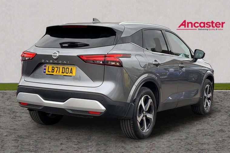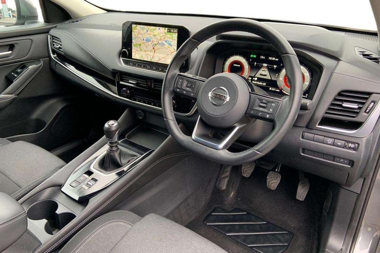 7" High definition full colour TFT screen combimeter, Blind spot warning, Drive modes (sport, normal, eco), Electric speed sensitive power steering, Emergency and breakdown call, Front and rear parking sensors, Idle stop/start system, Intelligent Cruise control (ICC), Intelligent driver alert system, Intelligent forward collision warning, Intelligent lane intervention, Lane departure prevention, Lane departure warning system, Maximum speed limiter, Moving object detection, Push button starter, Rear cross traffic alert, Traffic sign recognition with legal speed adjustment, Trip computer, 6 speakers, AM/FM audio system with DAB, Bluetooth audio streaming, Front USB connections (Type-A and Type-C), Rear USB charging only ports (Type-A and Type-C), 3rd brake light, Auto dimming rear view mirror, Auto rear wiper when reversing, Body colour mirror caps, Body coloured door handles, Bodyside mouldings, Chrome side window finisher, Electric auto folding door mirrors, Electrically adjustable and heated door mirrors with LED turn indicator, Follow me home headlights, High beam assist, Intelligent auto headlights, LED daytime running lights, LED Headlights, LED rear lights, One touch front and rear electric windows with remote opening and closing, Partially body coloured bumpers, Privacy glass, Rear reversing light (bulb lighting), Rear roof spoiler, Rear styling plate, Shark fin antenna, Splash free rain sensing wipers, Super UV and infrared cut glass, Three blink turn signal, 12v power socket in dashboard and luggage, 2 way electrical driver lumbar adjustment, 2x Rear coat hooks, 3 rear headrests, 4 grab handles, 6 Luggage hooks - 4 on floor, 2 on side, 60/40 split folding rear seat, Ambient lighting around centre console, Centre console storage tray, Chrome interior door handles, Cloth monoform upholstery, Driver and front passenger sunvisors with illuminated vanity mirrors, Driver seat back pocket, Dual zone automatic climate control with pollen filter, Front centre console and armrest, Front cupholder, Front door with bottle holders, Glovebox with light, Hard trunk cover, Height adjustable driver's seat, Height adjustable front headrests, Leather shift knob, Leather steering wheel, Luggage board system, Luggage space lighting, Manually adjustable passenger (slide recline + lifter), Multifunction steering wheel, Passenger seat back pocket, Rear armrest with 2 cupholders, Rear door bottle holders, Soft PVC kneepad, Steering wheel switches, Sunglasses holder, Tilt/telescopic adjustable steering wheel, Two rear isofix child seat anchorage points with top tether, Welcome light and console tray ambient lighting, Connectivity Pack - Qashqai, 3x3 point rear seatbelt pretensioners + load limiters, ABS, ESP, EBD and brake assist, Active brake limited slip, Auto hold function, Child locks on rear doors, Curtain and front side, far side airbags, Driver and passenger airbags, Driver, passenger and 2nd row rear seat belt reminder, Electronic parking brake, Front seatbelt pretensioners + load limiters, Height adjustable front seatbelts, Hill start assist, Intelligent blind spot intervention, Intelligent front emergency braking with pedestrian, cyclist recognition and junction assist, Intelligent rear automatic braking, Tyre pressure monitoring system, Vehicle dynamic control, Capless fuel filler, Engine immobiliser, Nissan i-key, Remote central door locking with deadlocking, Thatcham Cat.1 alarm, 18" diamond cut alloy wheels,