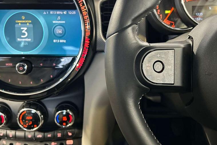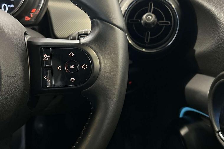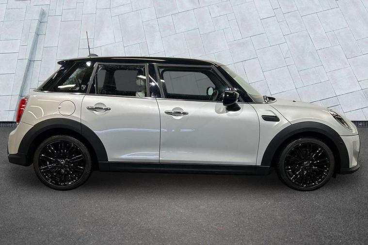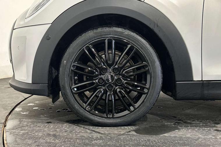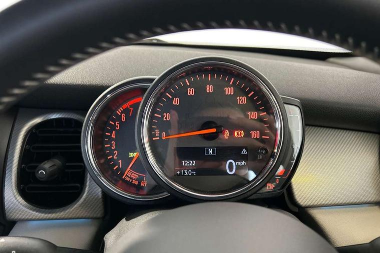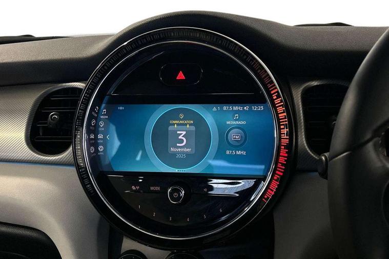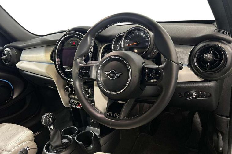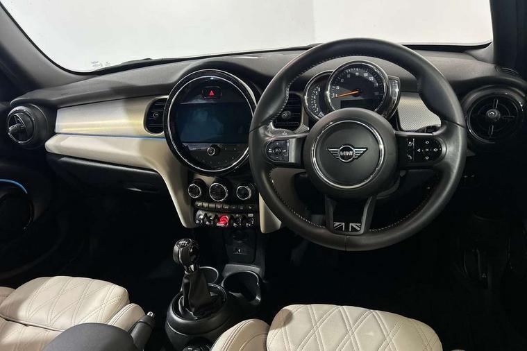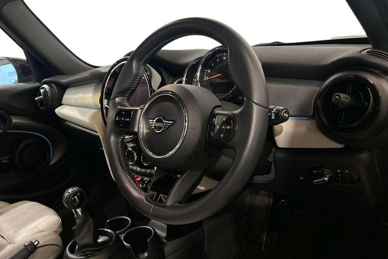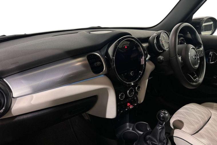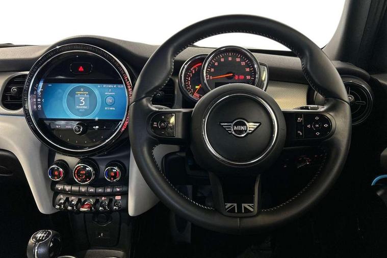 Apple CarPlay, Automatic start/stop function with brake energy recuperation, Compatible mobile phone bluetooth with audio streaming, Cruise control with brake assist, Electro-mechanical speed dependant steering assistance, Flexible car sharing preparation, Instrument cluster, MINI Driving Modes - centre toggle switch to control driving setting (sport, mid and green), Mini E-call, MINI TeleServices, On board computer, Rear park distance control, Service interval indicator, 6 Speed manual transmission including gear change indicator display, Double Vanos system, Fully variable valve control, High precision injection, Performance Control, 8.8" touchscreen with LED ring, FM tuner and DAB digital radio, 3rd brake light, Automatic headlight activation switch, Body colour fuel filler cap, Chrome line exterior - radiator grille bars, tailgate handle, lower front grille grating and rear central fog-light, Dynamic brake lights, Electric front+rear windows, Heated rear window, Heated windscreen washer jets, LED headlight with closed ring and daytime driving lights, Metal door sill strips with MINI imprint, Model logo Cooper on right of tailgate, Rain sensor window wipers, Rear fog lights, Rear LED lights with union jack design, Rear side wing doors, Rear window wiper, Side scuttle panel with integrated indicator, Sun/heat protection glass, White indicator lenses, 12V Accessory socket in centre console, 3 seat bench in 2nd row, 4 lashing eyes in luggage compartment, 60/40 split folding rear seat, Anthracite headliner including grab handles and clothes hooks, Carbon black colour line - Knee roll and door armrest, Chrome interior highlights, Chrome line interior - air vents, gear lever base, door handles and speakers in doors, Cupholders, Front and rear head restraints, Front and rear isofix with front passenger airbag deactivation, Front and rear velour floor mats, Glove compartment, Height and length steering column adjustment, Interior lighting with 12 different colours across the dashboard, underneath door bezel with illuminated laser-engraved design on central display, Leatherette gearshift lever and handbrake gaiters, LED reading lights, vanity mirror lights, front foot well light and spotlight on front seats, Manual air conditioning, Mechanical seat adjustment - forward/back & backrest for front seats and driver seat height adjust, MINI yours badge on exterior pillar, Multifunction steering wheel, Single front passenger seat, Storage compartments in doors, Sunvisors with vanity mirrors, Walknappa leather steering wheel with grey seam and MINI Yours badge on Piano Black lower steering wheel spoke, 3 point seatbelts on all five seats, 6 Airbags - front, side, head and seat belt tensioners, Anti-lock braking system (ABS), Child locks on rear doors, DSC - Dynamic Stability Control, Front and rear disc brakes, Hill start assist, Single tone fanfare horn, Tyre pressure monitoring system, Alarm system with tilt sensor, monitoring doors, bonnet interior and tailgate, Electronic vehicle immobiliser, Start/stop toggle with keyless go, Tool kit,