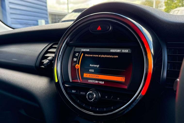 Acoustic seat-belt warning, Basic bluetooth function with USB audio, Brake fluid level warning light, Brake pad wear indicator warning light, DTC - Dynamic traction control, Exterior temperature gauge, Intelligent emergency call, MINI TeleServices, Oil level indicator, On board computer, Push button starter, Service interval indicator, Servotronic PAS, Electronic differential lock, Auxiliary input socket, DAB digital radio module, 2 speed wipers+intermittent wipe, Aluminium tailgate, Anti dazzle mirror, Anti trapping/one touch open close front windows, Body coloured bumpers, Chrome bezels around rear lights and headlights, Chrome door handles, Chrome exhaust tailpipe, Chrome grille surround, Chrome plated trim on bottom edge of window, Chrome strip on lower grille, Electric front windows, Electric rear windows, Electrically adjustable door mirrors, Flared wheel arches, Follow me home headlights, Green tinted heat insulating glass, Heated door mirrors/heated windscreen washers, Heated rear window with auto timer, High gloss black tailgate, LED fog lights, LED rear lights, Rear wiper, Side scuttles, White indicator lights, 2 rear head restraints, 4 boot load lashing points, 4 way manually adjustable passenger seat with height, reach, tilt, backrest and headrest, 6-way manually adjustable driver's seat, Active carbon filter, Adjustable front seats backrest, Air recirculation system, Auxiliary socket in centre console storage compartment, Centre console storage, Driver's seat height adjuster, Driver/passenger sunvisors, Front and rear cupholders, Front head restraints, Front passenger grab handle, Gear/selector and handbrake in artificial leather, Internal chrome door handles, Isofix child seat preparation, Luggage compartment lighting, Multifunction steering wheel, Reach + rake adjustable steering column, Rear grab handles, Rear storage trays, Split folding rear seats, Storage compartments in doors, Toolkit in luggage compartment, 3 point seatbelts, 3x3 point rear seatbelts, ABS/EBD, ASC+T, Cornering brake control (CBC), Crash Sensor - activates hazard/interior lighting + unlocks doors, Driver and passenger airbags, Driver/front passenger side airbags, DSC - Dynamic Stability Control, Fuel cut off safety device, Head airbags, Hill start assist, Passenger airbag deactivation system, Seatbelt pretensioners, Tyre pressure warning, Ventilated front disc brakes, Drive away door locking, Locking wheel bolts, Remote central locking/doors+fuel cap+tailgate, Second remote key, Thatcham category 1 alarm + immobiliser,