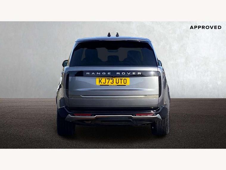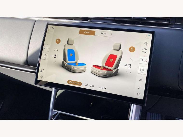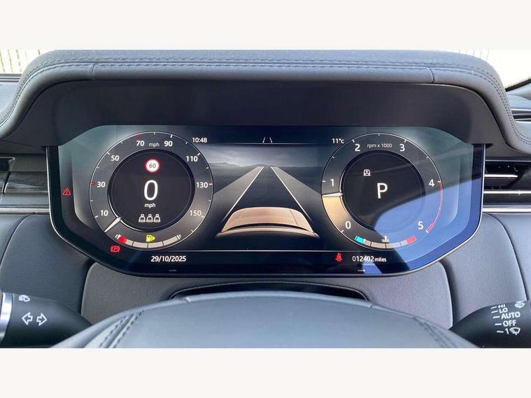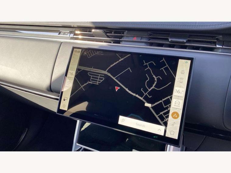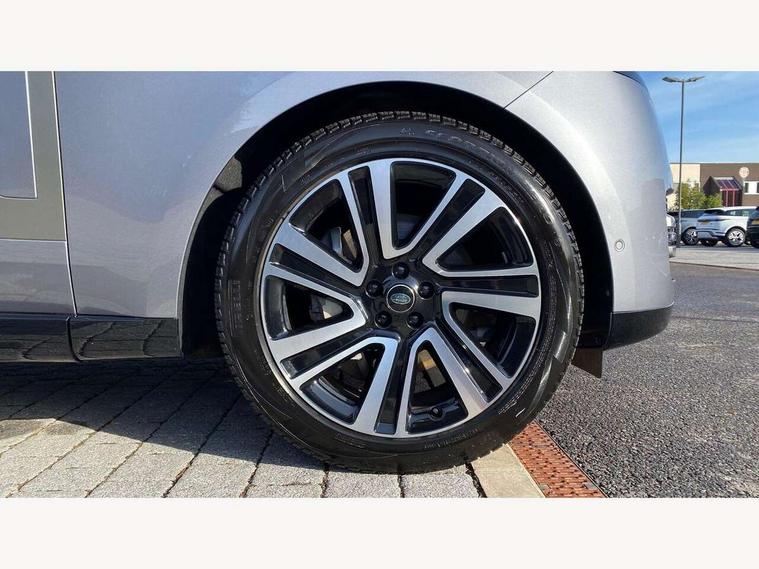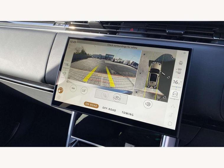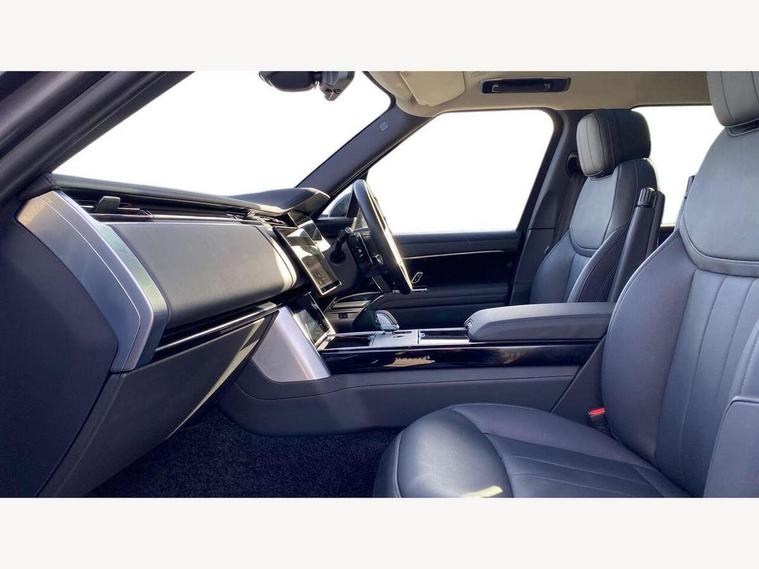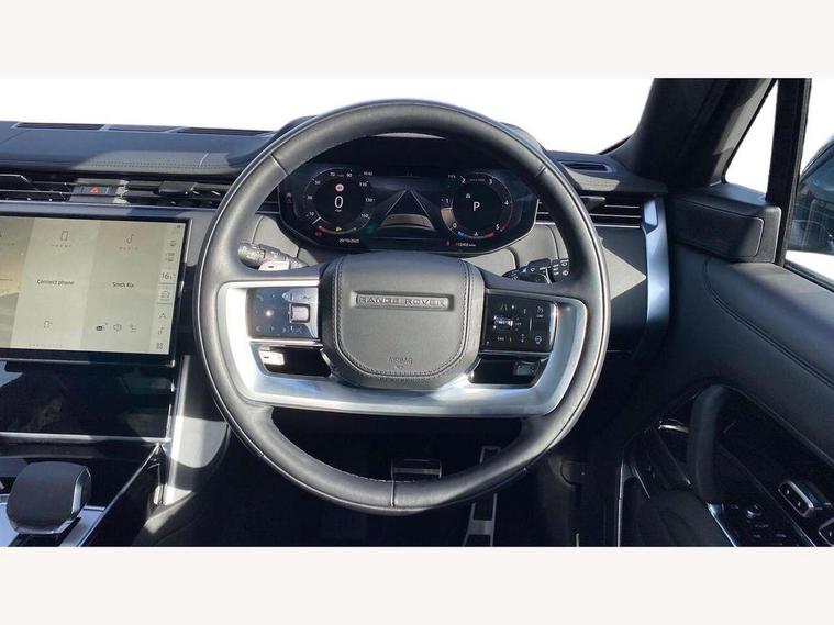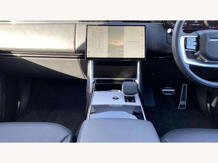 13.1" Touchscreen, 3D surround camera inc frwd traffic detection, vehicle clearance guidance, 3D view, clearsight ground view, manoevure light, 360 parking aid, wade sensing, All Terrain Info Centre, All wheel steering, Android Auto, Apple car play, Blind spot assist, Bluetooth connectivity streaming, Driver condition response, Eco mode, Electric power assisted steering (EPAS), Emergency call service, Front and rear parking aid, Head up Display, Interactive driver display, Lane keep assist, Rear collision monitor, Rear traffic monitor, Remote, Traffic sign recognition with adaptive speed limiter, Wi-Fi Enabled with data plan, Wireless device charging with phone signal booster, 8 speed automatic transmission, Active damper technology system, Adaptive dynamics, All terrain progress control, All Wheel Drive (AWD), Automatic access height, Terrain Response 2 Auto, Twin speed transfer box, Digital Audio Broadcast radio-DAB, Pivi pro including smart settings, Connected navigation pro, nuance speech, USB socket, Acoustic laminated windscreen, Animated directional indicators, Automatic headlights, Automatic levelling headlights, Centre high mounted stop light, ClearSight interior rear view mirror, Electric windows with one touch open/close and anti trap, Engine cover, Flush deployable exterior door handles, Front and rear recovery eyes, Front fog lights, Headlamp power wash, Heated rear window, Heated washer jets, LED tail lights, No badges, Power fold, auto-dimming, heated door mirrors with approach lights, Rain sensing windscreen wipers, Rear boot, Rear fog lights, Rear side wing doors, Side repeater indicators in mirror, Trailer stability assist, Winter wiper park position, 12V power sockets, 3 seat bench in 2nd row, Air quality sensor, Bright metal pedals, Cabin air purification pro, Cabin lighting, Customer configurable single point entry, Driver and passenger front seat armrests, Easy boot loading, Ebony Carpet, Front and rear cupholders, Front and rear grab handles, Front head restraints, Gearshift paddles, Heated steering wheel, Hook in load space, Loadspace light, Luggage tie down in loadspace, Multifunction steering wheel, Rear centre armrest, Rear head restraints, Rear ISOFIX, Single front passenger seat, Soft close doors, Twin blade sunvisors with Illuminated vanity mirrors, Upper and lower glovebox, Online pack with data plan - Range Rover, 3x3 point rear seat belts, Anti-lock braking system (ABS), Brake hold function, Cornering brake control (CBC), Customer configurable autolock, DSC - Dynamic Stability Control, Electronic brake force distribution, Electronic parking brake, Electronic traction control, Emergency brake assist, Emergency braking, Front airbags with passenger seat occupant detector, Front side airbags, Hill descent control, Hill launch assist, Illuminated seat belt buckles, Low traction launch, Occupant protection assist, Power operated child locks, Roll stability control, Tyre pressure monitoring system (TPMS), Immobiliser, Intrusion sensor and alarm, Keyless entry, Locking wheel nuts, Remote central locking, Noble chrome controls,