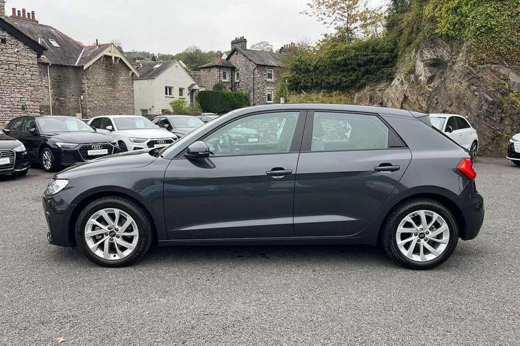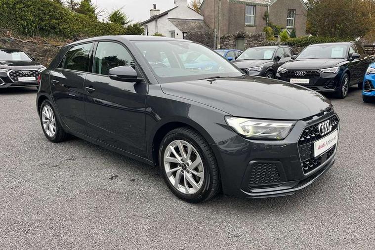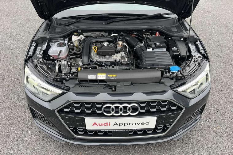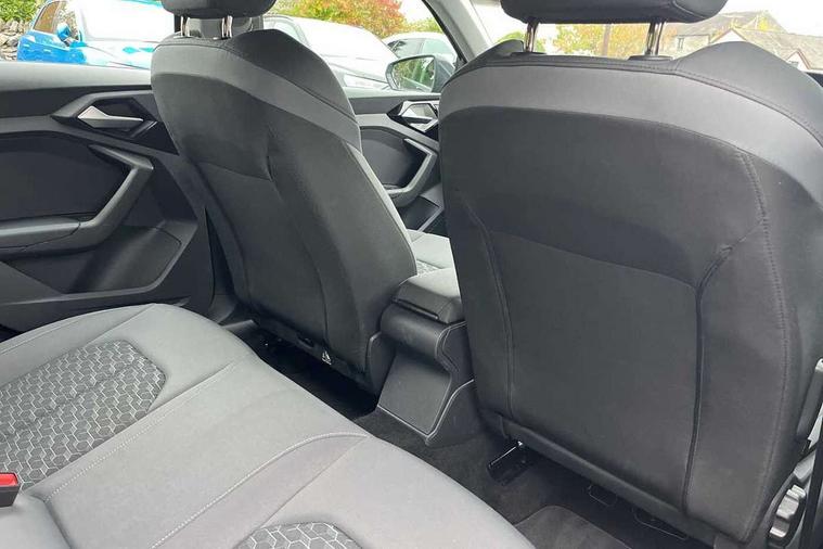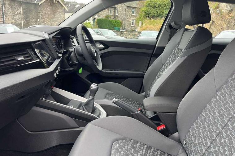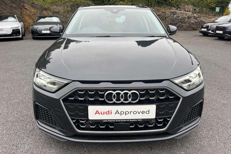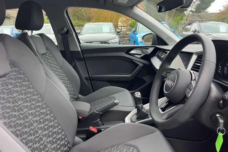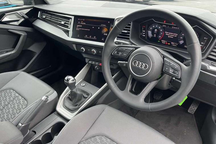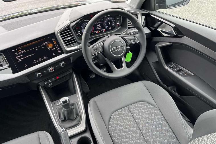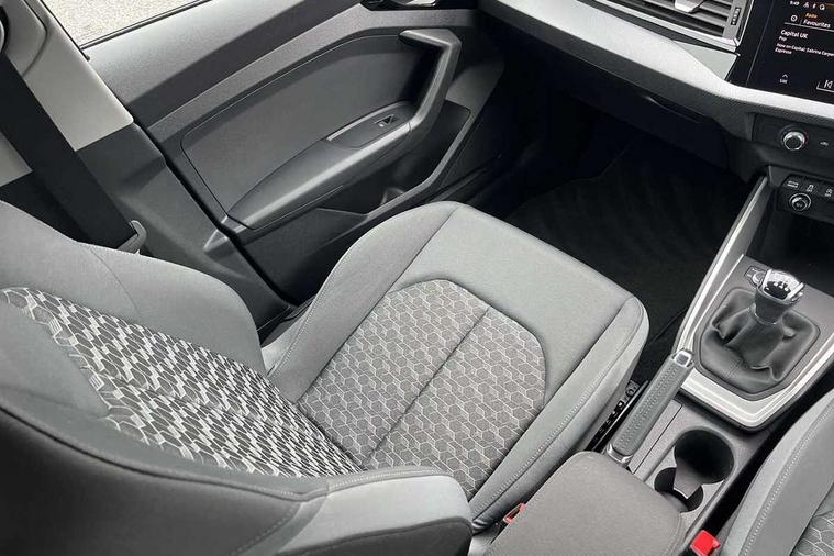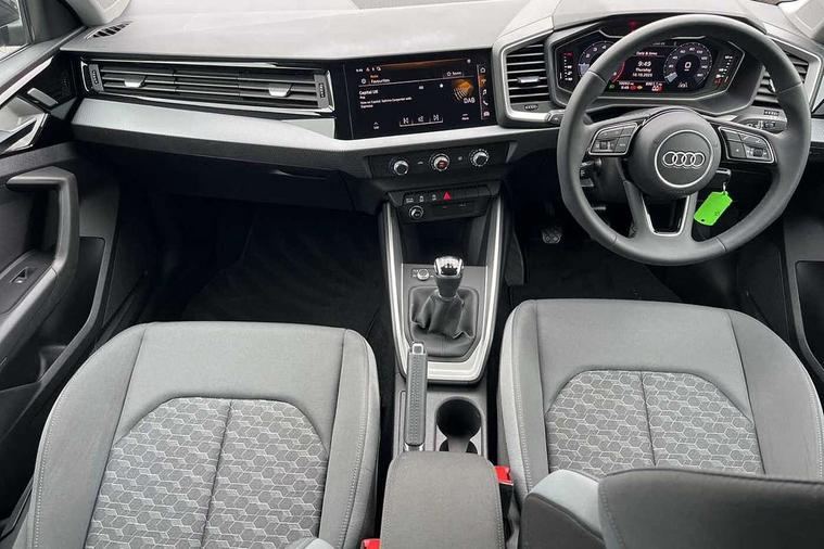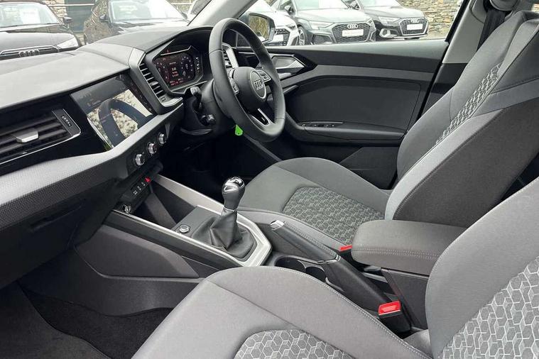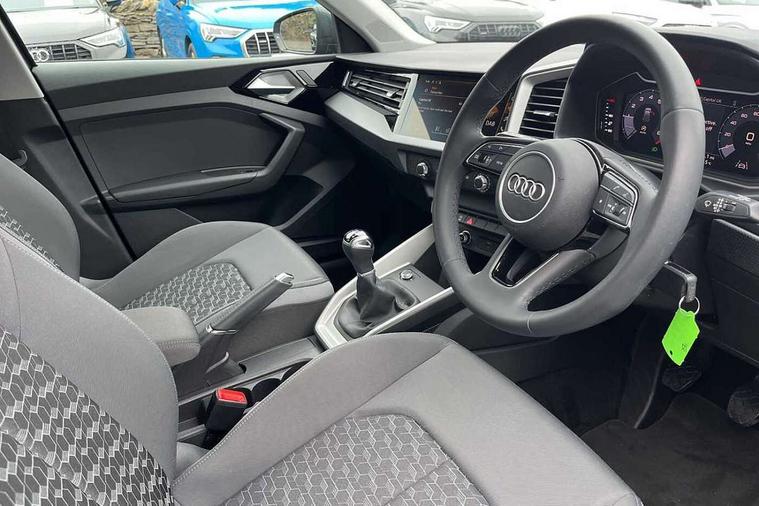 10.25" Digital instrument cluster display classis style instrument dials + speed, odometer, time, outside temperature, telephone menu + fuel level warning, Audi drive select - power steering assistance + engine, Audi smartphone interface with connect compatible smartphone via USB directly MMI display + Nav, music, third party apps controlled via MMI controller, Automatic start/stop system, Bluetooth interface, Cruise control, Driver's information system, Electromechanical power steering, Emergency e-call, Lane departure warning system, Rear parking sensor, Service interval indicator, Speed limiter, Voice control system, Washer fluid level indicator, Dynamic suspension, 2 x USB type C connection points, 6 passive loudspeakers, DAB Digital radio, MMI radio plus with 10.1" colour MMI display screen and MMI touch, Auto dimming rear view mirror, Body coloured bumpers, Body coloured door mirrors, Electric front and rear windows, Electrically adjustable, heated, folding door mirrors with integrated LED side indicator, Front side air inlets in grained matt black and C frame in anthracite black, Heat insulating glass windscreen and side windows, Heated rear windscreen, High level LED brake light, LED headlights with LED rear lights + dynamic rear indicators + headlight adjustment and high beam, turning light + LED daytime running lights, Radiator grille and rear diffuser in matt anthracite black, Radiator protective grille frame in matt aluminium silver, Rain and light sensors, Rear fog lights, Rear side wing doors, Rear wiper, Side front spoiler lips in grained matt black, 12V socket in centre console with two cup holders, 3 rear seats with headrests, 3 seat bench in 2nd row, 3 spoke leather multifunction plus steering wheel, 40:60 Split folding rear seat or folded fully, Black front and rear floor mats, Door sill trims with aluminium inlay, Driver and passenger seat with manual height adjust with forward and backwards adjustment, Front head restraints, Front passenger seat, Grey cloth headlining, Height and reach adjustable steering wheel, ISOFIX child seat mounting for front passenger and outer rear seats including top tether attachment point of outer rear seats, Leather gear knob with aluminium trim, Leather handbrake grip, Luggage compartment light with front and rear reading lights, Manual air conditioning, Manually adjustable lumbar support in front seats, Novum cloth upholstery with front sport seats, Luggage compartment pack - A1, 3x3 point rear seatbelts, Audi pre-sense front with pedestrain and cyclist recognition, Brake assist function, Driver and front passenger airbag with front side and head airbags, Electronic Stability Control including ABS, EBD, ASR and EDL, Front passenger airbag deactivation switch, Hill hold assist, Manual rear child locks, Seatbelt height adjustment for front seats, Seatbelt monitoring, Tyre pressure warning light, Warning triangle and first aid kit, Anti theft alarm, Anti theft wheel bolts and loose wheel warning, Immobiliser, Remote central locking with 2 foldaway keys, Aluminium trim for control switches, air vents and digital instrument cluster, Black dashboard, Silver grey accent areas including air vents, door handle recesses and centre console in diamond paint finish, Slate grey inlays polygon structure in fine paint finish,