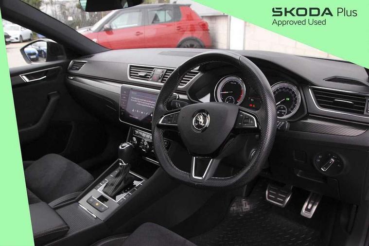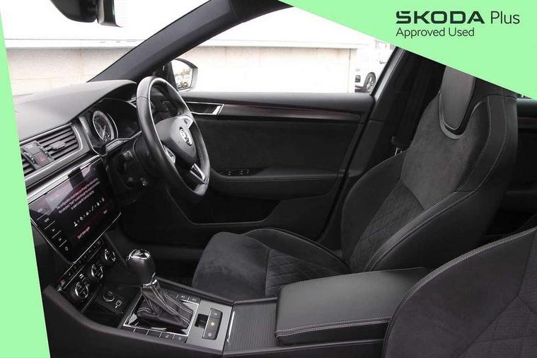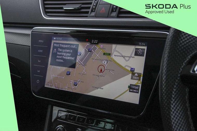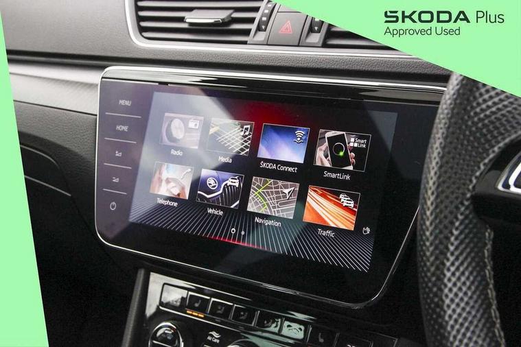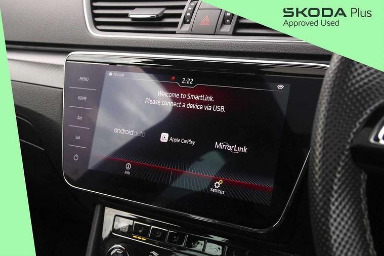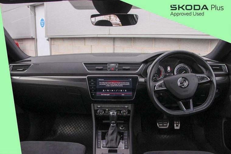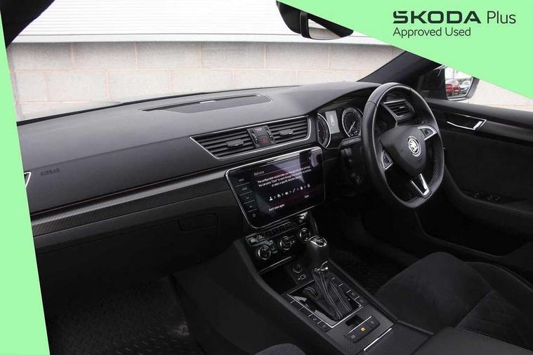 3D map navigation, Adaptive cruise control, Bluetooth system, CareConnect and Emergency Call, Columbus satellite navigation with 9.2" touch screen and integrated Wi-Fi, Driver fatigue sensor, Electromechanical power steering, Front assist with pedestrian protection, Multifunction colour trip computer, Progressive dynamic steering, Smartlink+ including apple carplay, android auto and mirror link connectivity, Voice control system, XDS+, 2 USB ports, Bolero radio with 8" touchscreen display, DAB Digital radio, DVD Drive, In-car voice enhancement, SD card slot, Aero front windscreen wipers with intermittent function, Auto dimming rear view mirror, Black rear badge, Body colour door mirrors and handles, Cornering front fog lights, Electrically adjustable heated and folding door mirrors with memory function, Front and rear electric windows, Full matrix LED headlights with AFS LED DRL integrated with headlight washer LED rear lights(High function), dynamic indicators and lighting animation, Gloss black exterior door mirrors with sports styling including front grill, side strip and window surrounds, Gloss black grille surround with gloss black rib elements, Gloss black roof rails, Gloss black strip between rear lights, Privacy glass, Rain sensor, Rear exhaust diffuser styling elements, Sportline badging, 12v power point in centre console, Alcantara/leather upholstery, Black roof headlining, Carbon optic interior elements, Electric auxiliary air heater, Front armrest with storage box, Height adjustable front and rear head restraints, Ice scraper, Illuminated and cooled glovebox, Illuminated luggage compartment, Interior lights with control switches, Isofix child seat fittings on outer rear seats, One umbrella compartments in driver door with one umbrella in drivers door, Overhead glasses storage compartment, Rear centre armrest with cupholders, Split folding rear seats, Textile floor mat set, Ticket holder on A Pillar, LED interior light pack - Superb, LED package plus - Superb, 3 rear seatbelts, 7 airbags - Front, front side, curtain, driver's knee airbag with front passenger deactivation switch, Driver and passenger seatbelts with warning light, Electronic parking brake, ESC including ABS, EBV, MSR, ASR, EDS, HBA, DSR, RBS, CBC, multi-collision brake (MKB) and Auto hold, Hill start assist, Tyre pressure monitor, Alarm with interior monitoring tilt sensor and back up horn, Electronic engine immobiliser, Keyless entry and start/stop including rear doors, Remote central locking with SAFE system, Carbon interior trim,