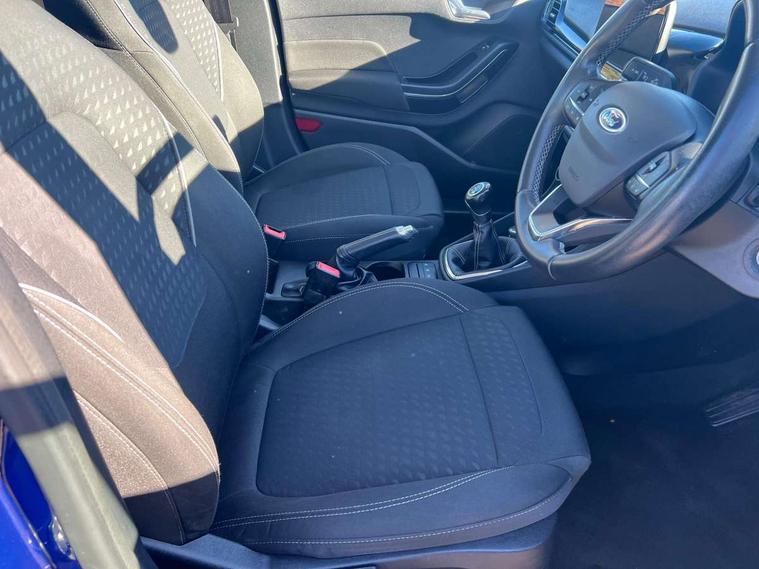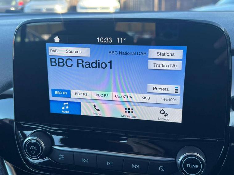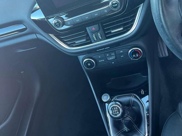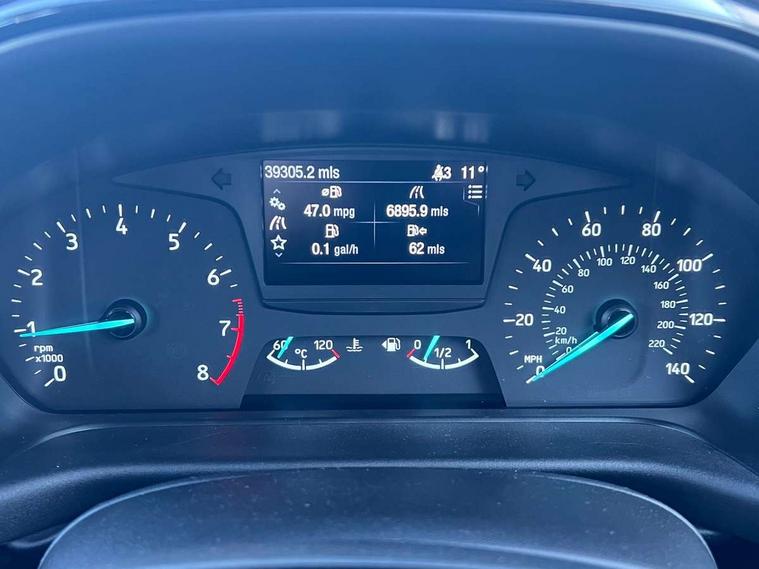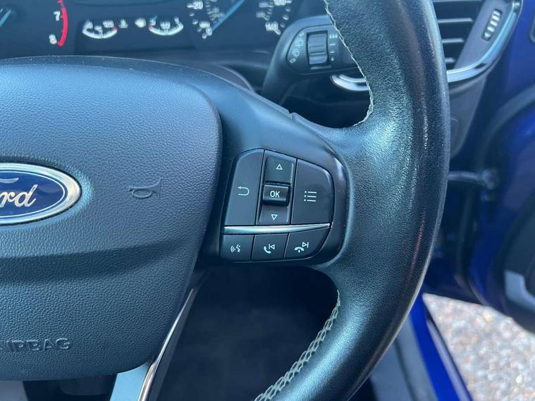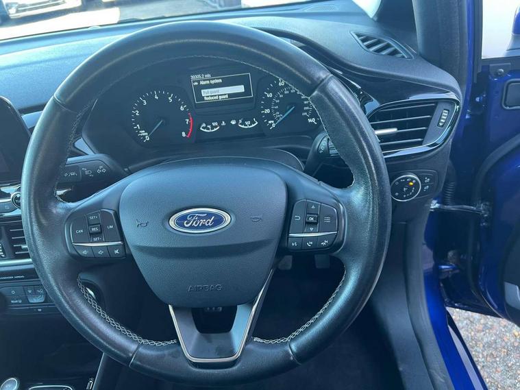 Bluetooth system, Electric power steering, Lane keep assist, Speed limiter, SYNC Emergency Assistance, Trip computer, Auxiliary input socket, Ford SYNC 3 DAB radio, apple car play and android auto with voice control, Steering wheel mounted controls, USB connection, Automatic headlights, Body colour bumpers, Body colour door handles, Body colour electric adjustable heated door mirrors, Body colour rear spoiler, Chrome beltline trim, Cornering front fog lights, Electric front windows/one touch facility, LED daytime running lights, Quickclear heated windscreen, Rear wiper, Tinted glass, Upper front grille chrome surround, 12V Accessory socket in centre console, 3 spoke leather steering wheel, 60/40 split folding rear seat, Adjustable head restraints, Ambient lighting, Boot carpet, Chrome inner door handles, Cloth upholstery, Footwell illumination, Front map reading lights, Front seat and rear pockets, Height adjustable driver's seat, Illuminated glovebox, Leather gear knob, Leather trimmed handbrake handle, Load area light, Luxury woven headliner, Manual air conditioning, Overhead console with sunglasses holder, Pollen filter, Rake/reach adjustable steering wheel, Rear centre head restraint, 3 point seatbelts on all rear seats, ABS+EBA, Curtain airbags, Driver and passenger airbags, Drivers knee airbag, ESP + traction control, Front passenger airbag deactivation, Front side airbags, Hill start assist, Seatbelt warning, Tyre pressure monitoring system, Immobiliser, MyKey system, Remote central locking, Thatcham Cat.1 alarm,