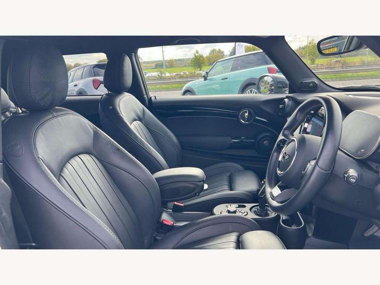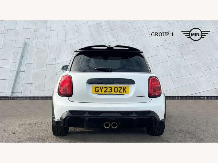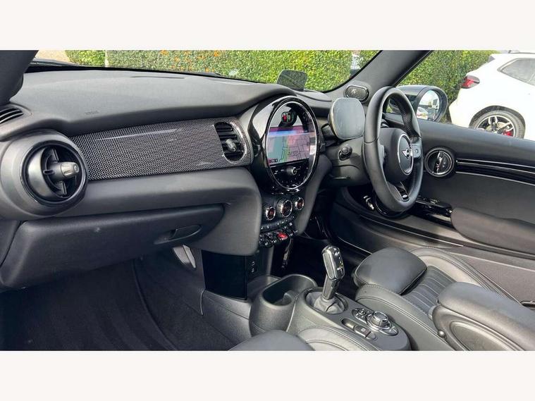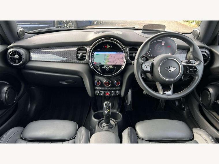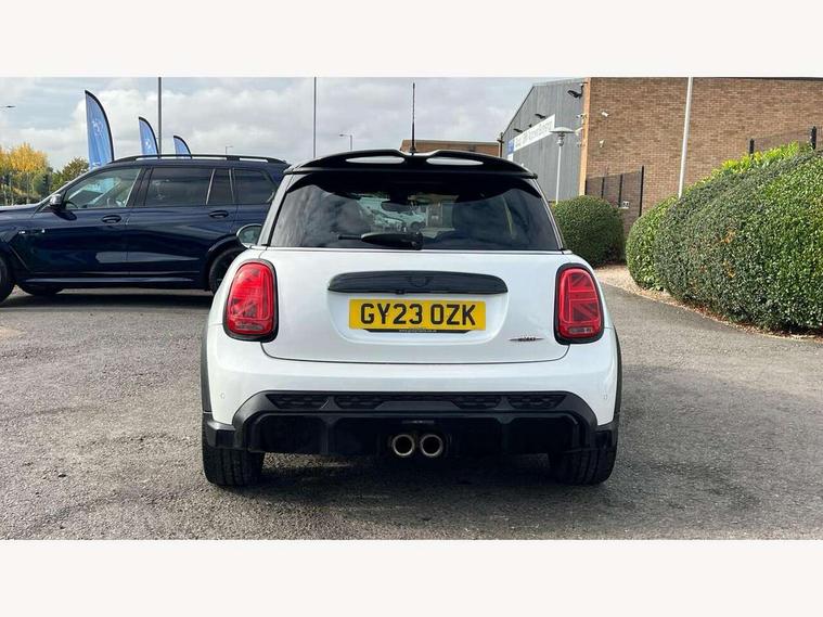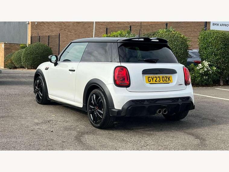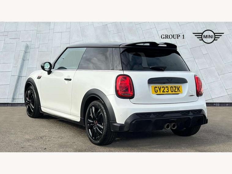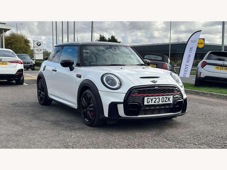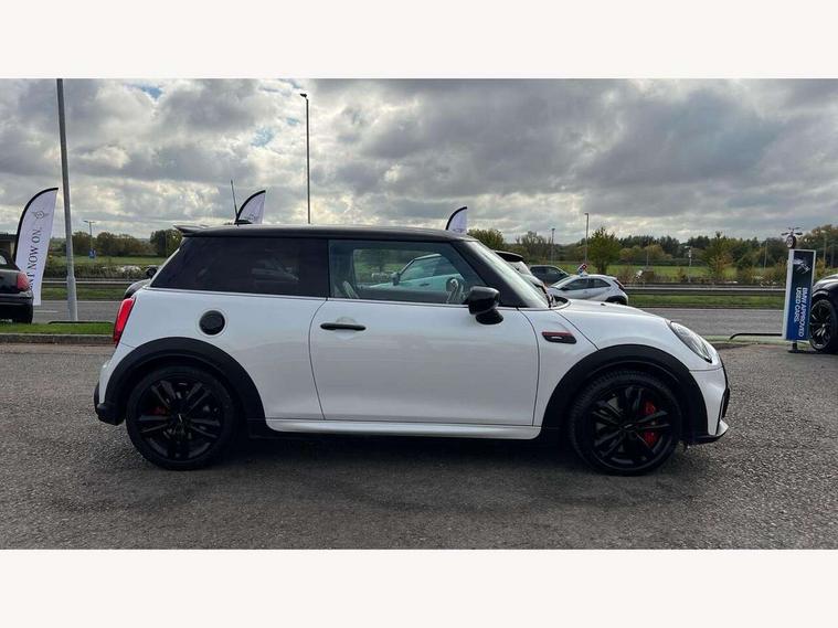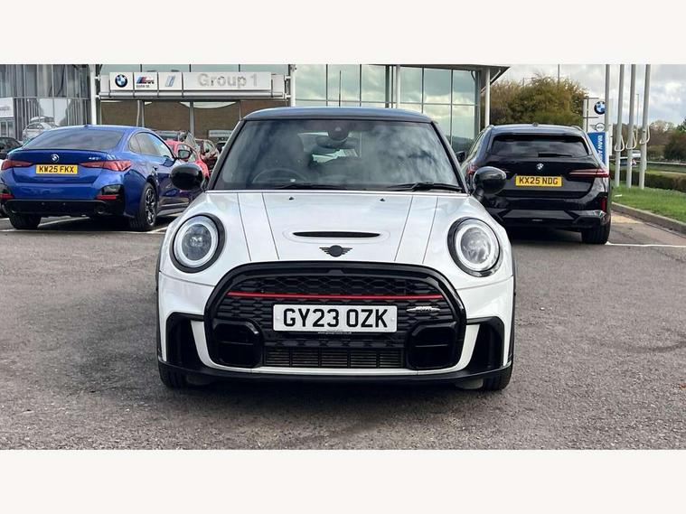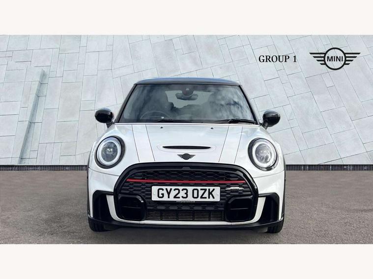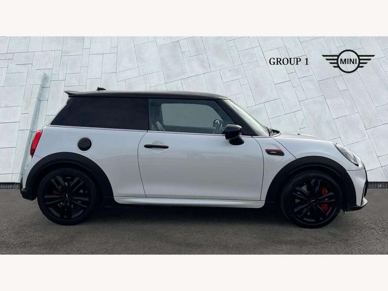 Apple CarPlay, Automatic start/stop function with brake energy recuperation, Compatible mobile phone bluetooth with audio streaming, Cruise control with brake assist, Electro-mechanical speed dependant steering assistance, Flexible car sharing preparation, Instrument cluster, MINI Driving Modes - centre toggle switch to control driving setting (sport, mid and green), Mini E-call, MINI TeleServices, On board computer, Rear park distance control, Service interval indicator, Double Vanos system, Eight speed steptronic sport transmission, with gearshift paddles, Fully variable valve control, High precision injection, Performance Control, 8.8" touchscreen with LED ring, FM tuner and DAB digital radio, 3rd brake light, Automatic headlight activation switch, Bonnet scoop, Dynamic brake lights, Electric front windows, Heated rear window, Heated windscreen washer jets, JCW Aerodynamic kit - Front and rear bumpers with sporty JCW styling and part-painted side sills with MINI John Cooper Works door sill finishers, John Cooper Works logo above an individual grille strut in Chilli Red, John Cooper Works rear spoiler, LED headlight with closed ring and daytime driving lights, Radiator grille piano black border with honeycomb structure in black matt, Rain sensor window wipers, Rear fog lights, Rear LED lights with union jack design, Rear window wiper, Side scuttle panel with integrated indicator, Side scuttle with MINI John Cooper Works logo in black high-gloss with red border, Sun/heat protection glass, Two central exhaust tailpipes with chrome finisher, White indicator lenses, 12V Accessory socket in centre console, 2 seat bench in 2nd row, 4 lashing eyes in luggage compartment, 60/40 split folding rear seat, Anthracite headliner including grab handles and clothes hooks, Carbon black colour line - Knee roll and door armrest, Chrome interior highlights, Cupholders, Front and rear isofix with front passenger airbag deactivation, Front floor mats in velour, Glove compartment, Height and length steering column adjustment, Interior lighting with 12 different colours across the dashboard, underneath door bezel with illuminated laser-engraved design on central display, JCW Sport seats with integrated headrests, adjustable thigh support and John Cooper Works logo, Leatherette gearshift lever and handbrake gaiters, LED reading lights, vanity mirror lights, front foot well light and spotlight on front seats, Manual air conditioning, Mechanical seat adjustment - forward/back & backrest for front seats and driver seat height adjust, Multifunction steering wheel, Passenger seat height adjuster, Rubberised stainless steel pedals, Single front passenger seat, Storage compartments in doors, Storage pocket on back of front seats, Sunvisors with vanity mirrors, Walknappa leather steering wheel with grey seam and John Cooper Works badge on Piano Black lower steering wheel spoke, Navigation pack without Apple Carplay - Mini Hatchback, Piano black exterior pack - JCW, 3 point seatbelts on all four seats, 4-piston fixed-calliper brakes front, 6 Airbags - front, side, head and seat belt tensioners, Anti-lock braking system (ABS), DSC - Dynamic Stability Control, Front and rear disc brakes, Red brake callipers with John Cooper Works logo, Single tone fanfare horn, Tyre pressure monitoring system, Alarm system with tilt sensor, monitoring doors, bonnet interior and tailgate, Electronic vehicle immobiliser, Start/stop toggle with keyless go, Tool kit,