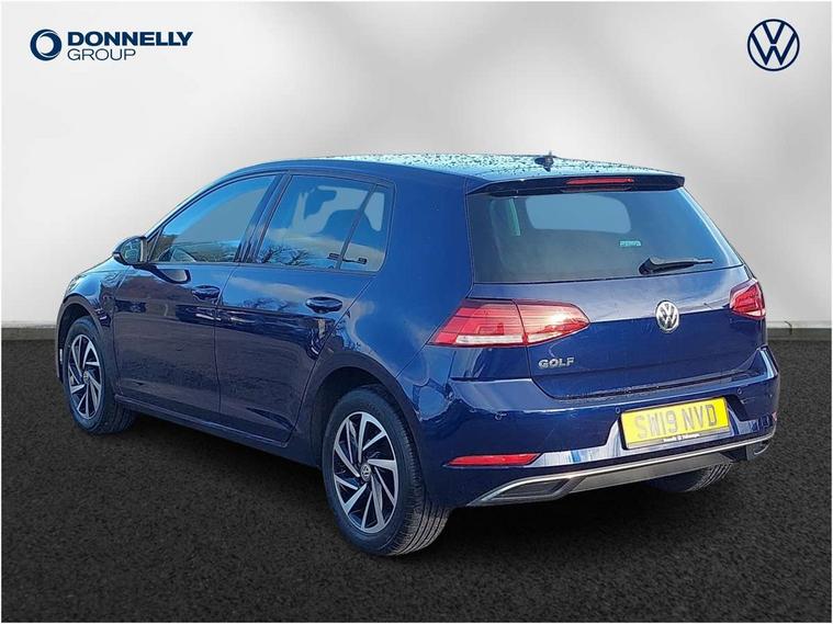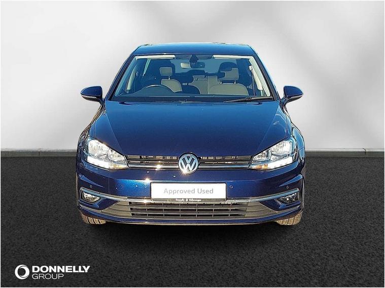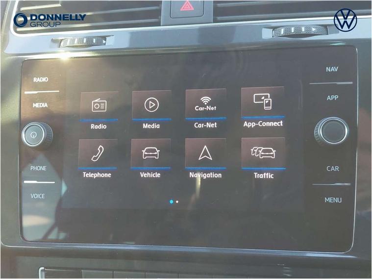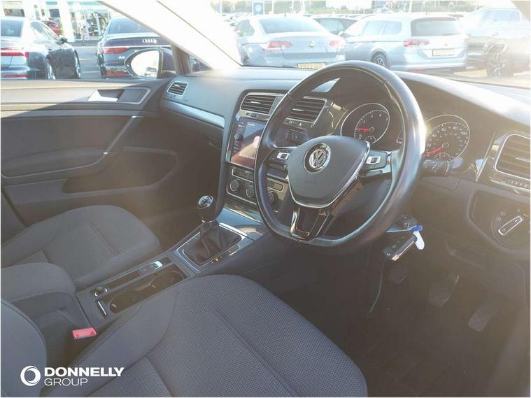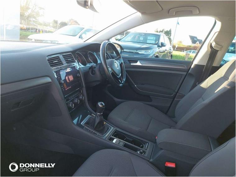 'Lights On' Reminder warning buzzer, ACC - Adaptive cruise control with front assist, forward collision warning, distance monitoring, city emergency brake and speed limiter, Bluetooth telephone and audio connection for compatible devices, Brake pad wear indicator warning light, Driver alert system, Driver profile selection, Driving Mode Selection with four preset modes - Eco, normal, sport or individual modes, Instrument cluster in white, Multifunction computer with visual gear change recommendation for fuel consumption, Power assisted speed sensitive electro-mechanical steering, Push tank flap, Speed limit display, Speedo, rev counter, electronic odometer, trip, service interval display, exterior temperature and fuel gauge, Stop/start system, Warning buzzer and light for front seatbelts unfastened, Battery regeneration during braking, XDS electronic differential lock, Composition media system, DAB Digital radio receiver, MP3/WMA compatability, Multi device interface (MDI) with USB connection, Personalisation 1.1 profile for media, Premium USB cable in choice of either Apple or Android smartphone compatibility, SD card slot, SMS Functionality, USB and SD card connectivity, Black front air intake and radiator grille with chrome insert, Black rear diffuser, Body colour bumpers, Body colour door handles, Body colour door mirrors with integrated indicators, Dusk sensor + automatic driving lights, Electric front windows, Electric rear windows, Electrically adjustable and heated door mirrors, Fully galvanised body, Heated rear windscreen, Hidden exhaust pipe, High level 3rd brake light incorporating LED Technology, LED daytime running lights, LED front fog lights with static cornering light function, Rear fog lamp, Rear tinted glass 65% light absorbing from B pillar backwards, Rear window aerial, Rear window wash/wipe with intermittent wipe, Reflectors in all doors, Tailgate with integrated rear roof spoiler, Windscreen wipers/ intermittent wipe + 4 position delay, 12V socket in luggage compartment, 3 rear headrests, 4 load lashing points in luggage compartment, 60/40 split folding rear seat backrest, Auto fold down lever in rear seat backrest, Bag hook in luggage compartment x 2, Cooled glovebox, Cupholder cover, Dust/pollen filter, Front and rear reading lights incorporating LED technology, Front centre armrest with storage compartment and two rear air vents, Front seat back storage pockets, Grab handles front x 2, rear x 2 with integrated coat hooks, Height and reach adjustable steering wheel, Illuminated vanity mirrors, Instrument lighting white adjustable panel illumination, Interior light delay, Isofix preparation for 2 rear child seats, Load through provision with rear centre armrest and cupholders x2, Luggage compartment lighting, Overhead storage box, Passenger underseat drawer, Pearl grey headlining, Storage box in luggage compartment, Storage compartment in roof console with cover, Storage compartments in centre console, Storage compartments in front doors, Storage compartments in rear doors, Stowable luggage compartment cover, Sun visors, Variable boot floor, height adjustable and removable, Convenience Pack - Golf, Light and Sight pack - Golf, Mirror pack - Golf, 3 rear three point seatbelts, Airbags - Driver's and front passenger's, curtain airbag, Driver's knee, front side impact and passenger's airbag deactivation switch, Anti-lock Braking System (ABS) with Hydraulic Brake Assist (HBA), Automatic post collision braking system, Child locks on rear doors, Driver/Passenger optimised head restraints, Electronic parking brake with auto hold, Electronic stability control (ESC) including Electronic differential lock (EDL) and ASR (Traction control) with deactivation via infotainment system, Pre crash preventive occupant protection, Three point height adjustable front seatbelts with tensioners, Tyre pressure loss indicator, Alarm with interior protection and deactivation via infotainment system, Electronic engine immobiliser, Remote central locking with 2 remote folding keys, Brushed dark silver decorative inserts in dash and door panels, Chrome plated air vent surround, Chrome plated electric mirror adjustment light switch surround, Polar night black centre console, Steel space saver spare wheel,