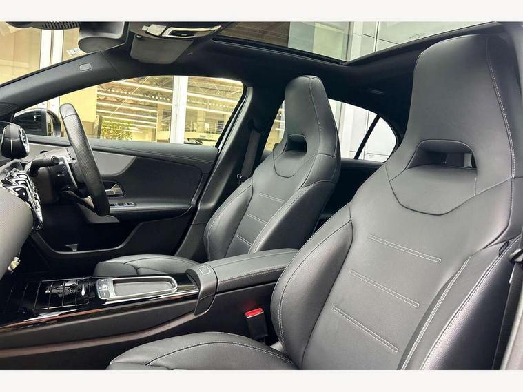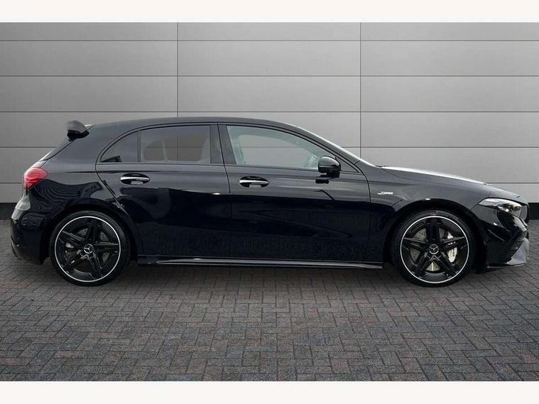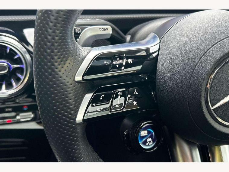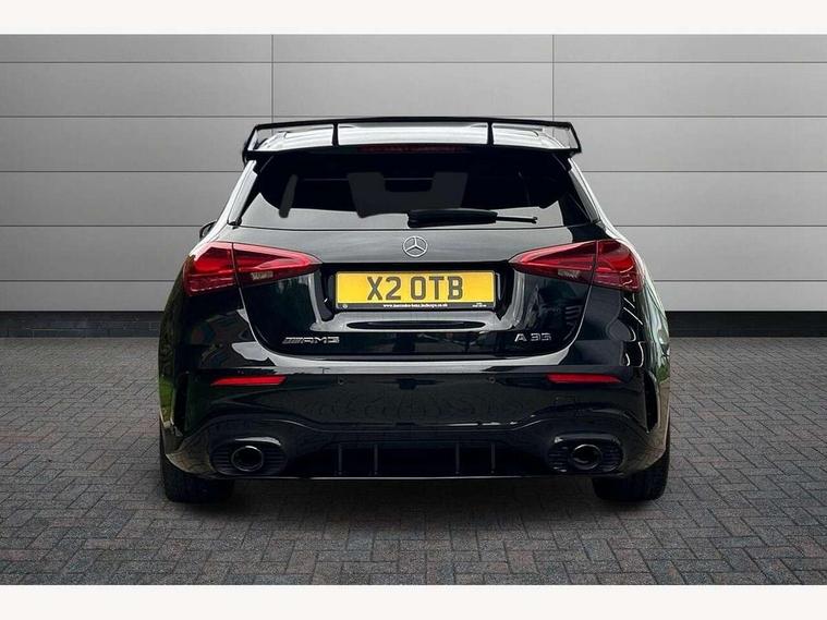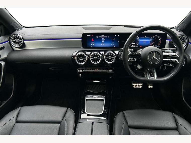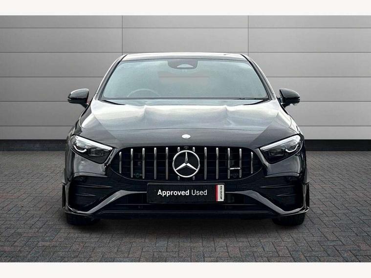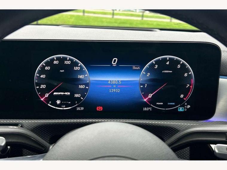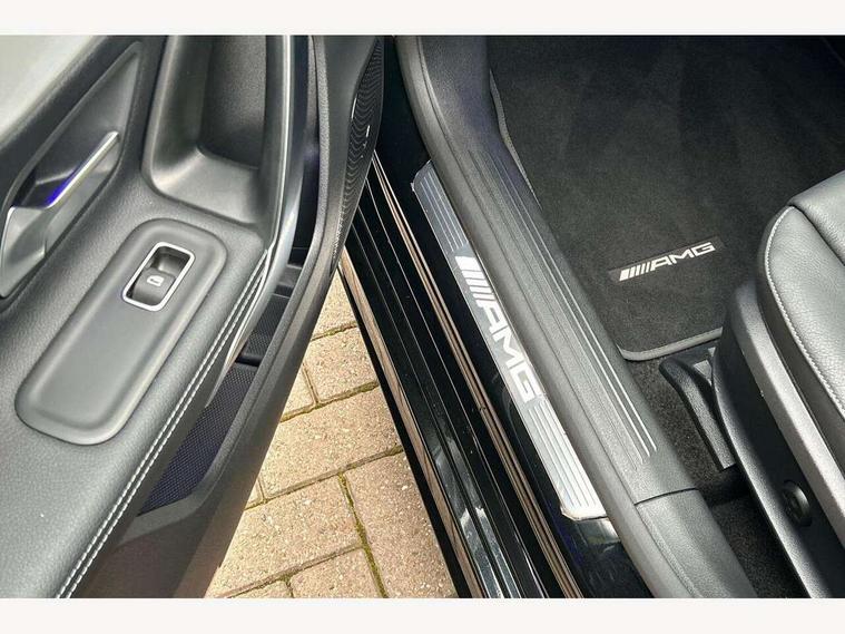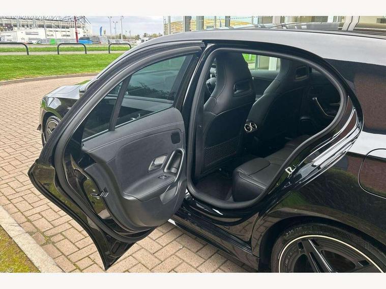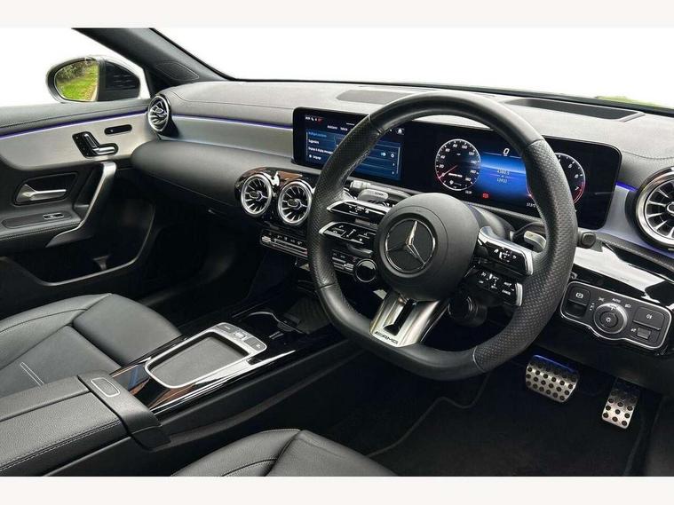 10.25 inch touchscreen central media display, 10.25" Digital instrument cluster display screen, Attention assist, Brake pad wear indicator warning light, Car wash mode, Cruise control + speed limiter, Direct steering, Direction indicators with lane change function, Dual bluetooth interfaces, DYNAMIC SELECT with driving programs (Slippery, Comfort, Sport, Sport+ and Individual), Easy pack tailgate hands-free access, ECO start/stop function, Engine start/stop button, Fluid level warning indicator for fuel, oil, coolant and washer fluid, Hard-disk navigation, Head up Display, Hey Mercedes Voice activation, Lamp failure indicator, MBUX augmented reality for navigation, MBUX Interior assistant, Mercedes me connect including emergency call system, accident recovery, breakdown and maintenance management, Mercedes me remote services, Outside temperature gauge, Owners manual in English, Pre-installation of private car share, Preinstallation for Mercedes Benz link, Remote boot closing, Service indicator (ASSYST), Smartphone integration with Apple CarPlay and Android auto, Speed sensitive power steering, Trip computer in multifunction display with current consumption indicator, Wireless charging, AMG suspension, Suspension with adaptive damping system, DAB Digital radio, MBUX multimedia system, Mercedes Benz advanced sound system (225 W) with 10 speakers, 1 central speaker, speakers on doors, a tweeter on door, one sub woofer + boost amplifier, 4 Electric Front and Rear windows, Adaptive brake lights, AMG body styling - AMG front apron with front splitter and AMG rear apron and visible exhaust tailpipe trim elements, AMG Front apron with flics as air deflector elements on the outer air intakes, AMG radiator grille with twin blade lamella and AMG Lettering, AMG Rear apron with specific diffuser look with four vertical fins and two round chrome plated tailpipe trim elements with a diameter of 90 mm, AMG spoiler lip on roof, Beltline strips in High gloss Black, Body colour bumpers, Body colour door handles with chrome inserts, Body colour side skirt, Electric adjustable and heated door mirrors with integrated LED side indicators, Front splitter and trim elements on the louvres in the outer air inlets, Front wings wheel arches with TURBO 4MATIC lettering, Headlamp assist automatic headlamp activation, Heat insulating dark tinted rear and rear side windows, Heated glass rear windscreen + timer control, LED daytime running lights, LED High level third brake light, LED tail lamp, Multibeam LED headlamps with adaptive highbeam assist and cornering function, Panoramic sliding sunroof, Privacy glass, Radio aerial, Rain sensing windscreen wipers with two sensitivity settings, Rear fog lights, Rear side wing doors, Rear windscreen wiper, Wider wheel arches for AMG wheels, Window line trim strip in black, 3 seat bench in 2nd row, 40:20:40 split folding rear seats, AMG floor mats, AMG Performance steering wheel in nappa leather, Automatic child seat recognition sensor, Black air vents with surround in silver chrome, Black roof lining, Brushed stainless steel sports pedals with rubber studs, Electrically adjustable front memory seats including lumbar support and backrest inclination, Front centre armrest with stowage, Front seat backs luggage nets, Heated front seats, Height/reach adjustable steering column, Illuminated AMG front door sills with changeable cover, Interior lighting - 64 colour Ambient lighting, Interior mirror with reading lamps in black and frameless, Rear armrest with 2 cupholders, Seat occupancy sensor for front passenger seat, Silver coloured aluminium gear shift paddles on steering wheel, Single front passenger seat, Sports seats with integrated headrests, Stowage compartment in centre console with retractable cover, Sunvisors with illuminated vanity mirrors, Twin front cupholders, Two zone thermotronic luxury automatic climate control, Aerodynamic pack - A Class, AMG night pack - A Class, Light and sight pack - A Class, Mirror package - A Class, Parking pack with 360 degree camera - A Class, Seat comfort pack - A Class, USB pack plus - A Class, 3 rear 3 point seatbelts, ABS with Brake Assist, Active bonnet, Adaptive brake assist with hold function and hill start assist, Black seatbelts, Bonnet with power domes, Childproof locks manually operated for rear doors and electrically operated for rear power windows, Crash responsive emergency lighting, Driver and passenger head and side airbags, Drivers knee airbag, Dual stage driver/passenger airbags, Electronic parking brake, ESP curve dynamic assist, ESP with ASR, Exit warning, Front and rear seatbelt reminder, Front brake calipers with AMG lettering, ISOFIX and top tether child seat fixing points in two outer rear seats, Tyre pressure monitoring system, Warning triangle and first aid kit, Window airbags, Alarm system/interior protection/immobiliser, Guard 360 degree vehicle protection, Keyless entry lock/unlock, Keyless Go, Remote central locking and crash sensor with emergency opening function, Light longitudinal grain aluminium trim, 19" AMG 5 twin spoke light alloy wheels aerodynamically optimised painted in matt black with high sheen rim flange, Summer tyres, Tirefit sealant kit,