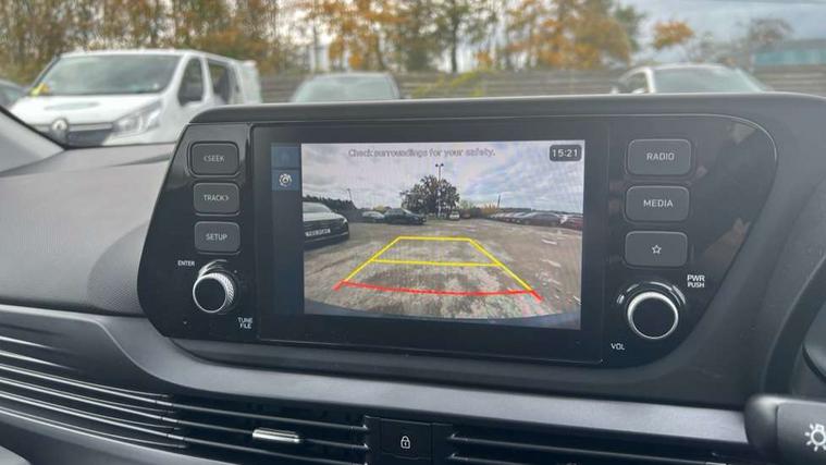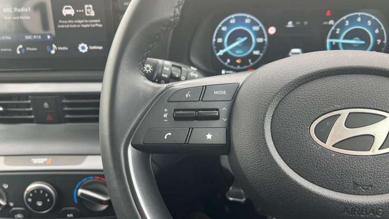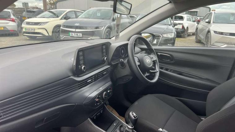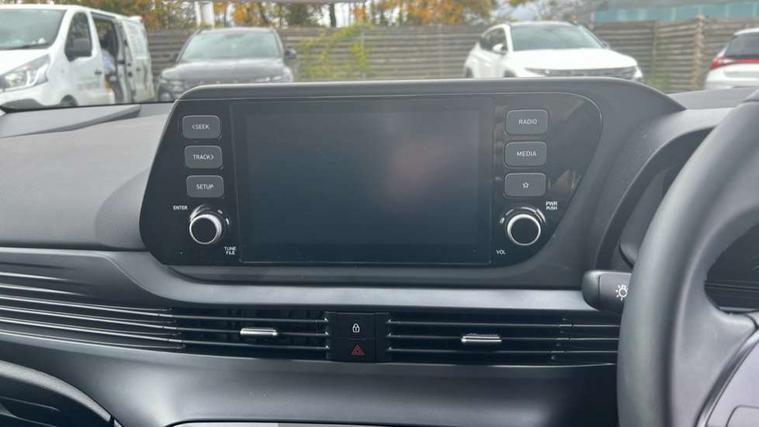 10.25" digital supervision cluster, 2nd Gen eCall, 8" Touchscreen with DAB, Apple car play/Android Auto, Cruise control + speed limiter, Forward collision assist with car, pedestrian and cycle detection, Intelligent speed limit warning, Lane follow assist, Lane keep assist, PAS, Rear parking sensor, Rear view camera with dynamic guidelines, USB C port front, 3rd brake light, Dusk sensor, Electric adjustable heated door mirrors, Front grille mesh pattern design, High beam assist, LED daytime running lights, LED Headlights, LED taillights, Rain sensor, Rear side wing doors, Rear wiper, Repositioned flat metal hyundai emblem, 3 seat bench in 2nd row, Adjustable head restraints, Air conditioning, Cloth upholstery, Floor mats, Leather steering wheel, Single front passenger seat, 3x3 point rear seatbelts, ABS with front and rear diagonally split, Autonomous emergency braking, Child locks on rear doors, Front ventilated disc brakes, Rear solid disc brakes, Tyre pressure monitoring system, 16" alloy wheels, Tyre repair kit,