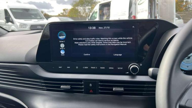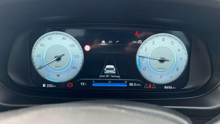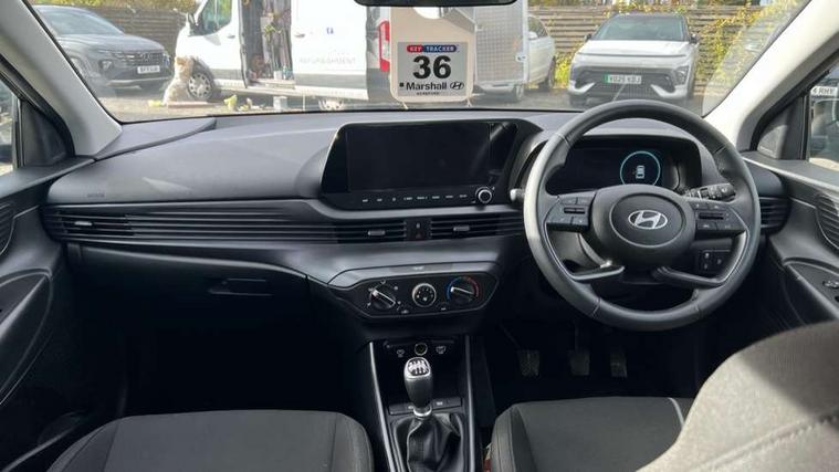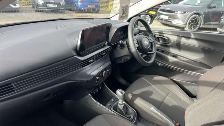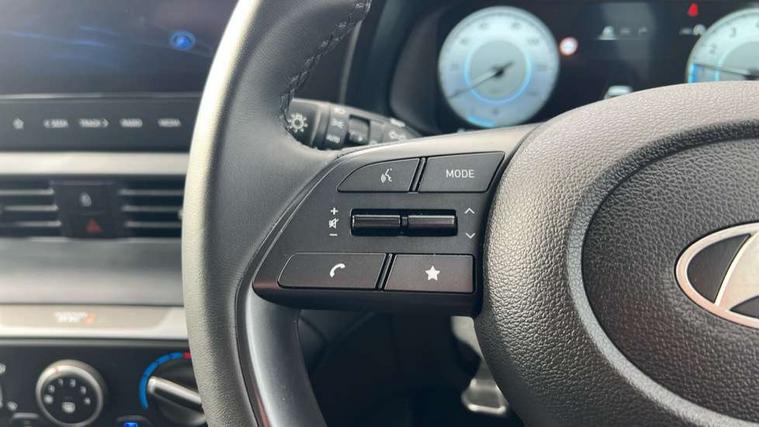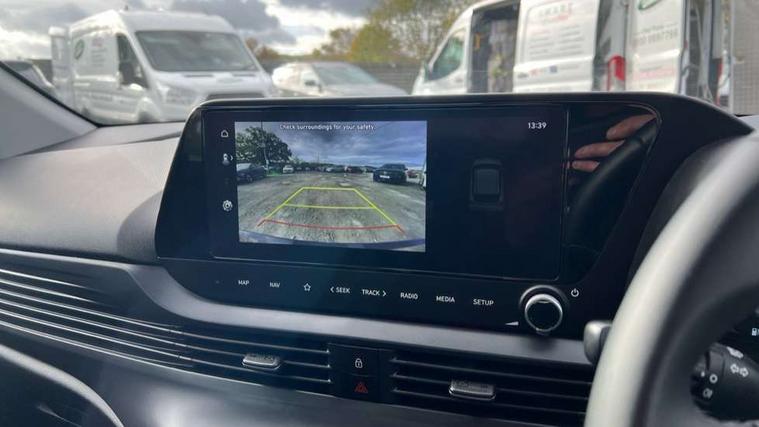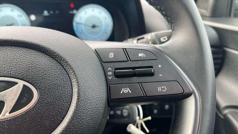 10.25" digital supervision cluster, 2nd Gen eCall, 8" Touchscreen with DAB, Apple car play/Android Auto, Cruise control + speed limiter, Forward collision assist with car, pedestrian and cycle detection, Intelligent speed limit warning, Lane follow assist, Lane keep assist, PAS, Rear parking sensor, Rear view camera with dynamic guidelines, USB C port front, 3rd brake light, Dusk sensor, Electric adjustable heated door mirrors, Front grille mesh pattern design, High beam assist, LED daytime running lights, LED Headlights, LED taillights, Rain sensor, Rear side wing doors, Rear wiper, Repositioned flat metal hyundai emblem, 3 seat bench in 2nd row, Adjustable head restraints, Air conditioning, Cloth upholstery, Floor mats, Leather steering wheel, Single front passenger seat, 3x3 point rear seatbelts, ABS with front and rear diagonally split, Autonomous emergency braking, Child locks on rear doors, Front ventilated disc brakes, Rear solid disc brakes, Tyre pressure monitoring system, 16" alloy wheels, Tyre repair kit,