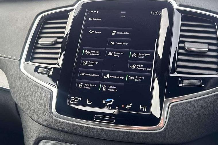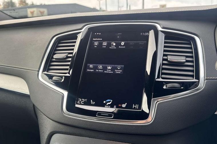 12.3" Active TFT crystal driver's instrument display, 9" centre console portrait touch screen, Adjustable steering wheel force, Bluetooth hands free telephone connection, Drive mode settings, Driver alert control with lane keeping aid, Driver assistance (pilot assist and adaptive cruise control), Driver awareness - Blind spot information system with steer assist, cross traffic alert with autobrake and rear collision warning and mitigation, Emergency call service, Front and rear park assist, Handsfree power tailgate opening and closing, Oncoming Lane Mitigation, Remote engine start, Sensus navigation with European mapping and traffic information, Service interval indicator, Speed limiter, Speed sensitive steering, Trip computer, Voice activated control for key functions, Volvo on call, 8 speed automatic transmission with start/stop + manual change functions, All wheel drive system, Touring chassis, DAB Radio (Digital Audio Broadcasting), Steering wheel remote infotainment controls, Adaptive brake lights with high level LED brake lights, Auto dimming interior + exterior mirrors, Automatic headlight levelling system, Automatic LED Headlights + Active high beam incorporating daytime running lights, Body colour bumpers, Dark tinted windows for rear side windows and cargo area, Dual integrated exhaust pipes with high gloss black surround, Electric folding and heated door mirrors, Front and rear power windows, Heated washer nozzles, High gloss black Deco lower front bumper, High gloss black door mirrors, High gloss black lower rear valance, High gloss black mesh front grille with surround, High gloss black window surround, Home safe and approach lighting, Integrated roof rails in high gloss black, Puddle lights, Rain sensor with automatic windscreen wiper activation, Rear side wing doors, Rear wash/wipe with intermittent wipe setting, Roof antenna, Roof spoiler, Visible VIN plate, 12V socket front tunnel console, rear passenger compartment and cargo area, 2 seat bench in 3rd row, 3 seat bench in 2nd row, A-pillar parking ticket holder, Ambient door and instrument panel lighting, B Pillar ventilation, Bright metal luggage threshold, Cargo divider with grocery bag holder, Centre console cupholders and storage, Charcoal headlining, Driver's side lower dashboard storage compartment, Front and rear door pocket and front cupholder illumination, Front footwell and side step illumination, Front headrests, Front seat cushion extensions, Heated front seats, Height/reach adjustable steering column, Illuminated front and rear tread plates, Illuminated luggage compartment, Illuminated tailgate, Illuminated vanity mirrors + ticket holder, Illumination lockable glovebox compartment, Integrated sun curtains in rear doors, Load protection net, Lower dashboard, tunnel console, Lower door panel in blond, Multicolour theatre lighting, Outboard armrest with cupholder and storage for third row passengers, Power driver seat with multi directional lumbar support and memory for seat and exterior mirrors, Power folding 2nd row headrests, Power passenger seat with multi directional lumbar support and memory, Rear footwell and side step illumination, Rear headrests, Semi automatic load cover, Single front passenger seat, Sports floor mats, Sports leather gear knob, Sports pedals, Underfloor cargo storage, 7 three point seatbelts, City safety includes pedestrian, cyclist and large animal detection and front collision warning with full auto brake, Drivers knee airbag, Dual stage driver/passenger airbags, First aid kit, Front seats SIPS airbags, Hill descent control, Hill start assist, IC (Inflatable Curtains) - Full Length, Passenger airbag cut-off switch, Power parking brake with auto hold function, Road sign information display, Run off Road Mitigation, Run off Road Protection, Seatbelt reminder and pretensioners for all seats, SIPS (Side Impact Protection System), Slippery road and hazard light alert, Stability and Traction Control with Spin control, Engine Drag Control and Corner Traction Control, Tyre pressure monitoring system, Vehicle deceleration control with Anti-lock Brake System, Electronic Brake Distribution and Emergency Brake Assist, Warning triangle, WHIPS whiplash protection system - front, Anti-theft alarm including immobiliser/volume sensor + level sensor, Care key with user defined top speed, Key integrated remote control central locking + fuel flap with deadlocking system and auto open/close power windows, Keyless drive (includes keyless entry and keyless start) with remote tag, Locking wheel nuts, Private locking for glovebox and tailgate, Metal mesh inlays, Tailored Instrument Panel and Door Tops with Contrast Stitching, Tempa spare wheel and jack,