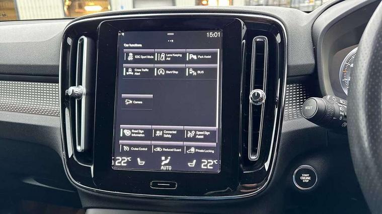 12.3" Active TFT crystal driver's instrument display, 9" Touch screen, Adjustable steering wheel force, Bluetooth hands free telephone kit, Drive mode selector, Lane keep assist with driver alert control, Oncoming Lane Mitigation, Sensus navigation system, Speed limiter, Speed sensitive steering, Voice control system, Volvo on call, DAB Digital radio, Steering wheel mounted remote controls, Adaptive brake lights, Auto dimming interior mirror, Automatic headlamp levelling, Black stone door mirrors, Black stone roof, Dark tinted glass for rear windows + rear screen + side luggage area window, Dual integrated exhaust pipes with high gloss black surround, Electrically adjustable and heated door mirrors, Embossed rear side roof pillar, Front and rear electric windows, Front tread plates, High gloss black front and rear skid plate, High gloss black lower front bumper, High gloss black mesh grille, High gloss black roof rails, High gloss black window trim, Home safe and approach lighting, LED front fog lights, LED Headlights + Active high beam incorporating daytime running lights, Rain sensor windscreen wipers, Rear wiper, Roof antenna, Roof spoiler, Visible VIN plate, 12V socket in front tunnel console, 2 zone electronic climate control with air quality system, 3 spoke leather steering wheel with chrome trim, 60/40 split folding rear seat, A-pillar parking ticket holder, Ambient lighting in door panels, Black headlining, Bright metal luggage threshold, Centre console cupholders, Centre console storage box, Contour sports seats with leather/nubuck upholstery, Cooled glovebox, Courtesy lights, Driver seat height/tilt/lumbar adjust, Driver's lower storage shelf, Extended front seat cushions, Front door pockets, Front footwell illumination, Front tunnel storage net, Front/rear reading lights, Glovebox bag hook, Glovebox illumination, Height/reach adjustable steering column, High gloss centre tunnel deco, Illuminated driver/passenger vanity mirrors, Illuminated front cupholder, Illuminated luggage compartment, Illuminated tailgate, Isofix attachments on rear seats, Load protection net, Multicolour theatre lights, Passenger seat adjustable for lumbar support, Perforated leather gearknob, Perforated Leather Key Integrated Remote, Perforated leather steering wheel, Pollen filter, Rear armrest / integral cup holders / storage tray, Sports pedals, Underfloor stowage compartment, ABS/EBD, City safety, Drivers knee airbag, DSTC-Dynamic Stability and Traction Control, Dual stage driver/passenger airbags, EBA, Electronic parking brake with auto hold, Fasten seatbelt reminder, First aid kit, Front seat side impact airbags, Hill descent control, Hill start assist, Inflatable curtain, Passenger airbag cut-off device, Road sign information display, Run off Road Mitigation, Run off Road Protection, Seatbelt pre-tensioners, Side impact protection, Tyre pressure monitoring system, Warning triangle, WHIPS whiplash protection system - front, Anti-theft alarm including immobiliser/volume sensor + level sensor, Fuel flap with deadlocking system, Key integrated remote control central locking, Locking wheel nuts, Private locking, Cutting edge aluminium inlay,