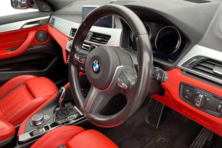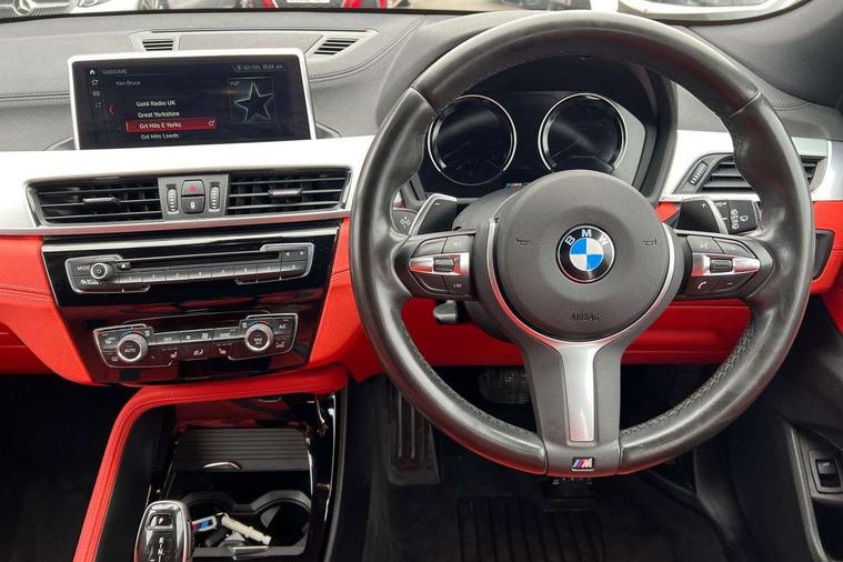 Automatic powered tailgate, Bluetooth hands free facility with USB audio interface, BMW Online services, BMW remote services, BMW Teleservices, Brake pad wear indicator in front and rear, Check Control warning system for monitoring of lights and door/luggage compartment open warning, Eco pro mode, Instrument cluster with black optic and 5.7" colour display + speedometer + tachometer + fuel gauge + instant fuel economy with M35i logo, Lights on warning by audio warning signal when ignition is switched off, M Sports steering, On board computer - average speed+fuel consumption, service interval, clock/date, odometer/trip meter, outside temperature display and ice warning, Optimum shift indicator, Personal Profile, Real time traffic information, Speed limiter, TMC for lifetime of vehicle, 12V compressor with integrated sealant injection bottle and hose, 61 Litre touring fuel tank, Anti roll bar front and rear, Balancer shaft, Drive performance control with ECO PRO comfort + sport mode, Electronic differential lock, Engine cover with M performance designation, M sport suspension, Sport automatic transmission, Twin tube gas filled shock absorbers with degressive characteristic curve, 2x USB sockets in front, Bluetooth audio streaming, BMW professional radio with CD player, DAB Digital radio, Steering wheel mounted audio/telephone controls, Adjustable headlights, Automatically dimming rear view mirror, BMW badge on bonnet, tailgate with integrated tailgate release and C pillars, Body colour door handles, Clear lenses direction indicator lights, Direction indicator side lights integrated in exterior mirrors using LED technology, Door mirror integrated indicators, Dynamic brake lights, Electrically adjustable and heated door mirrors glass aspheric on driver's side and convex on passenger side, Fingertip control / anti-trap function on electric window, Front and rear bumper system, Front and rear electric windows, Green tinted heat protection glazing, Halogen headlights, Heated windscreen washer jets, High gloss black front side air intake with matt black insert, High level third brake light, LED front fog lights, LED headlights with extended contents - cornering, high beam assist, LED day running lights with dynamic beams-through for urban and motorway, Lightweight engineering, M rear spoiler, Manual headlight beam throw control, Model designation in left tailgate, Rain sensor with automatic headlight activation, Rear fog lights, Rear tail lights with LED technology and 3D design, Rear window aerial, Rear window wiper with wash/wipe function, Reversing light in rear light cluster, Round exhaust system with twin cerium grey tailpipes in left and right split, Satin aluminium roof rails, Shark fin antenna, Twin chrome exhaust tailpipes, Visible VIN plate, Welcome lighting, 40:20:40 manually split folding rear seat with two tilt positions for backrest, Anthracite headlining, Armrest in centre section of rear seat backrest and folding, Automatic two zone climate control air conditioning, Child seat ISOFIX attachment for two outer rear seats and front passenger seat with anchorage points, Conditioned based service, Driver + passenger vanity mirrors, Driver and front passenger seat heating, Driver/passenger sunvisors with ticket holders, Drivers folding storage compartment, Floor mats with contrasting stitching on dashboard and centre console, Front and rear door armrests, Front armrest, Front door sill finishers with M35i designation, Gearshift paddles on steering wheel, Glovebox with light, LED ambient lighting in upper door trim and dashboard trim, Luggage compartment lighting, Luggage compartment loading edge with stainless steel insert, Luggage compartment with underfloor storage and four lashing eyes, M Sport multifunction leather steering wheel, Rake/reach adjustable steering wheel, Retaining strap on the left side of the luggage compartment, Three rear headrests, Two cupholders in front and rear centre console, Extended lighting pack - X2 M35i, Extended storage pack - X2, M Sport aerodynamic pack - X2 M35i, 3 point seatbelts on all seats, front pyrotechnic belt tensioners, stopper and belt force limiters, rear coded belt buckles, Airbags - Front driver and passenger, front and rear head, front side, curtain head protection, Anti lock braking system (ABS) with brake assist, ASC - Active stability control, BMW emergency call, Brake drying, Brake energy regeneration, Braking readiness, Child proof locking system in rear door, Crash sensor activating central locking release with hazard warning lights and interior lighting + battery safety cut-off, Driver and front passenger seat belt security check, DSC - Dynamic Stability Control, Dynamic Traction Control - DTC, Electrically operated parking brake with automatic drive release, Electronic parking brake, Front passenger airbag deactivation, Front ventilated brake disc, Hill descent control, Hill start assist, M Sport braking system, M Sport seatbelts, Multi collision braking system, Rear brake discs, Side impact protection, Twin horns, Tyre pressure monitor, Warning triangle and first aid kit, Auto door lock when driving, Central locking switch for all doors, fuel filler cap and luggage compartment, Engine immobiliser, Incorrect fuel protection system, Locking wheel bolts, Remote control including integrated key with M specific highlight, Remote control Thatcham category 1 alarm, Start/stop button with comfort go keyless engine start and auto start stop deactivation button, Dash top finished in black with decorative stitching line on upper section, High gloss black centre console, Reduced rolling resistance tyres,