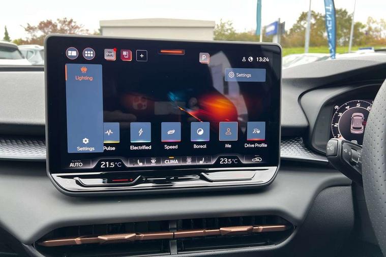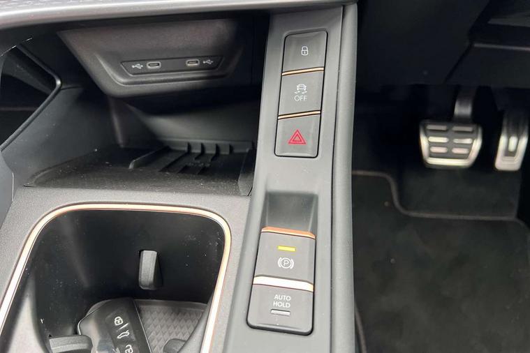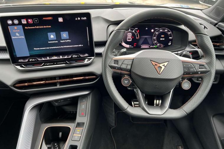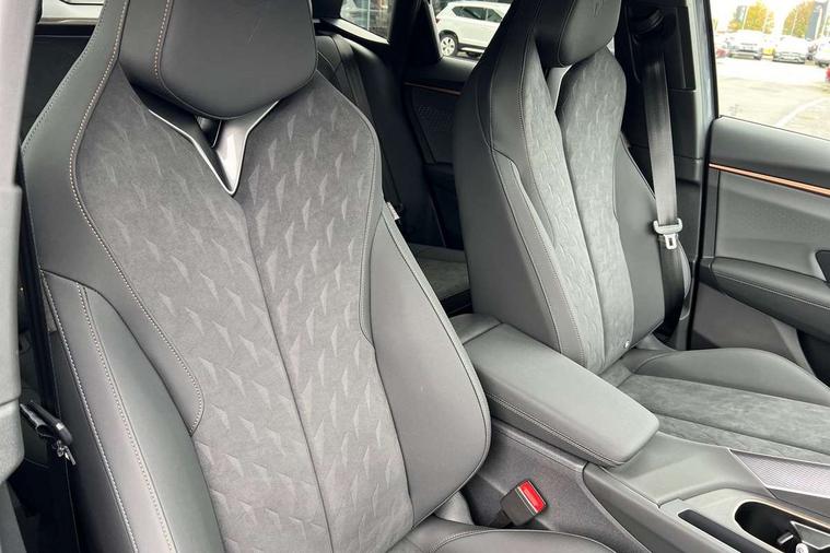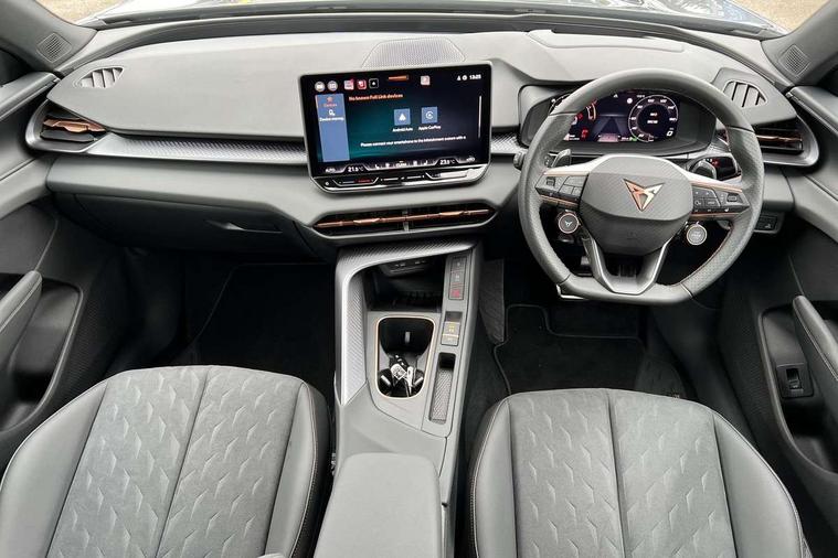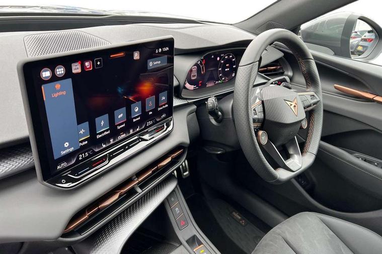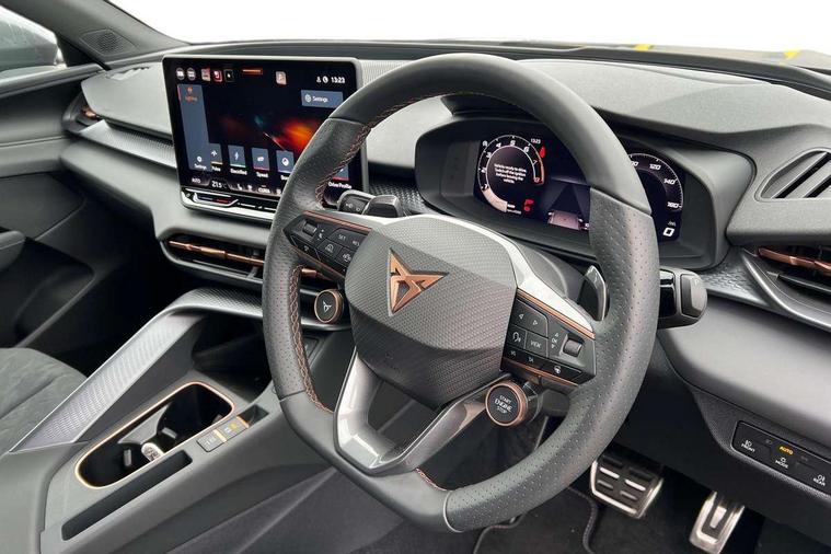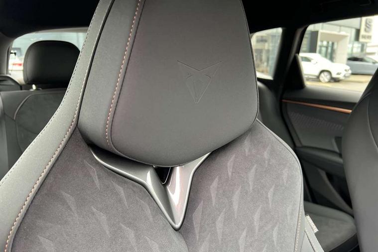 10.25" digital cockpit and configurable dashboard, Adaptive cruise control with follow-to-stop and speed limiter, Advanced driver alert system, Advanced lane assist with semi-automatic vehicle control in a medical emergency and traffic jam assist, Driving profile selection and conventional shock absorber, Dynamic road sign display, E-call, Electric tailgate with virtual pedal, Emergency steering support with turn assist, Four x USB Type C ports (2 in front and 2 in rear), Front and rear parking sensors, Front assist (Forward collision warning with automatic braking) with multifunction camera and front cross traffic assist, Head up Display, Intelligent park assist, Media system with Nav - 12.9" touch display, voice control, full link phone (wired/wireless), DAB and Steering wheel mounted controls, Rear traffic assist, Side and exit assist, Speed sensitive power steering, Start/stop system with regenerative braking, Top view camera (front camera, rear camera, 2 side cameras), Wireless phone charger, Auto dimming rear view mirror, Black roof rails, CUPRA 3D rear lights with ceremony & swiping indicator and illuminated logo, Dark tinted rear windows, Daytime running lights with automatic headlight control and Coming and Leaving home function, Door mirrors with memory function and lowing function on passenger mirror, Dynamic headlight range control, Electric front/rear windows, Electrically adjustable, heated and folding door mirrors, Front fog lamps with cornering function, Heat reflecting windscreen, High beam assist, LED headlamps with signature "CUPRA LED", Rain sensing wipers, Rear fog light on one side, back up light on both sides, Rear side wing doors, Rear wash/wipe, Third brake light, Welcome lights (within exterior mirror housing), 3 seat bench in 2nd row, Black roof lining, Cupra sports pedals, Dinamica cloth upholstery, Driver seat memory function, Electrically adjustable front seats including lumbar support, Front and rear head restraints, Front and rear reading lights X 4, Front centre armrest, Heated front seats, Heated leather wrapped multi function sports steering wheel with tiptronic, Illuminated interior front door sills, Isofix, Operating voltage 12V, Single front passenger seat, Smart wraparound interior lighting, Sunvisors with illuminated mirror, Three zone climate control with control panel in rear, Unsplit rear seat bench, split folding backrest, with centre armrest, Variable luggage/load compartment floor, 3 point seatbelts in front with pretensioner and electric height adjustment, 3 point seatbelts on all rear seats, Brake control system - ESC and brake booster, Child proof door locks, Driver and front passenger airbags, Electronic parking brake, Front and rear disc brakes, Front interaction airbag, Front passenger airbag deactivation switch, Front side airbags with curtain airbags, Pre-crash front and rear seat belt tensioner, window closure and hazard lights, Tyre pressure monitoring system, Visual and acoustic seat belt reminder, electric contact in front and rear, Anti theft alarm, Keyless locking and starting system with keyless access, Locking wheel bolts, Black decorative trims, Chrome interior detailing, 19" Spectrum exclusive machine alloy wheels, Tool kit,