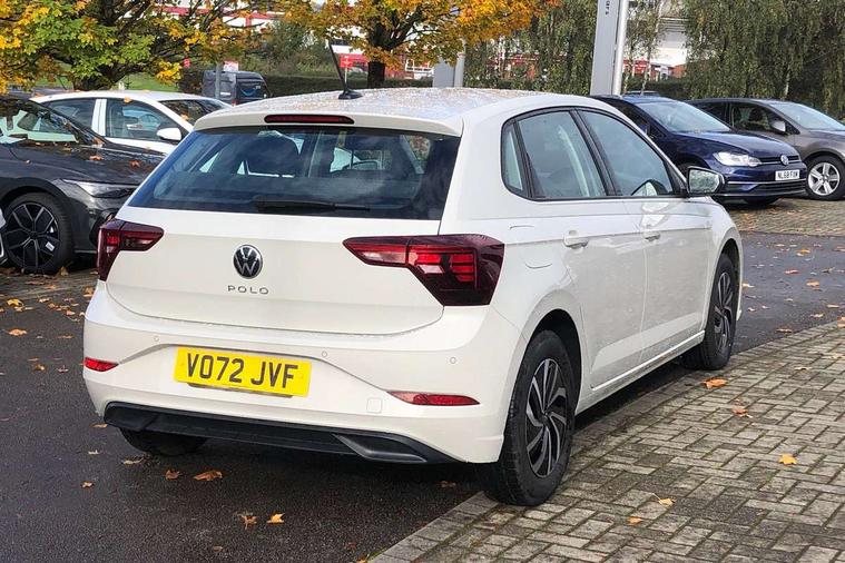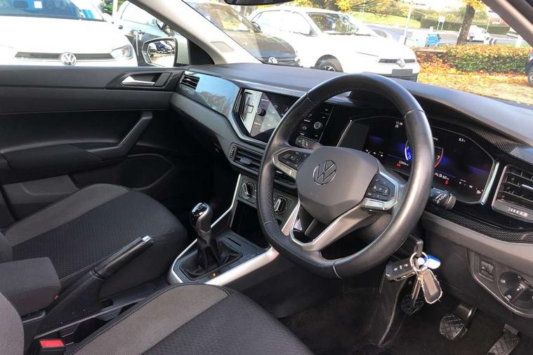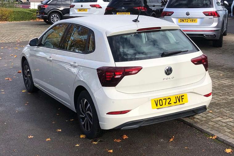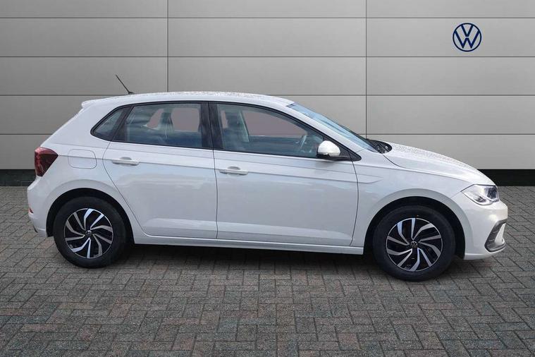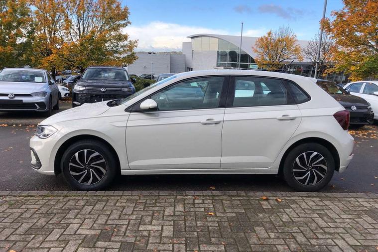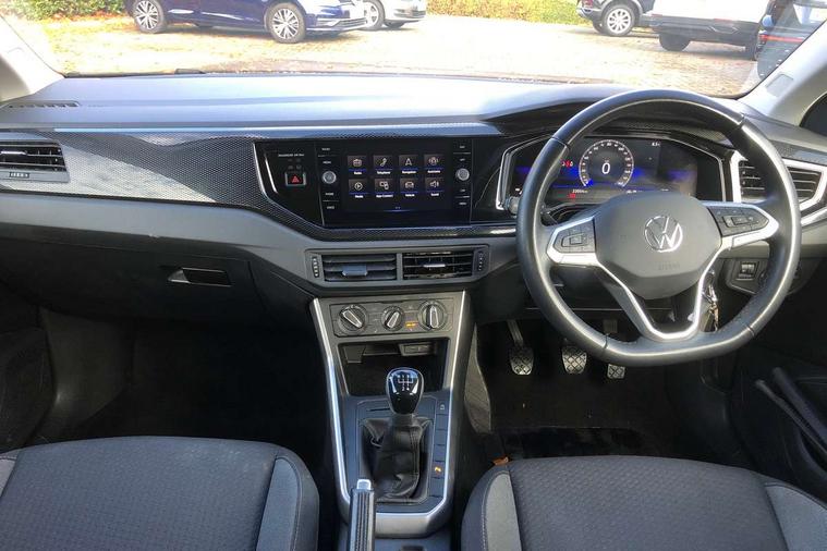 Adaptive cruise control without follow-to-stop and speed limiter, Bluetooth mobile phone interface, Driver alert system, Emergency call service, Front assist system, Power assisted speed sensitive steering, Preparation for We connect and We connect plus, Speedo and rev counter, electronic odometer, trip, service interval display and fuel gauge, Standard rear axle, Travel Assist - Lane keeping system and traffic jam assist, Travel assist including emergency assist, Trip computer, Warning signal and warning light for front and rear seatbelts not fastened, Washer fluid level indicator, Wireless app connect, Front wheel drive, Rear shock absorpion, Start-stop system with battery regeneration (recuperation - energy recovery during braking), DAB Digital radio, Diversity antenna for FM reception, Front and rear 6 speakers, Automatic dimming interior rear view mirror, Body colour bumpers, Body colour door handles, Body colour door mirrors, Electric front windows, Heat insulating darkened glass in side and rear windows, Heat insulating glass windscreen, Power folding adjustable/heated exterior mirrors and front passenger exterior mirror lowering function, Rain sensor, Rear electric windows, Rear fog light, Rear side wing doors, Rear windscreen washer and wiper with interval delay, Third brake light, 12V power socket in centre console, 2 front and 2 rear reading lights, 2 USB-C ports in the front, 2 USB-C charging sockets on the center console in the rear, 3 rear head restraints, 60/40 split folding rear seat and rear seat bench not split, Ceramique headliner, Chrome plated radiator grille inserts, air vent surrounds and light switch surrounds, Door and side trim panel, Driver and front passenger seat height adjustment, Driver/passenger sunvisors with illuminated vanity mirrors, Front centre armrest, Front seat backrest storage pockets, Front standard seats, Handbrake lever handle in leather, Hartley/Thomas cloth upholstery, Isofix child seat preparation easy-fit (for two outer rear seats, and front passenger seat) compatible with I-size, Leather trimmed gear knob, Luggage compartment cover, Luggage compartment floor, Luggage compartment lighting, Multifunction steering wheel, Single front passenger seat, Standard pedal cluster, Light and vision pack - Polo, 3 point height adj front seatbelts + pretensioners, 3x3 point rear seatbelts, ABS, Driver and front passenger airbag with front passenger airbag deactivation, Drivers and front passengers safety optimised head restraints, ESC (Electronic stability control) + EDL (Electronic Differntial lock) and ASR (Traction control), Extended and predictive pedestrian/ cyclist protection, Front curtain and side airbags with center airbag, Front disc brakes, Hill hold control, Manual child lock in rear doors, Rear drum brakes, Single tone horn, Tyre pressure loss indicator, Alarm with interior protection, Anti-theft alarm system with interior monitoring, backup horn, and towing protection, Anti-theft wheel bolts, Electronic engine immobiliser, Lava stone black gloss/matt decorative inserts in dash and front door panels, Low rolling resistance tyres,