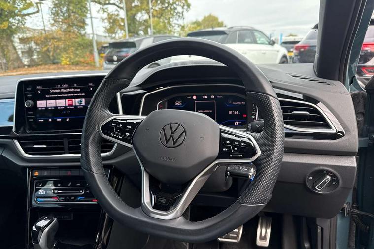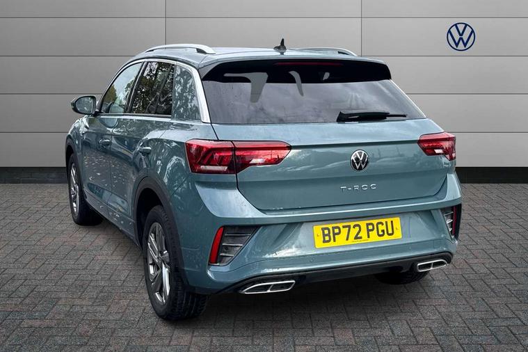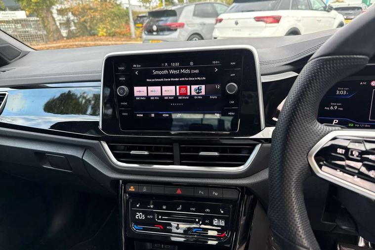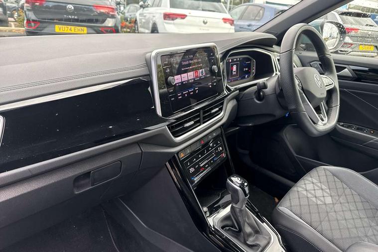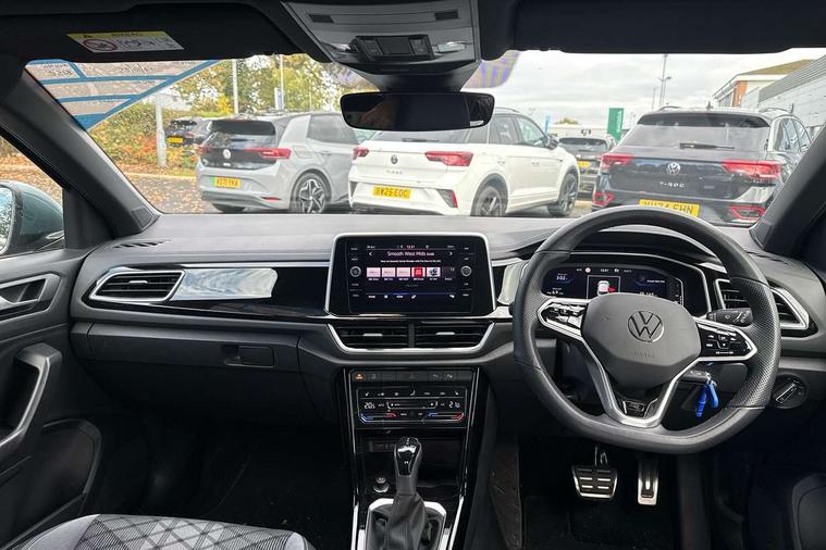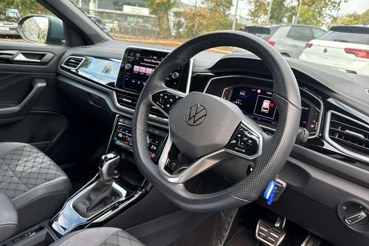 10.25" Digital cockpit pro, Bluetooth mobile phone interface, Driver alert system with fatigue detection, Driver tips and journey analysis, Emergency call service, Lane keeping system Lane Assist, Modified key software - reduce switch off time for key status change to Long no motion, Online services, Park assist including front and rear parking sensors, Service interval indicator, Tailgate/trunk lid release from outside, Think blue trainer driver tips and journey analysis, Warning sound and light for front seatbelts unfastened, Wireless app connect, Battery regeneration during braking, Start/stop function with battery regeneration, Diversity antenna for FM reception, Front and rear 6 speakers, Music playback - MP3, WMA and AAC files, Premium USB cable in choice of either Apple or Android smartphone compatibility, SD card slot, Simultaneous pairing of 2 compatible mobile devices, Title and cover art display, We Connect and We Connect Plus functionality, 3rd brake light, Auto dimming interior rear view mirror, Automatic hazard lights activation under emergency braking, Automatic headlight control with LED separate daytime running lights with coming/leaving home function, Extended roof spoiler, Exterior mirrors aspherical on driver side, convex on front passenger side, External USB type C socket and charging sockets, Front windscreen wiper with intermittent wipe and 4 position delay, Heated rear window, LED Plus headlamps, LED rear combination lamps, LED rear number plate lights, LED tail lamp rear comination lamps, Power windows with comfort operation and circuit breaker, R-Line design body coloured bumpers, Rain sensor, Rear exhaust tailpipe, Rear fog light on one side and reversing lights on both sides, Rear side wing doors, Rear wash/wipe with intermittent wipe setting, Remote electrically foldable door mirrors, puddle lights and reverse activated passenger's door mirror, 12V power socket in centre console, 3 rear head restraints, 3 seat bench in 2nd row, 4 load lashing points in luggage compartment, Air care climatronic air conditoning system with active combination filter and 2-zone temperature control, Black roof lining, Chrome plated radiator grille inserts, air vent surrounds and light switch surrounds, Door and side trim panel with leatherette insert, Drawer under drivers seat, Front + rear carpet mats, Front centre armrest, Front cupholders x 2, Front footwell illumination, Front reading light, Front scuff plates with R logo, Instrument lighting, white adjustable panel illumination, Interior ambient lighting and surround lighting, Interior light delay, Isofix child seat preparation, Leather gearshift handle, Load-through provision with cup holder when folded down ('Unsplit rear seat bench, split folding backrest, with centre armrest), Luggage compartment lighting, Single front passenger seat, Stainless steel pedals, Storage compartment in left and right luggage area, Storage compartment in rear doors, Storage compartments in driver and front passenger doors, Sunvisors with illuminated vanity mirrors, Variable boot floor, height adjustable and removable, Driver assistance pack without proactive passenger protection - T-Roc, 3 point height adj front seatbelts + pretensioners, 3 point seatbelts in outer rear with ECE label, ABS, Child locks on rear doors, Driver and front passenger airbag with front passenger airbag deactivation, Driver and front passenger safety-optimised head restraints, Drivers seatbelt reminder, Electronic parking brake, Electronic Stability Control (ESC) inc EDL (Electronic Differential Lock) and ASR (Traction Control), Front and rear passengers curtain airbag system including front side airbags, Front assist with city emergency braking and pedestrian monitoring, Front seat side impact airbags, Hill start assist, Predictive pedestrian protection, Rear disc brakes, Single tone horn, Tyre pressure loss indicator, Volkswagen roadside assistance, Alarm with interior protection, Anti-theft alarm system with interior monitoring, backup horn, and towing protection, Remote central locking with SAFELOCK, radio remote control with 2 remote control folding keys, Trims for alloy wheels,