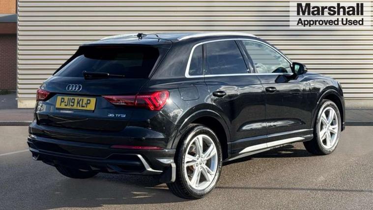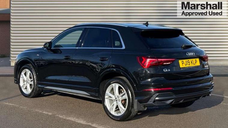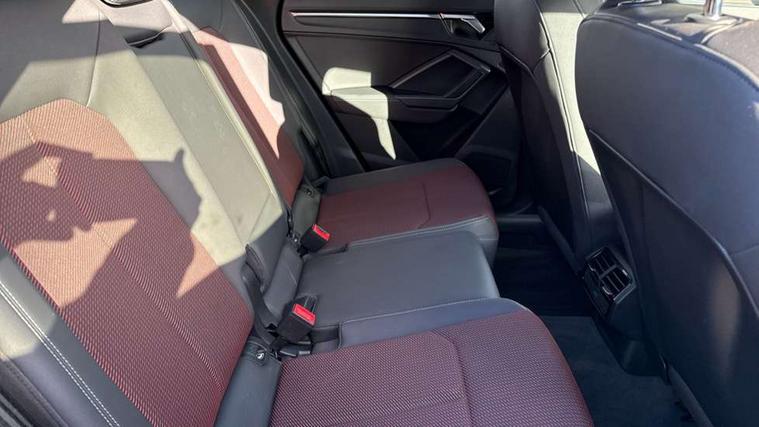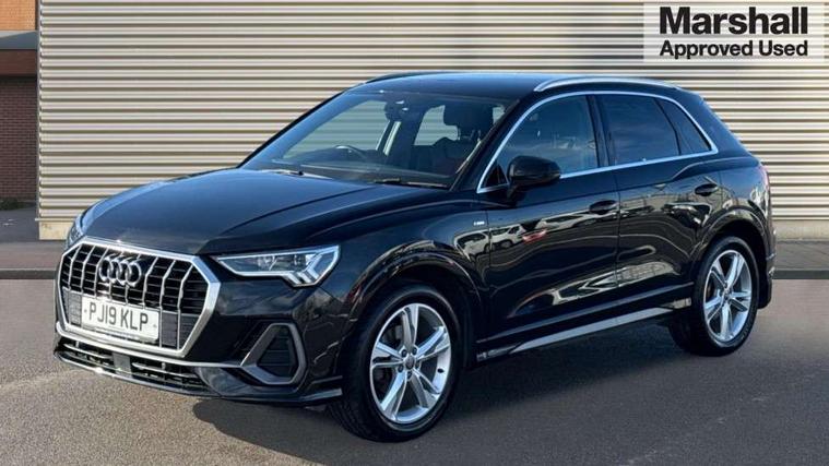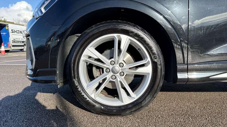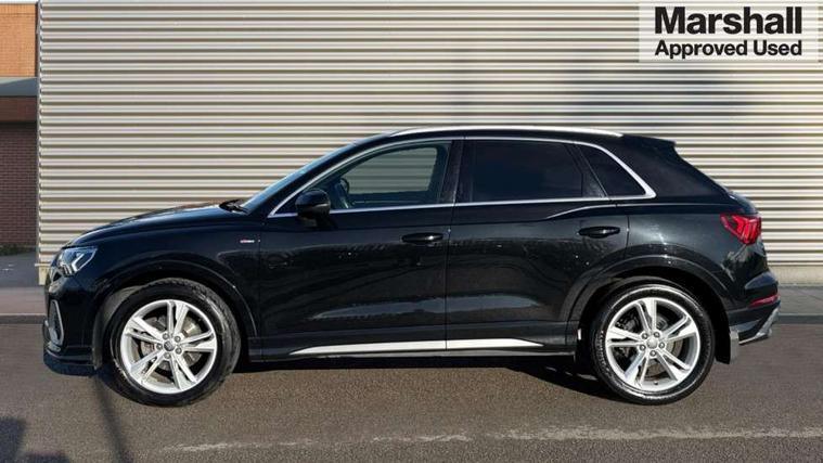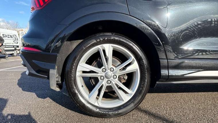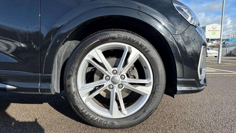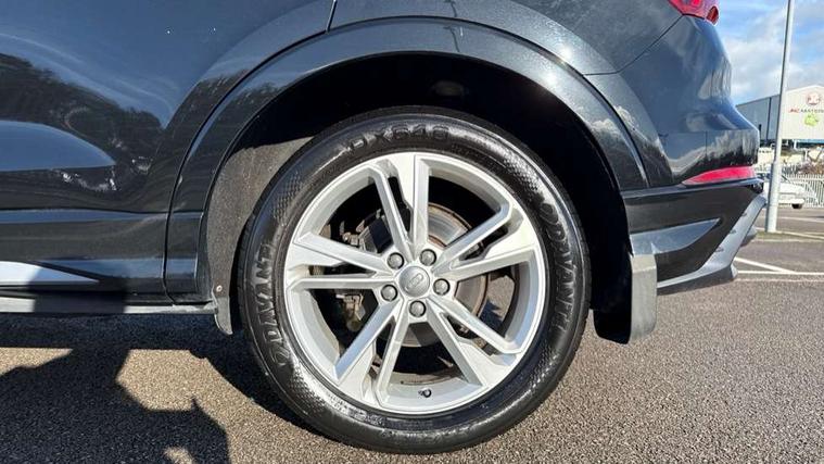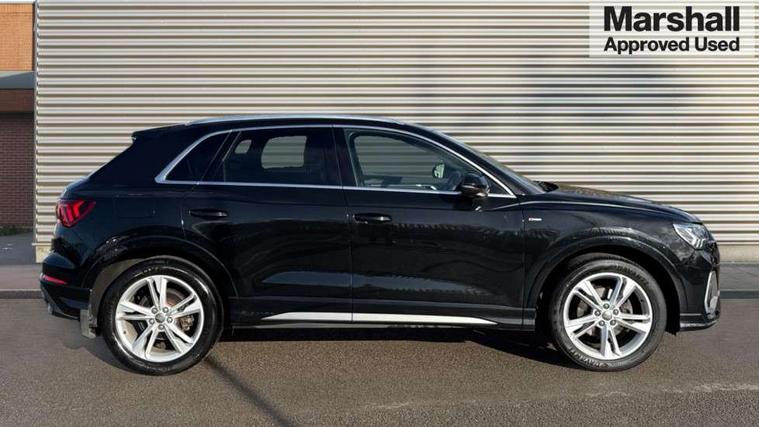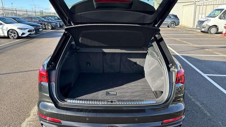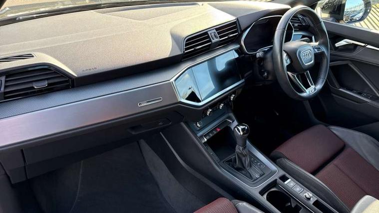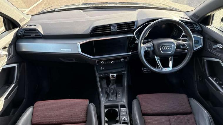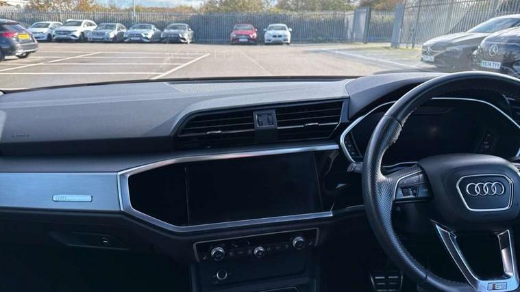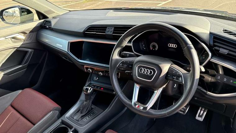 Audi connect safety and service (e-call), Audi drive select, Audi lane departure warning, Audi side assist, Audi smartphone interface, Bluetooth interface, MMI navigation plus with MMI touch, Power opening/closing tailgate, Progressive steering, Service interval indicator, Stop/start system, Voice control system, DAB digital radio module, Acoustic windscreen, Aluminium roof rails, Aluminium window trim, Auto dimming rear view mirror, Body colour door mirrors, Body coloured bumpers, Diffuser in matt Platinum grey, Electrically adjustable and heated door mirrors with integrated LED side indicators, Front and rear electric windows, Front fog lights, Front side air inlets in matt platinum grey, Front spoiler blade in matt platinum grey, Grille vertical bars in aluminium silver/Matt, High gloss black finish B and C pillars, Privacy glass, Rain and light sensors, Rear diffuser strip in selenite silver, S Line badge on wings, S Line front and rear bumpers, Side skirt insert in matt Platinium grey, Titanium black radiator grille, 12V socket in rear centre console, 40:20:40 split folding rear bench seat, Adjustable rear seat bench/backrest with centre armrest and cupholder, Aluminium door sill trims, Black cloth headlining, Dual zone climate control, Front and rear black floor mats with contrast stitching in rock grey, Front and rear headrests, Front centre armrest with storage compartment and angle adjustment, Illuminated door sill trims with S logo, ISOFIX child seat mounting and Top Tether with front passenger airbag deactivation, Perforated leather gearknob, Stainless steel luggage compartment sill finisher, Stainless steel pedals, Non smoking pack - Q3, 3x3 point rear seatbelts, 6 airbags - Driver, front passenger, curtain and side windows, Electronic stabilisation control including ABS, ASR and EDL, Hill hold assist, Pre sense basic, Seatbelt monitoring, Tyre pressure warning, Warning triangle and first aid kit, Anti theft alarm, Anti theft wheel bolts, Audi pre-sense front with pedestrain and cyclist recognition, Remote central locking, Dark matt brushed aluminium inlay, MMI touch colour display in gloss black with aluminium surround,