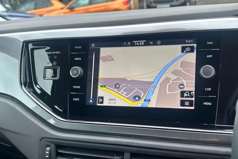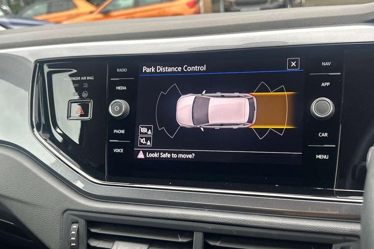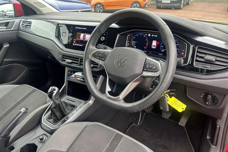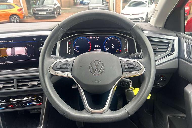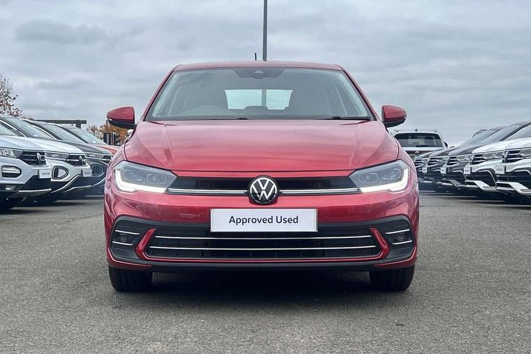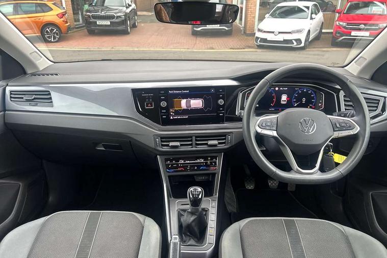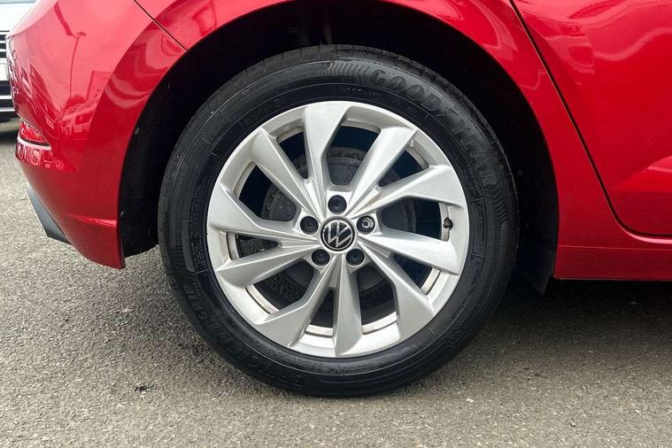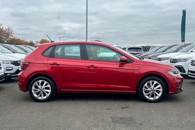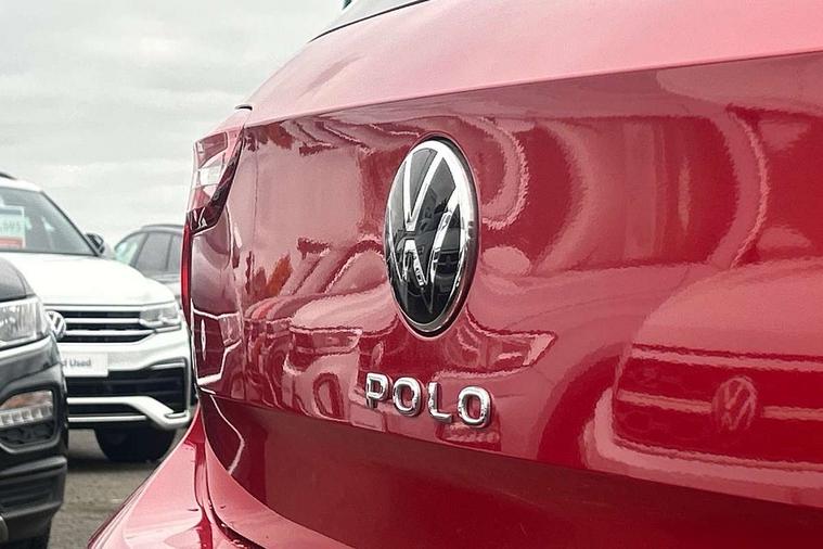 Adaptive cruise control without follow-to-stop and speed limiter, Bluetooth mobile phone interface, Digital Cockpit Pro with 10.25" Display, Driver alert system, Dynamic road sign display, Emergency call service, Power assisted speed sensitive steering, Preparation for We connect and We connect plus, Speedo and rev counter, electronic odometer, trip, service interval display and fuel gauge, Standard rear axle, Travel Assist - Lane keeping system and traffic jam assist, Travel assist including emergency assist, Trip computer, Warning signal and warning light for front and rear seatbelts not fastened, Washer fluid level indicator, Wireless app connect, Front wheel drive, Rear shock absorpion, Start-stop system with battery regeneration (recuperation - energy recovery during braking), DAB Digital radio, Diversity antenna for FM reception, Front and rear 6 speakers, Automatic dimming interior rear view mirror, Automatic headlights, Body colour door handles, Body coloured bumpers and radiator grille with chrome trims, Electric front windows, Heat insulating darkened glass in side and rear windows, Heat insulating glass windscreen, LED separate daytime running lights with coming/leaving home function, Power folding adjustable/heated exterior mirrors and front passenger exterior mirror lowering function, Rain sensor, Rear electric windows, Rear fog light, Rear side wing doors, Rear windscreen washer and wiper with interval delay, Third brake light, 12V power socket in centre console, 2 USB-C ports in the front, 2 USB-C charging sockets on the center console in the rear, 3 rear head restraints, 60/40 split folding rear seat and rear seat bench not split, Air care climatronic air conditoning system with active combination filter and 2-zone temperature control, Ambient lighting, Chrome plated radiator grille inserts, air vent surrounds and light switch surrounds, Door and side trim panel, Driver and front passenger seat height adjustment, Driver/passenger sunvisors with illuminated vanity mirrors, Front + rear carpet mats in recycled material, Front centre armrest, Front footwell illumination, Front seat backrest storage pockets, Front sports comfort seats, Handbrake lever handle in leather, Headliner in recycled material, Isofix child seat preparation easy-fit (for two outer rear seats, and front passenger seat) compatible with I-size, Leather trimmed gear knob, LED interior light with switch off delay and dimmer, 2 reading lights front and rear, Luggage compartment cover, Luggage compartment floor, Luggage compartment lighting, Lumbar adjustment for front seats, Multifunction steering wheel, Single front passenger seat, Standard pedal cluster, IQ LED matrix headlights pack - Polo, Light and vision pack - Polo, 3 point height adj front seatbelts + pretensioners, 3x3 point rear seatbelts, ABS, Driver and front passenger airbag with front passenger airbag deactivation, Drivers and front passengers safety optimised head restraints, ESC (Electronic stability control) + EDL (Electronic Differntial lock) and ASR (Traction control), Extended and predictive pedestrian/ cyclist protection, Front curtain and side airbags with center airbag, Front disc brakes, Hill hold control, Manual child lock in rear doors, Rear drum brakes, Single tone horn, Tyre pressure loss indicator, Alarm with interior protection, Anti-theft alarm system with interior monitoring, backup horn, and towing protection, Anti-theft wheel bolts, Electronic engine immobiliser, Chrome applications on rotary light, mirror adjustment, window regulator switches, outlet with frame in black, Low rolling resistance tyres,