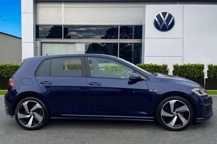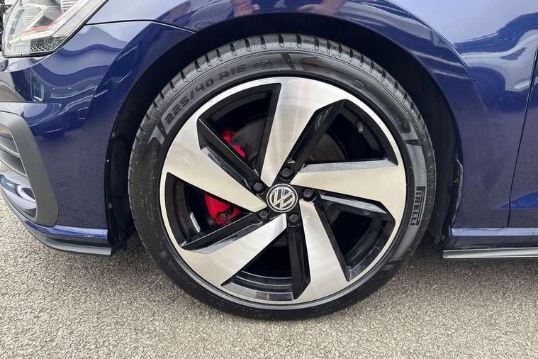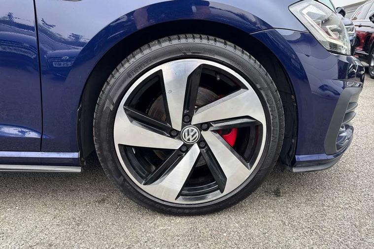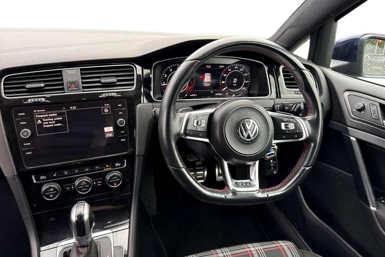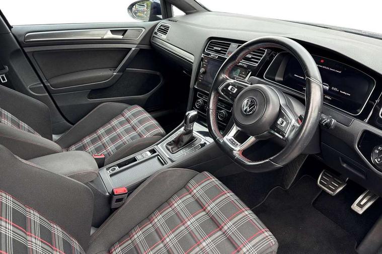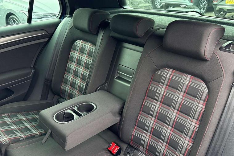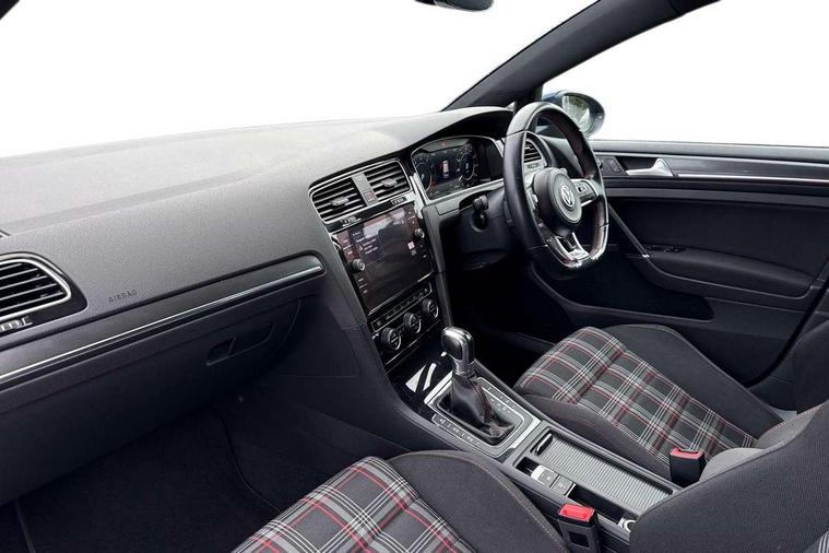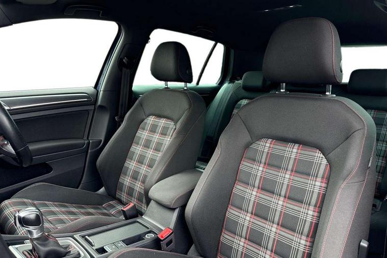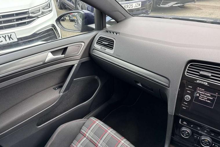 'Lights On' Reminder warning buzzer, 8" touch screen, Adaptive Cruise Control with pedestrian detection and speed limiter, App-Connect, Bluetooth hands free telephone connection, Brake pad wear indicator warning light, Driver alert system, Driver profile selection, Exterior temperature gauge, Front assistant collision mitigation, Instrument cluster in white, Multifunction computer, Progressive power assisted steering, Rev counter, Trip and service interval display, Ultrasonic front and rear optical and audible parking sensors, Warning buzzer and light for front seatbelts unfastened, Anti-tramp function, Lowered sports suspension, XDS plus electronic differential lock, CD/MP3/WMA, USB and SD card reader, aux-in, Composition media system, DAB Digital radio, 3D-LED-SBBR with sweeping indicator, Auto dimming rear view mirror, Automatic coming/leaving home lighting function, Automatic headlights, Black rear diffuser, Body colour door handles, Body colour door mirrors, Body colour rear roof spoiler, Body colour sports bumpers, Electric front windows, Electric rear windows, Electrically adjustable and heated door mirrors, Heated rear windscreen, Honeycomb radiator grille - black, LED daytime running lights, LED front fog lights, LED rear lights, Rain sensor, Rear windscreen washer and wiper with interval delay, Twin exhaust tailpipe, 12V socket in luggage compartment, 3 rear headrests, 3 spoke steering wheel, 60/40 split folding rear seat, Air conditioning - 2 zone electronic climate control, Bag hook in luggage compartment, Black headlining, Boot lashing points, Cooled glovebox, Courtesy light delay, Cover for storage compartment in centre, Dust/pollen filter, Front + rear carpet mats, Front centre armrest with storage box and rear air vents, Front passenger seat height adjust, Front seat back storage pockets, Gearshift paddles, Grab handles, Height adjustable driver's seat, Height/reach adjust steering wheel, Illuminated door sills, Illuminated vanity mirrors, Isofix preparation for 2 rear child seats, Load through provision with rear centre armrest and cupholders x2, Luggage compartment cover, Luggage compartment lighting, Multi-function leather steering wheel with red stitching, Overhead storage box, Stainless steel pedals, Storage box in luggage compartment, Storage compartments in doors, Sun visors, Variable boot floor, height adjustable and removable, Ambient lighting pack - Golf, Mirror pack - Golf, 3 point height adj front seatbelts + pretensioners, 3 rear 3 point seatbelts, ABS, Automatic post collision braking, Child locks on rear doors, Driver/Front Passenger airbags, Driver/Passenger whiplash optimised head restraints, Drivers knee airbag, Electronic parking brake with auto hold, ESP with EDL + ASR, Front and rear curtain airbags, Front passenger airbag deactivation, Front side airbags, Pre crash system, Red brake calipers, Tyre pressure monitor, Alarm with interior protection, Electronic engine immobiliser, Remote central locking with 2 remote folding keys, Chrome-plated light switch surround, Honeycomb black decorative inserts, Piano black centre console, Space saver spare wheel,