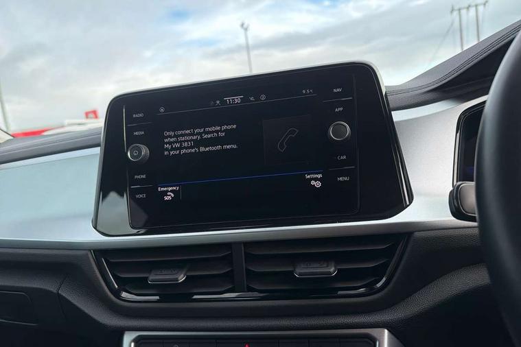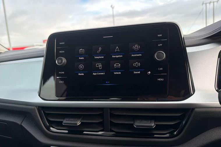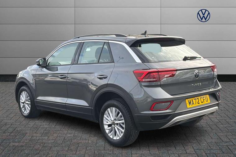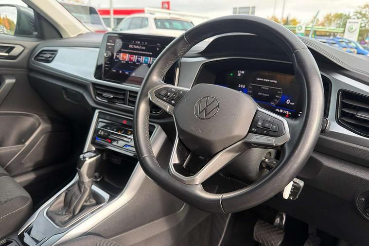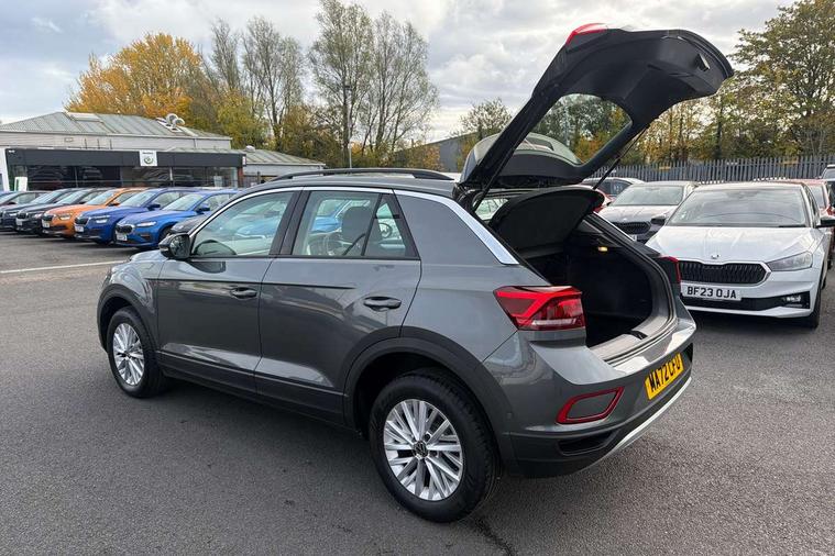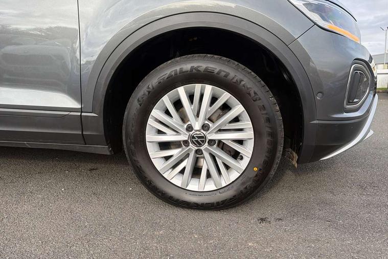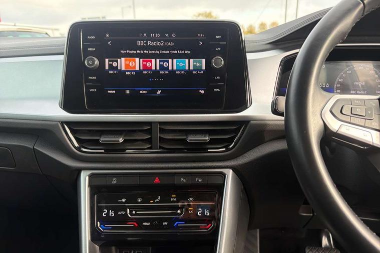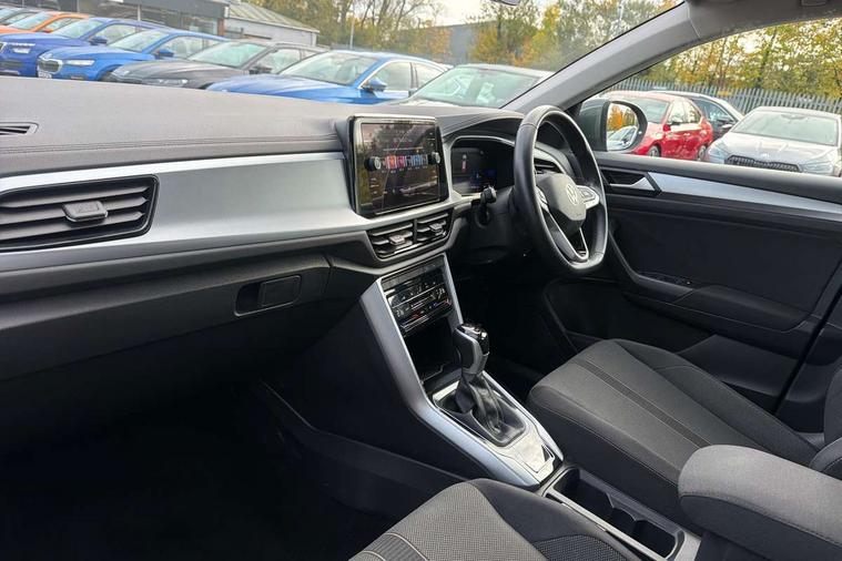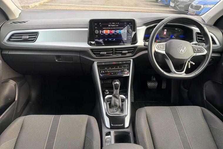 Bluetooth mobile phone interface, Driver alert system with fatigue detection, Driver tips and journey analysis, Emergency call service, Lane keeping system Lane Assist, Modified key software - reduce switch off time for key status change to Long no motion, Online services, Park assist including front and rear parking sensors, Power assisted speed sensitive steering, Service interval indicator, Tailgate/trunk lid release from outside, Think blue trainer driver tips and journey analysis, Warning sound and light for front seatbelts unfastened, Wireless app connect, Battery regeneration during braking, Front shock absorption, Rear shock absorption chassis with increased ride height, Start/stop function with battery regeneration, DAB Digital radio, Diversity antenna for FM reception, Front and rear 6 speakers, Music playback - MP3, WMA and AAC files, Premium USB cable in choice of either Apple or Android smartphone compatibility, SD card slot, Simultaneous pairing of 2 compatible mobile devices, Title and cover art display, We Connect and We Connect Plus functionality, 3rd brake light, Auto dimming interior rear view mirror, Automatic hazard lights activation under emergency braking, Automatic headlight control with LED separate daytime running lights with coming/leaving home function, Black roof rails, Body coloured bumpers and radiator grille with chrome trim and front fog lamps with chrome bezel, Body coloured exterior mirror housings and door handles, Extended roof spoiler, Exterior mirrors aspherical on driver side, convex on front passenger side, External USB type C socket and charging sockets, Front windscreen wiper with intermittent wipe and 4 position delay, Heated rear window, LED Headlights, LED rear combination lamps, LED rear number plate lights, LED tail lamp rear comination lamps, Power windows with comfort operation and circuit breaker, Rain sensor, Rear exhaust tailpipe, Rear fog light on one side and reversing lights on both sides, Rear side wing doors, Rear wash/wipe with intermittent wipe setting, Remote electrically foldable door mirrors, puddle lights and reverse activated passenger's door mirror, 12V power socket in centre console, 3 rear head restraints, 3 seat bench in 2nd row, 4 load lashing points in luggage compartment, Air care climatronic air conditoning system with active combination filter and 2-zone temperature control, Ambient lighting with mirror logo projection, Cloth upholstery, Door and side trim panel in cloth, Drawer under drivers seat, Driver/front passenger seat height adjustment, Front centre armrest, Front comfort sports seats, Front cupholders x 2, Front reading light, Instrument lighting, white adjustable panel illumination, Interior light delay, Isofix child seat preparation, Leather gearshift handle, Load-through provision with cup holder when folded down ('Unsplit rear seat bench, split folding backrest, with centre armrest), Luggage compartment lighting, Lumbar support for driver's and front passengers seat, Non-folding front passenger seat backrest, Single front passenger seat, Storage compartment in left and right luggage area, Storage compartment in rear doors, Storage compartments in driver and front passenger doors, Sunvisors with illuminated vanity mirrors, Variable boot floor, height adjustable and removable, Driver assistance pack without proactive passenger protection - T-Roc, 3 point height adj front seatbelts + pretensioners, 3 point seatbelts in outer rear with ECE label, ABS, Child locks on rear doors, Driver and front passenger airbag with front passenger airbag deactivation, Driver and front passenger safety-optimised head restraints, Drivers seatbelt reminder, Electronic parking brake, Electronic Stability Control (ESC) inc EDL (Electronic Differential Lock) and ASR (Traction Control), Front and rear passengers curtain airbag system including front side airbags, Front assist with city emergency braking and pedestrian monitoring, Front disc brakes, Front seat side impact airbags, Hill start assist, Predictive pedestrian protection, Rear disc brakes, Single tone horn, Tyre pressure loss indicator, Volkswagen roadside assistance, Alarm with interior protection, Anti-theft alarm system with interior monitoring, backup horn, and towing protection, Remote central locking with SAFELOCK, radio remote control with 2 remote control folding keys, Pewter matt decorative inserts for intrument panel, centre console and door panels at the front, Trims for alloy wheels,