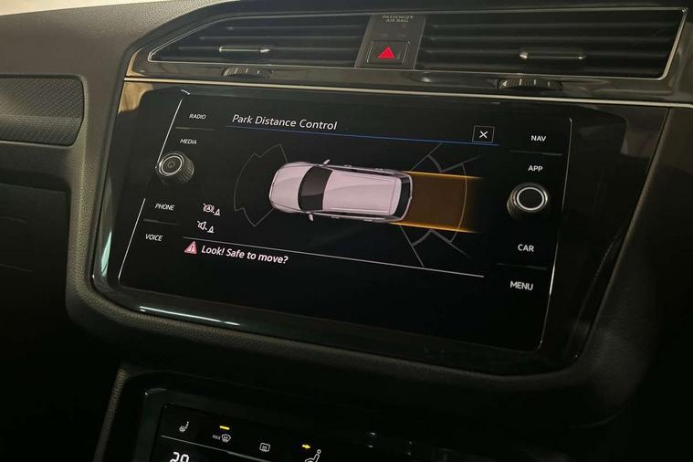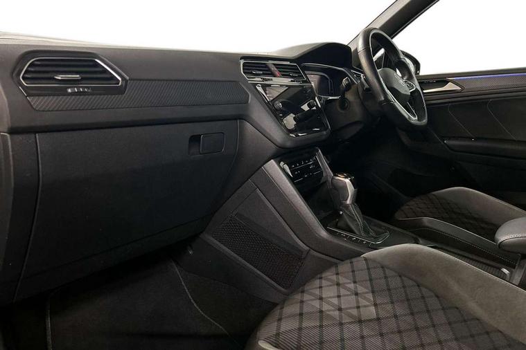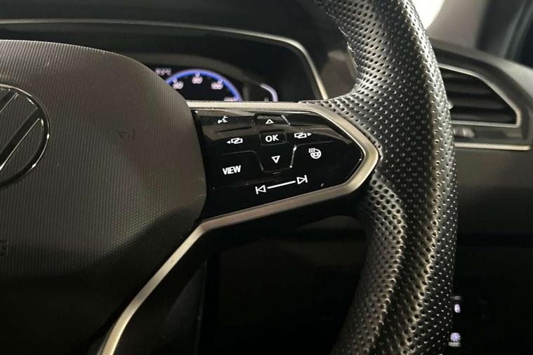Adaptive cruise control ACC stop and go including speed limiter, App-Connect incl. App-Connect Wireless for Apple CarPlay and Android Auto, Bluetooth phone integration system, Digital Cockpit Pro - Active info display, Distance control assist, Driver alert system, Driver profile selection, Dynamic road sign display, eCall emergency call system, Electromechanical speed sensitive power steering, Engine start/stop button, Lane keeping system Lane Assist, Lights on warning, Multifunction front facing camera, Outside temperature display, Premium multifunction display with multi colour display, Remote control boot opening, Rev counter, Revision / skills operating concept travel assistant, Service interval indicator, Speed limit display, Start/stop system with regenerative braking, Trip computer, Warning sound and light for doors and tailgate open, Battery regeneration during braking, XDS electronic differential lock for improved traction and handling, 2 USB-C ports in the front, 1 USB-C charging socket on the center console in the rear, Diversity antenna for FM reception, Radio, SD card slot, Simultaneous pairing of 2 compatible mobile devices, SMS functionality - read, compose and send SMS messages using touch-screen display, Title and cover art display, Auto dimming interior rear view mirror, Automatic headlight control system, Black roof rails, Body colour door handles, Body coloured bumpers in R Line style, Body coloured door mirrors with integrated indicators, Chrome moldings on the side windows, Coming/leaving home lighting function, Dynamic headlight range control, Front and rear electric windows, Heated rear window, High level 3rd brake light, Laminated safety glass windshield, heat and sound insulating, LED rear number plate lights, License plate carrier in front and rear, Poor weather light and cornering light, Privacy glass for rear side windows and rear window, R Line body kit, R Line side sills, Rain sensor windscreen wipers, Rear exhaust tailpipe, Rear fog lamp, Rear spoiler in R style, Rear windscreen washer and wiper with interval delay, Side and rear windows in heat insulating glass, Third brake light, Trailer Stability Programme, Unique R Line badging, Windscreen wipers/ intermittent wipe + 4 position delay, 12V outlet in center console rear and in luggage compartment, 2 cup holders in front, 2 LED front reading lights, 2 LED rear reading lights, 3 rear headrests, 4 load lashing points, 40:20:40 split folding rear seats, Air Care Climatronic 3 zone automatic climate control with enhanced air filter and controls in the rear, Backrest release for left front seat, Black headlining, Brushed stainless steel pedals and footrest, Carpet mats in front and rear with decorative stitching in Gray, Climate control unit rear with touch function, Door and side trim panel in foam film, insert in leatherette, Front centre armrest, Front footwell illumination, Front seats head restraints (x-adjustment), Height adjustable front seats, Height/reach adjust steering wheel, Instrument lighting white adjustable panel illumination, Interior light with delay, Isofix Preparation 2 Rear child seats, Leather gear knob, Lockable cooled glovebox, Luggage compartment lighting, Luggage net, Rear bench seat asymetrically split folding, longitudinally movable and folding with load-through hatch and center armrest, Remote unlocking for rear seat backrest, Removable luggage cover, Safety optimised front head restraints, Sliding/reclining rear seats, Standard rear seat release, Storage compartment in driver's door, Storage compartment in passenger's door, Storage compartment in rear doors, Storage compartments in luggage area left and right, Storage tray on dashboard, Sun visors with illuminated vanity mirrors, Top front comfort seats, Variable boot floor, height adjustable and removable, Ambience pack - Tiguan R Line, Driver assistance pack plus - Tiguan DSG, 3 point seat belt for centre rear seats, 3 point seat belts with seat belt pretensioners for the outer rear seats, Active bonnet, Curtain airbags for front and rear passengers, Driver/Front Passenger airbags, Drivers knee airbag, Electronic parking brake with auto hold, Electronic Stability Control with driver steering recommendation, ABS, ASR, EDL, EDTC and trailer stabilization, Front assist with autonomous emergency braking (for Adaptive Cruise Control ACC up to 130 mph), Front disc brakes, Front passenger airbag deactivation, Front side airbags, Height adjustable front 3 point seatbelts + pretensioners, Hill hold control, Pedestrian monitoring system, Power assisted brakes, Proactive passenger protection system in combination with front assist, Rear disc brakes, Rigid safety cell with front and rear crumple zones, Two tone horn, Warning sound and light for front seat belts if unfastened, Anti theft alarm system with interior monitoring, backup horn and towing protection, Anti theft wheel bolts, Electronic engine immobiliser, 20" Misano black with diamond turned surface alloy wheels with Airstop tyres, Tool kit,